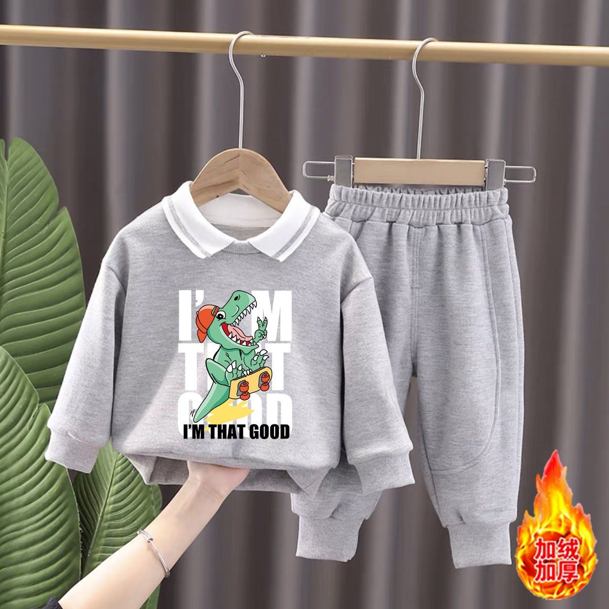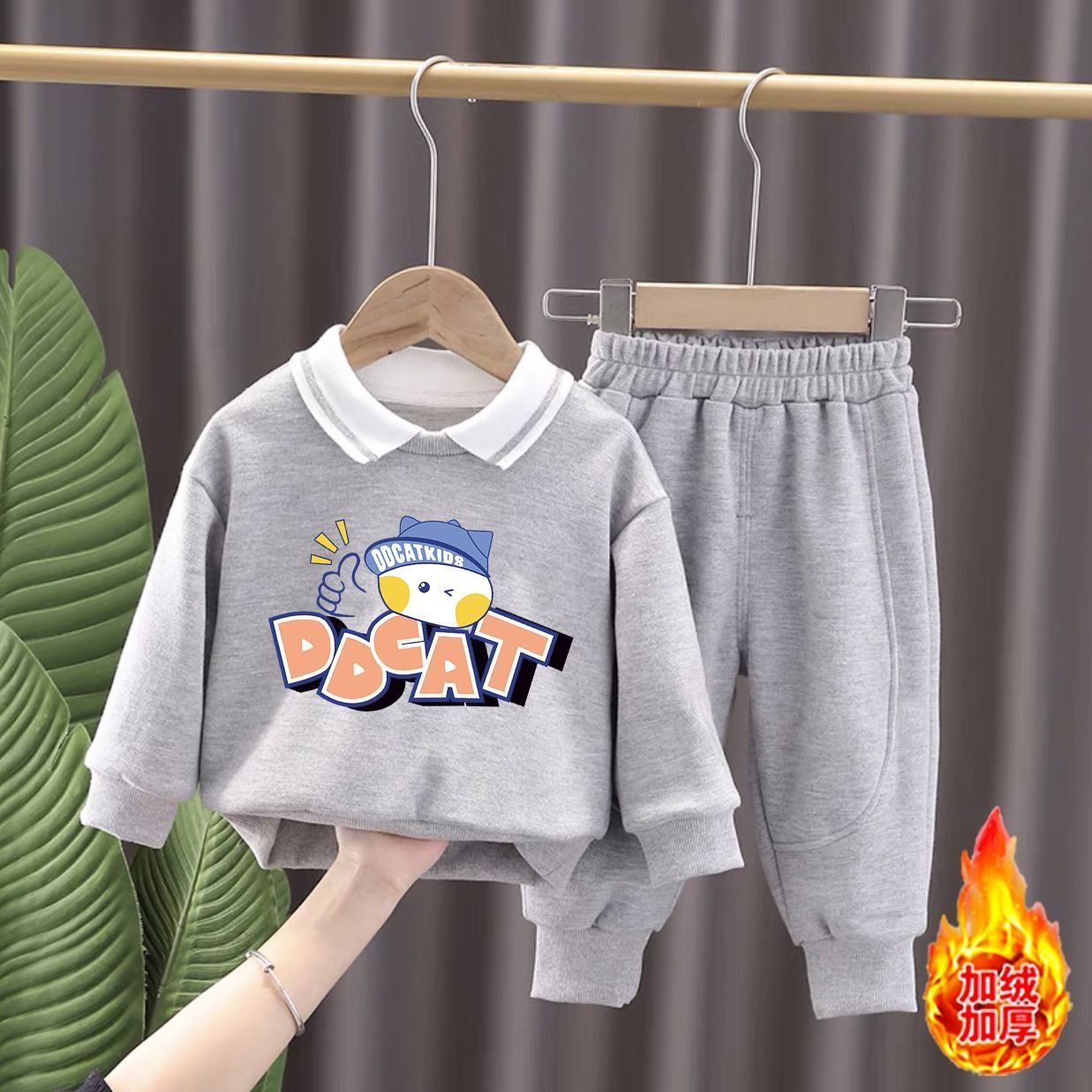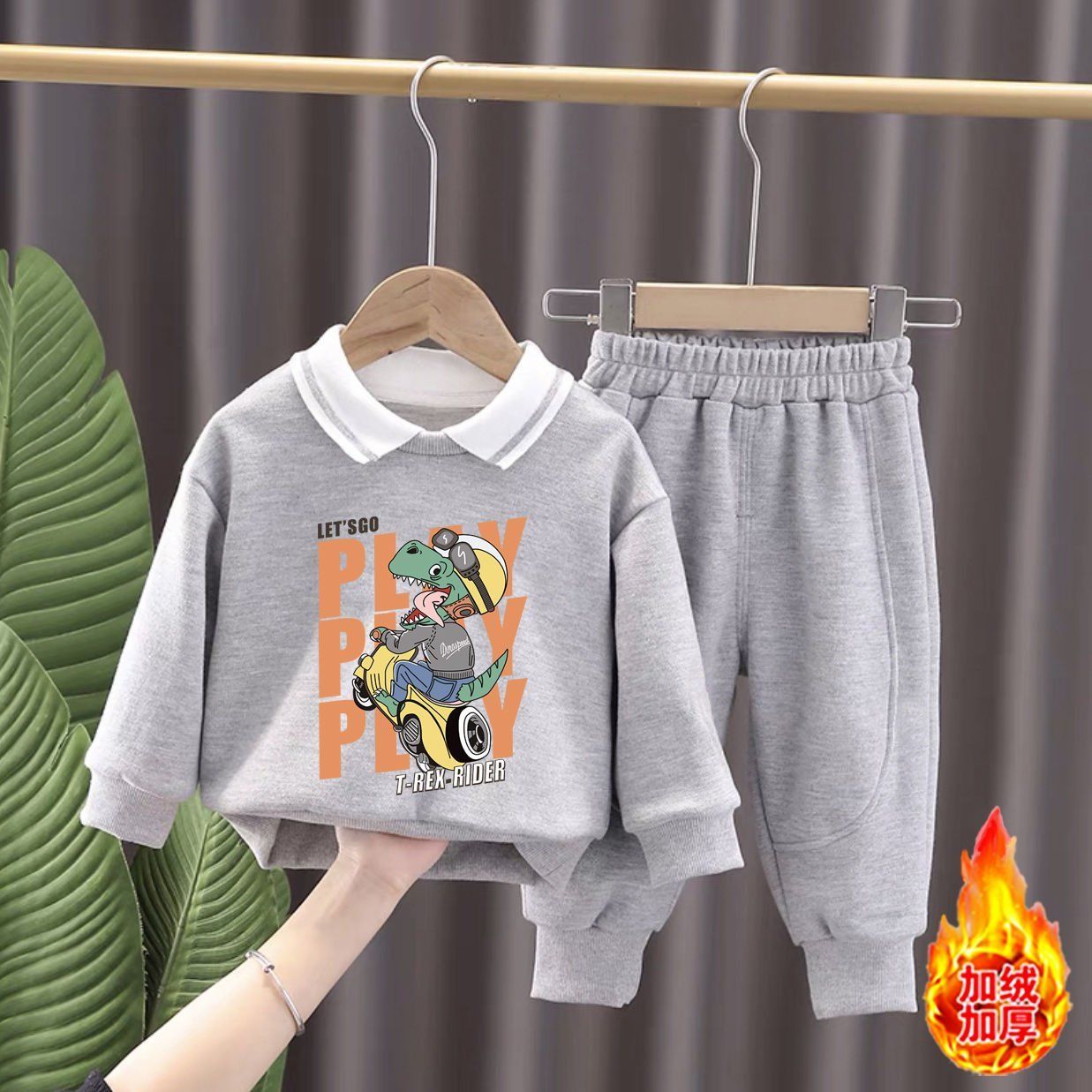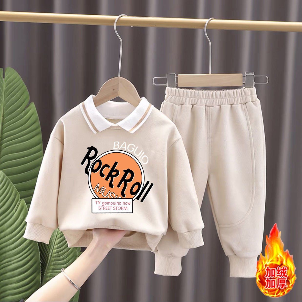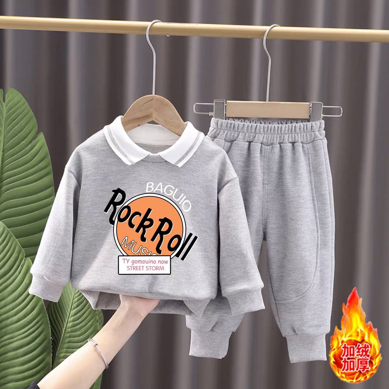 男童秋冬套装儿童秋装2022新款两件套宝宝男孩炸街痞帅加绒衣服潮
