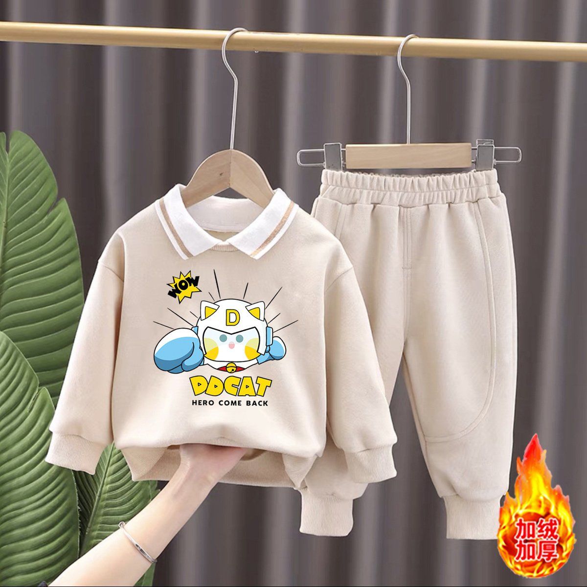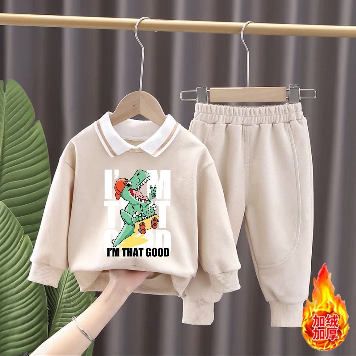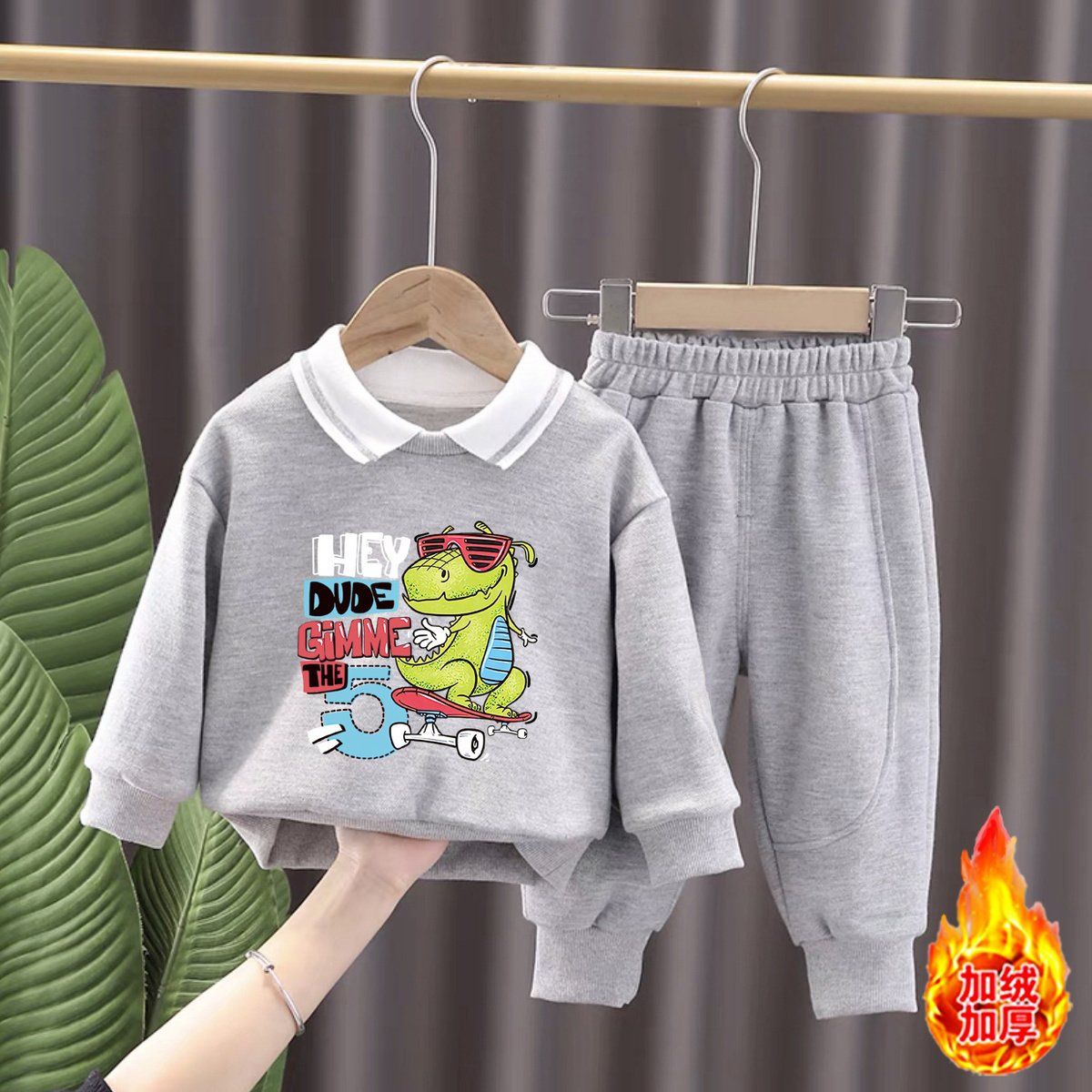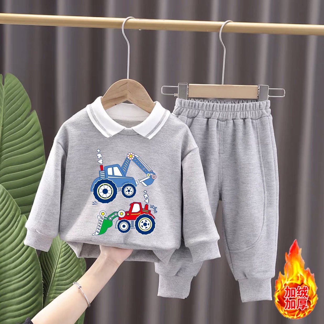 男童秋冬套装儿童秋装2022新款两件套宝宝男孩炸街痞帅加绒衣服潮