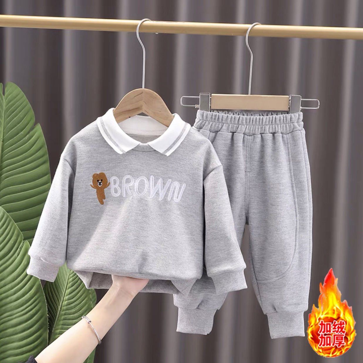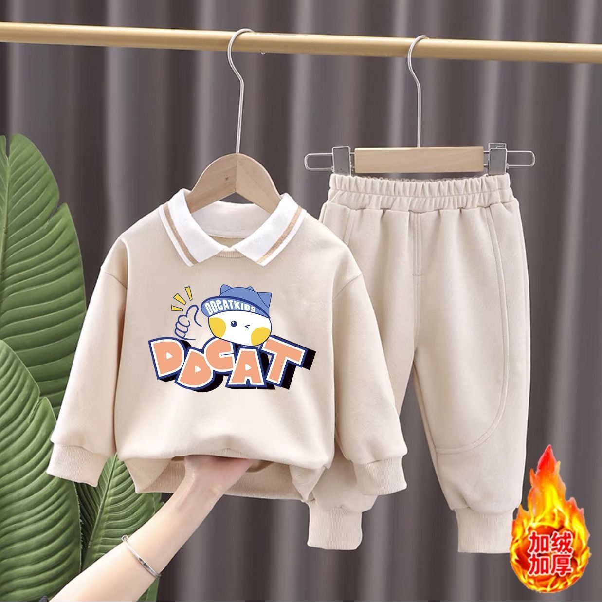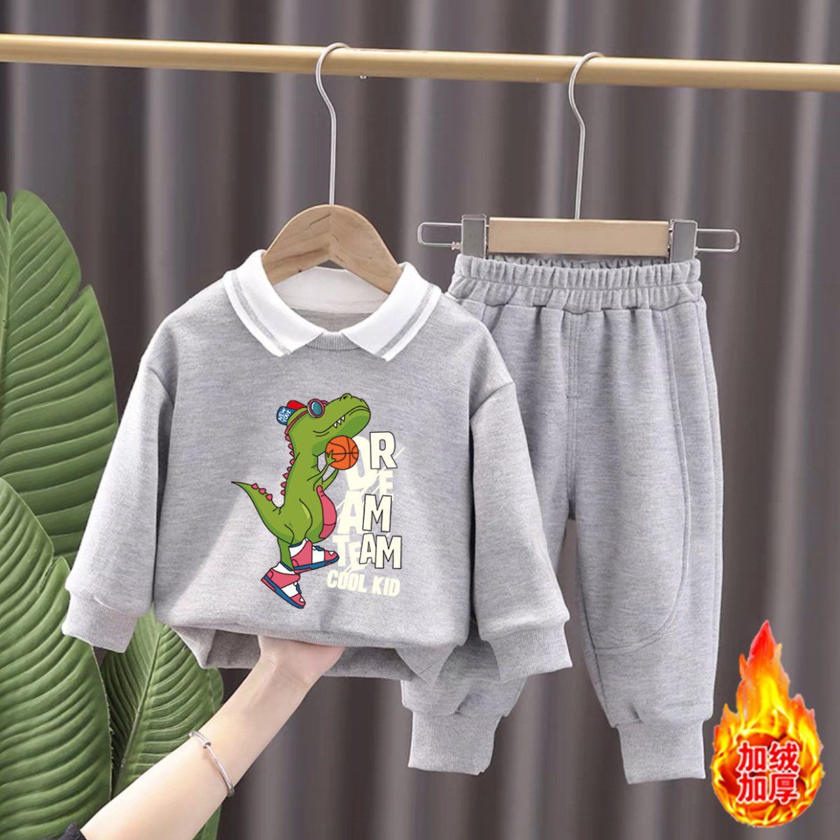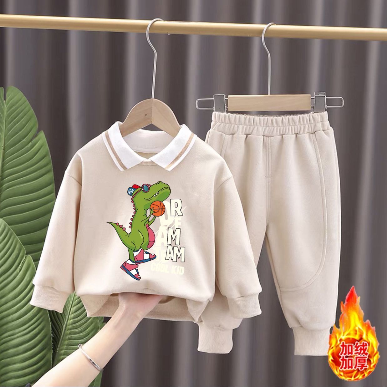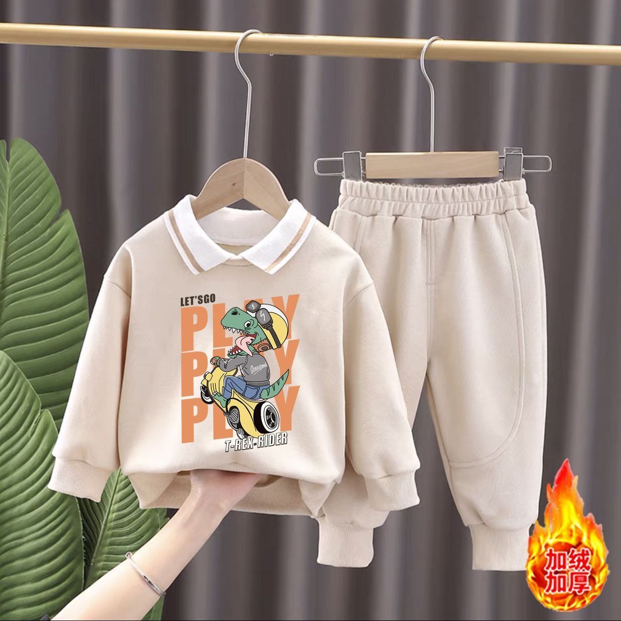 男童秋冬套装儿童秋装2022新款两件套宝宝男孩炸街痞帅加绒衣服潮