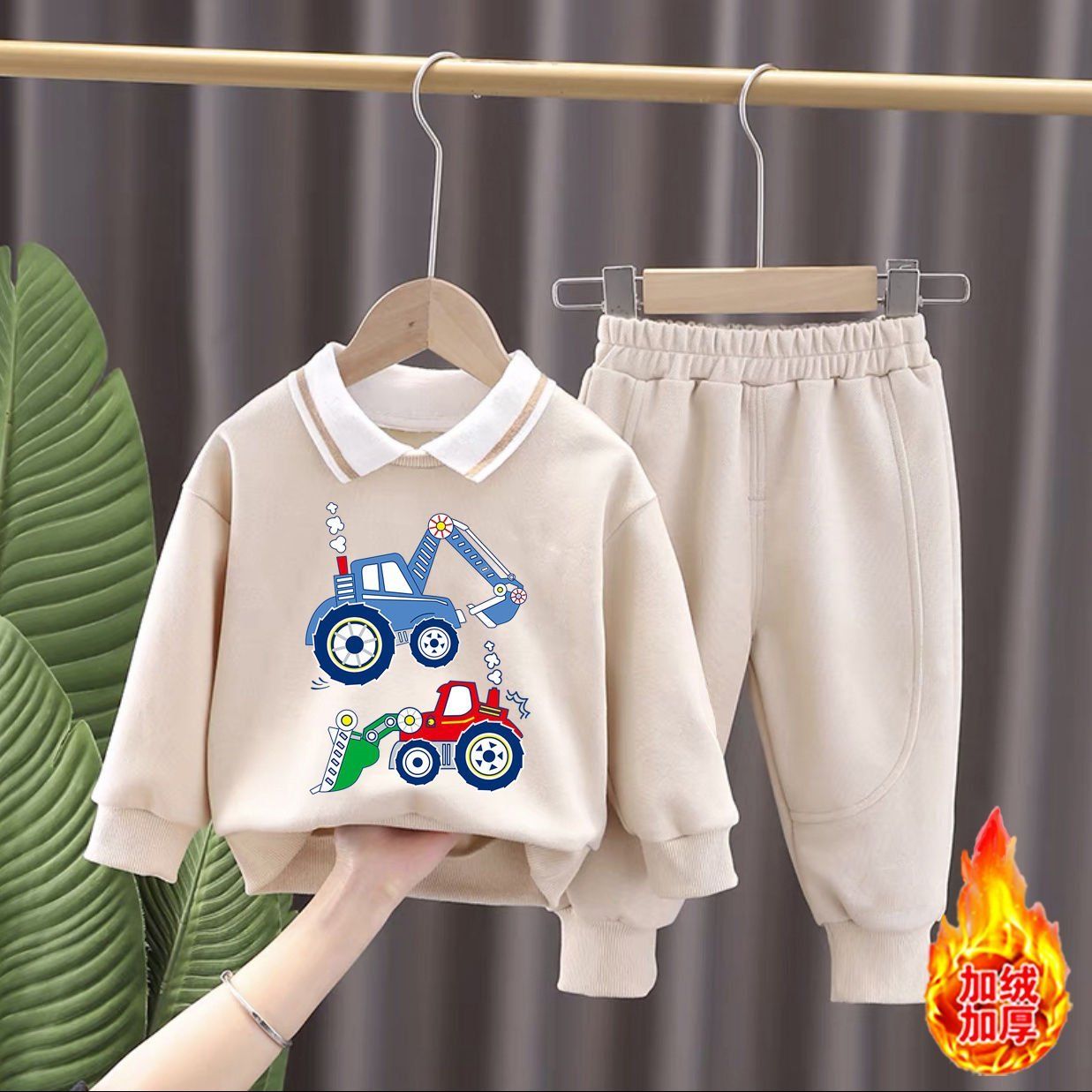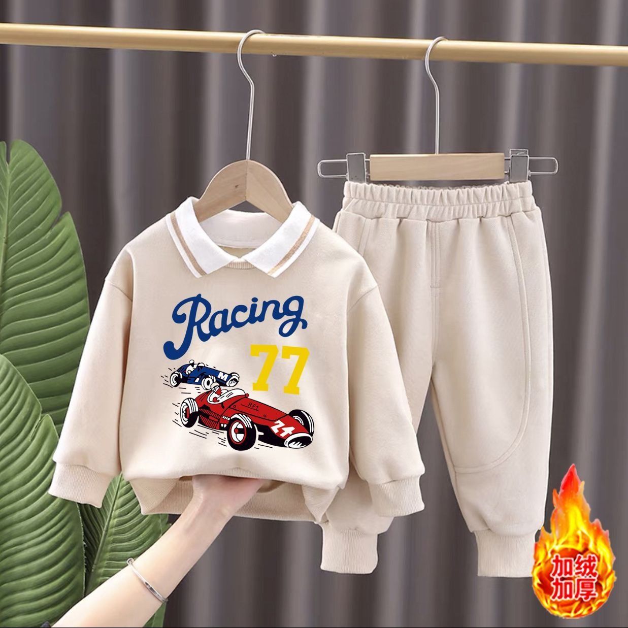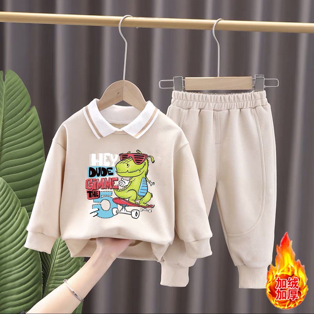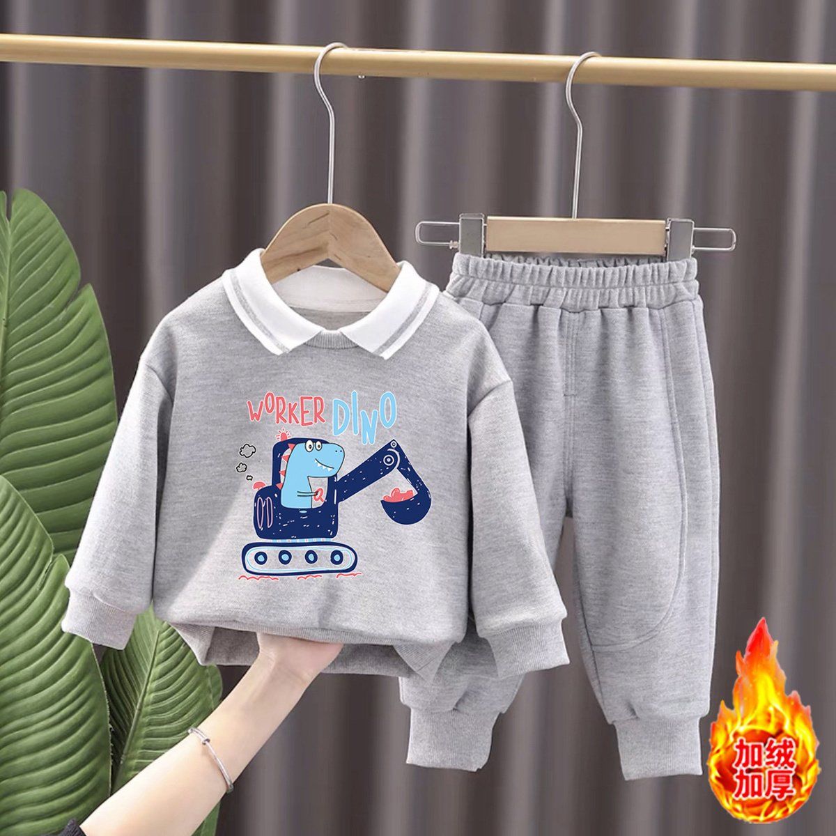 男童秋冬套装儿童秋装2022新款两件套宝宝男孩炸街痞帅加绒衣服潮