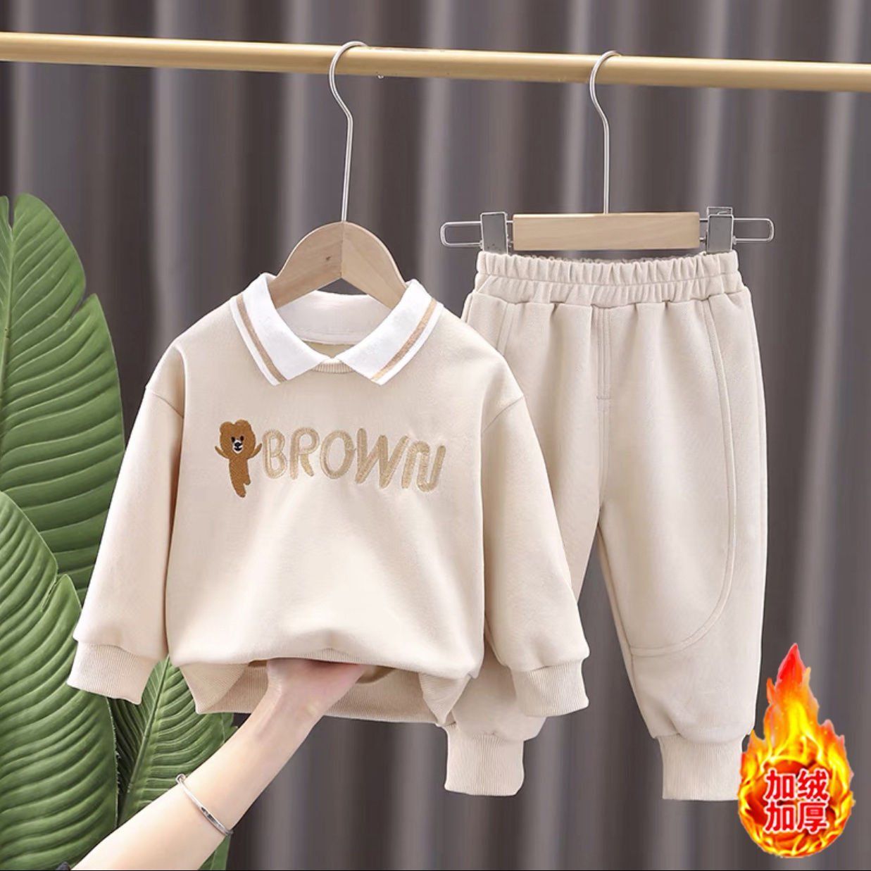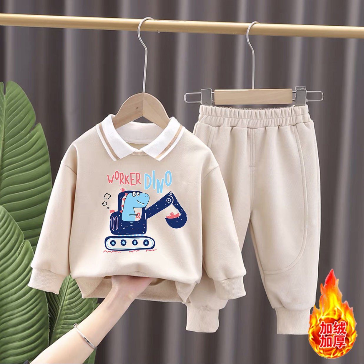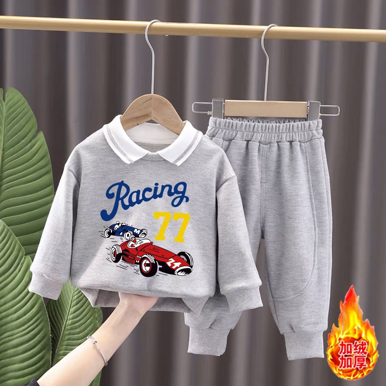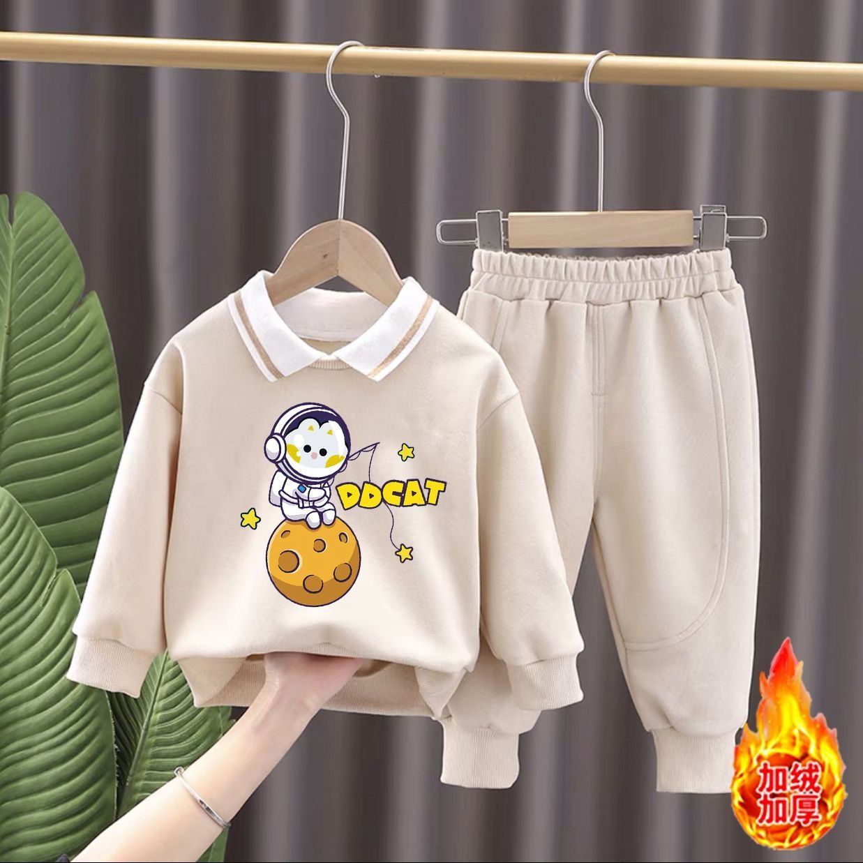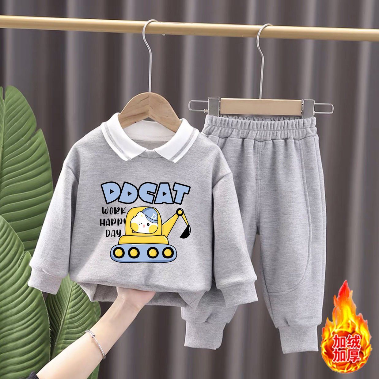男童秋冬套装儿童秋装2022新款两件套宝宝男孩炸街痞帅加绒衣服潮