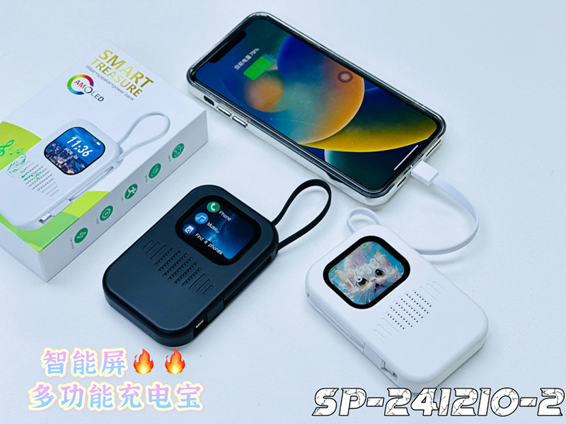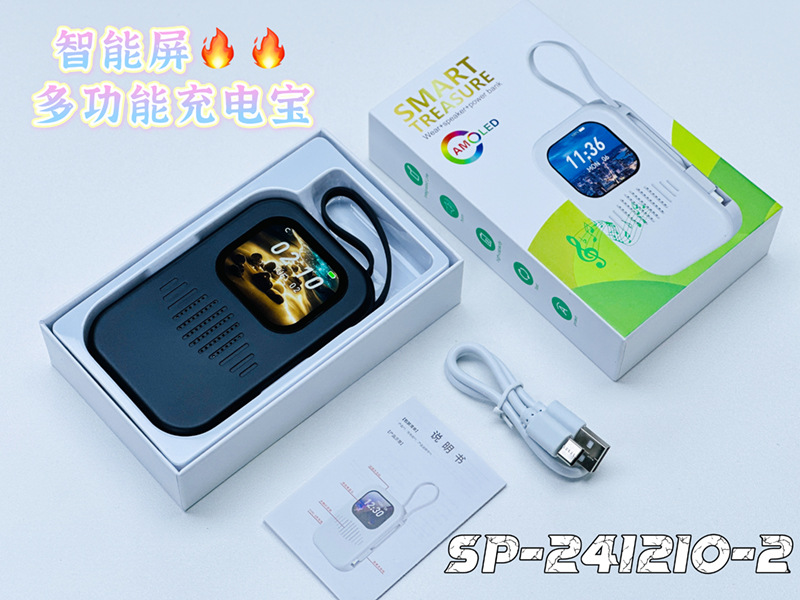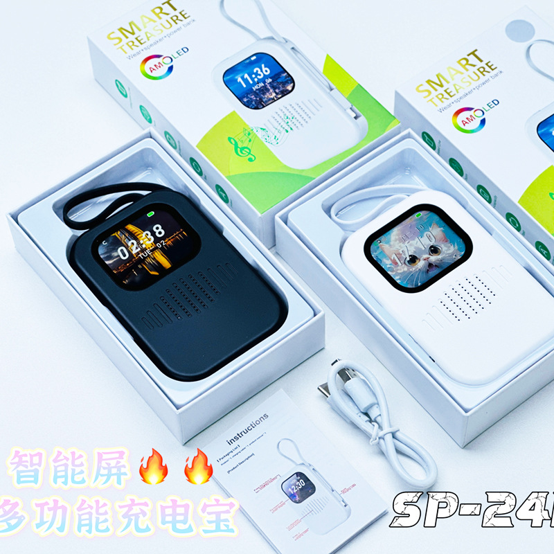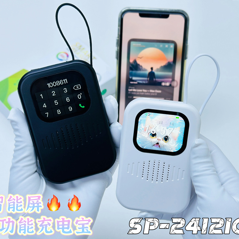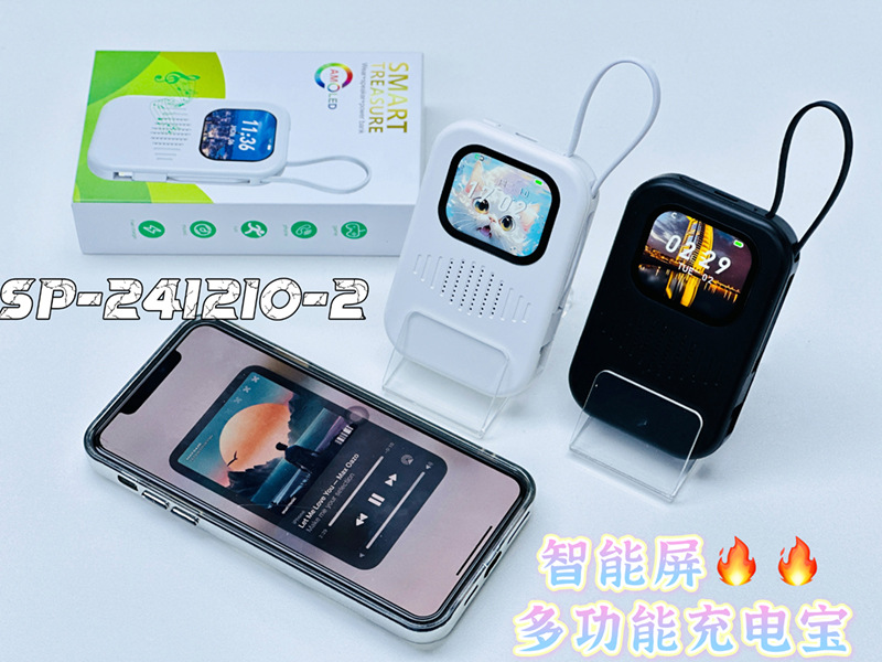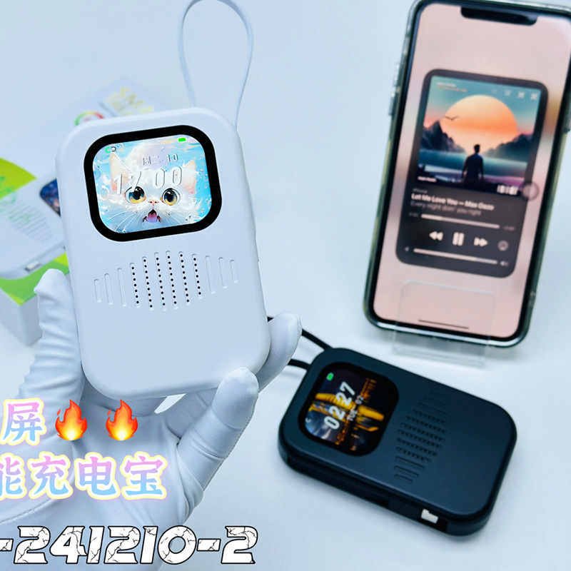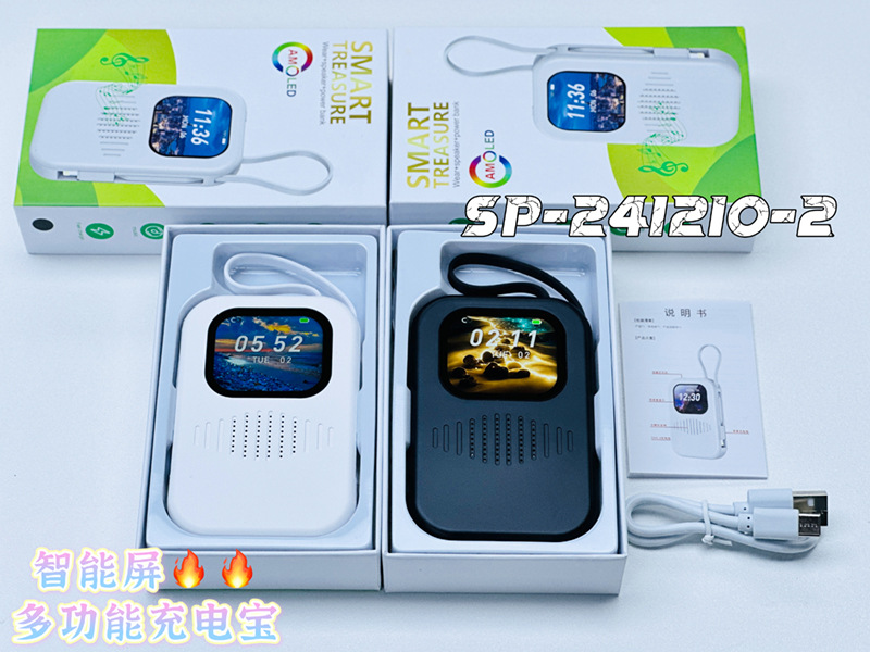 跨境超轻薄充电宝+音响大容量户外移动电源便携三合一智能屏批发