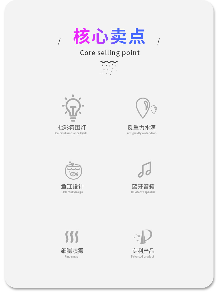 Y11 跨境大雾雾化器卧室桌面七彩氛围灯蓝牙音箱反重力加湿器音响
