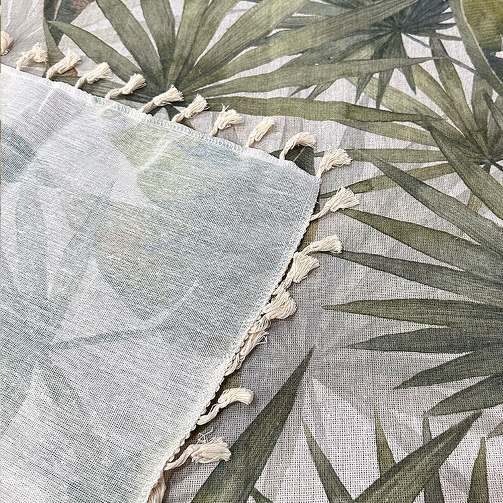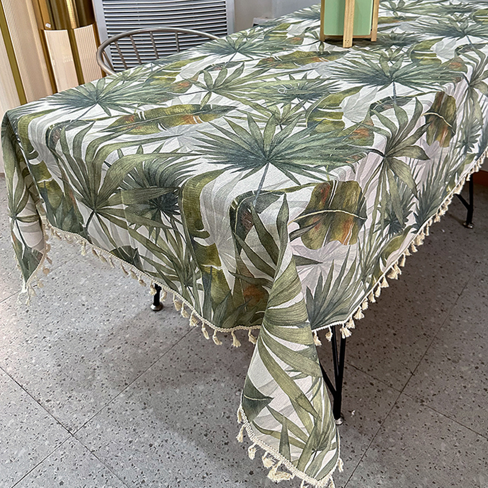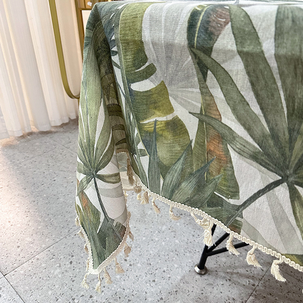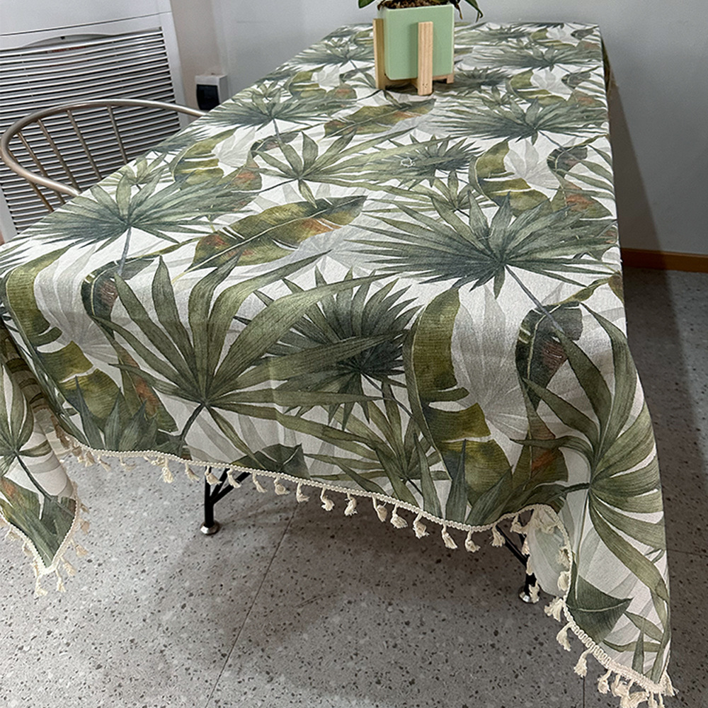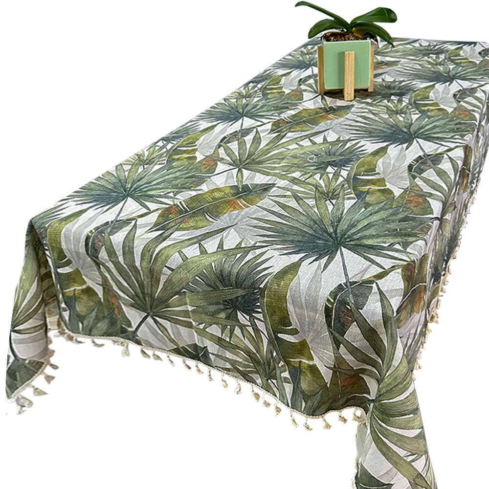 波西米亚风热带绿色植物图案印花家用防尘餐桌布流苏台布盖布批发