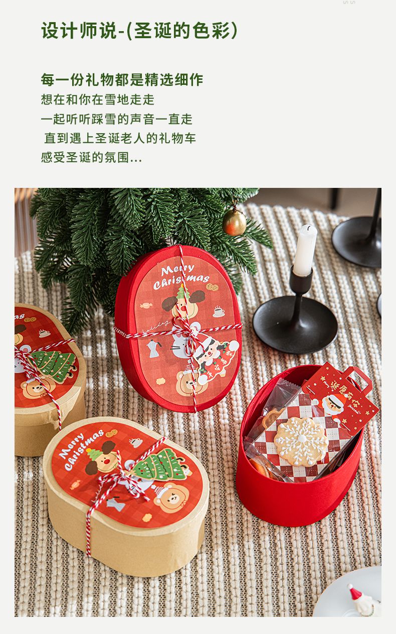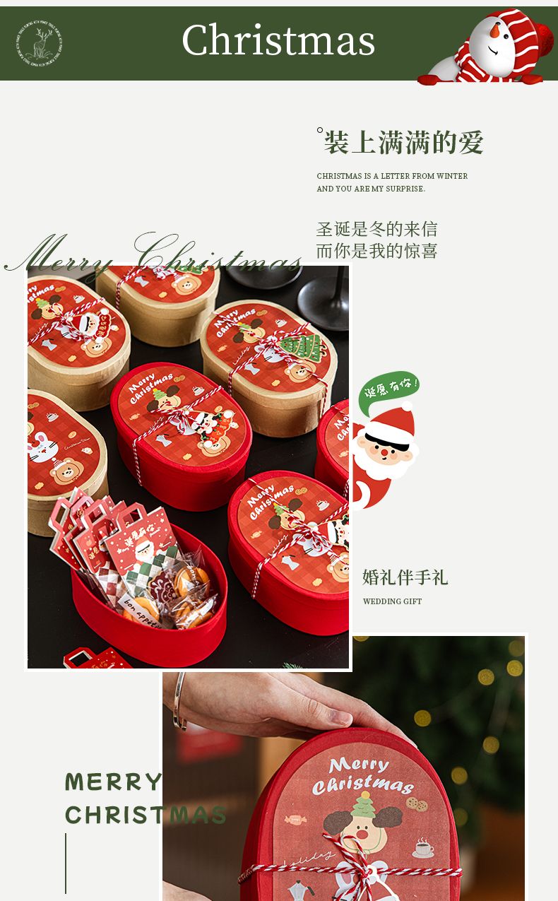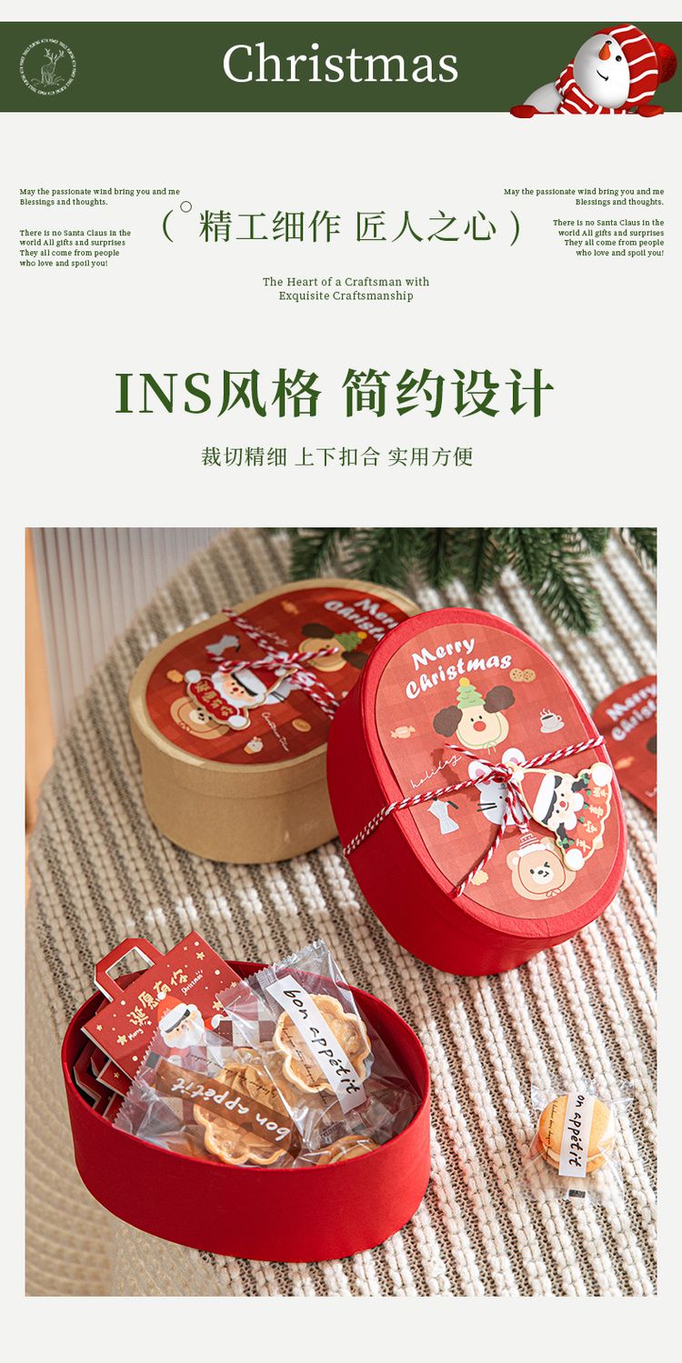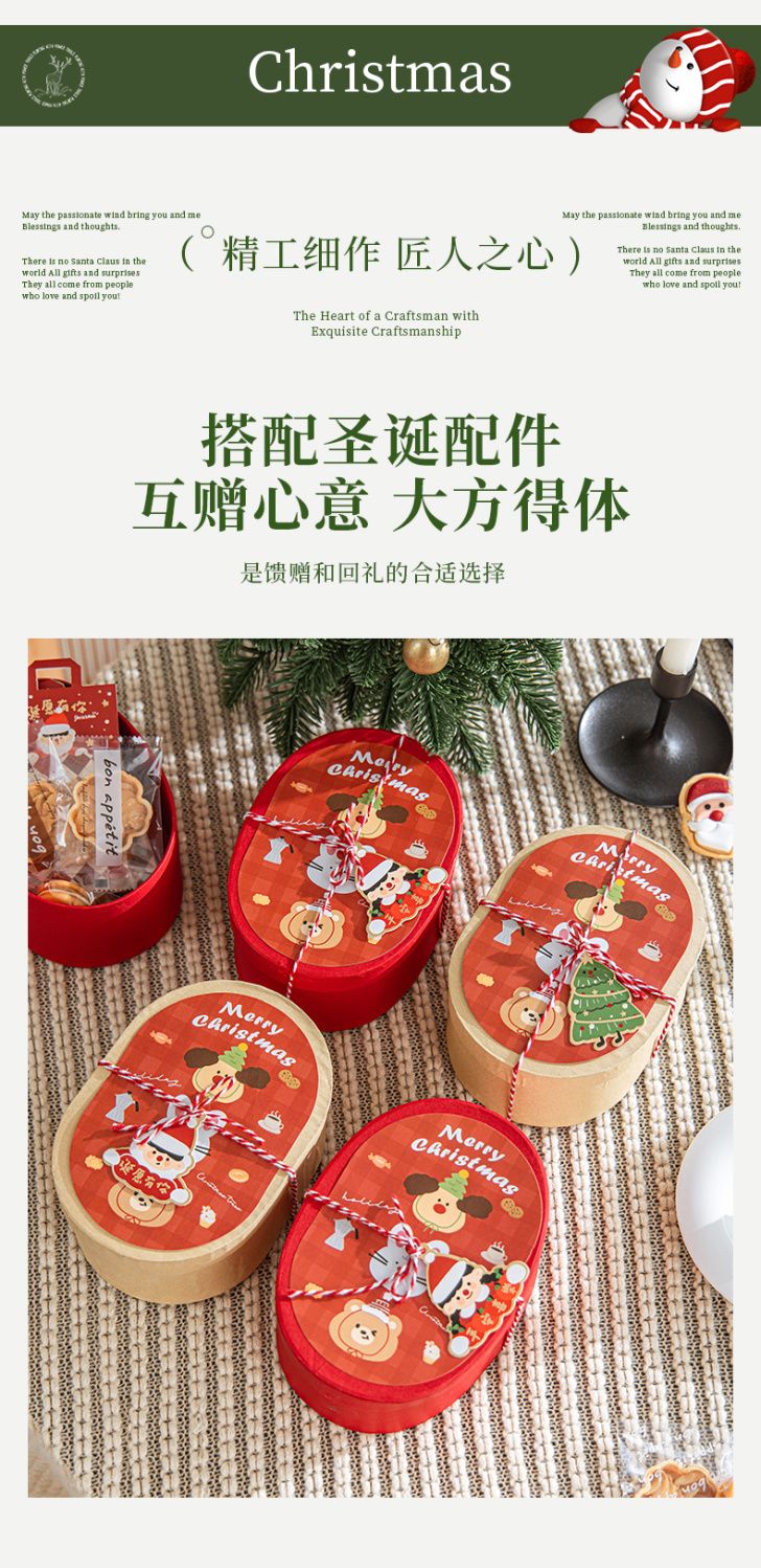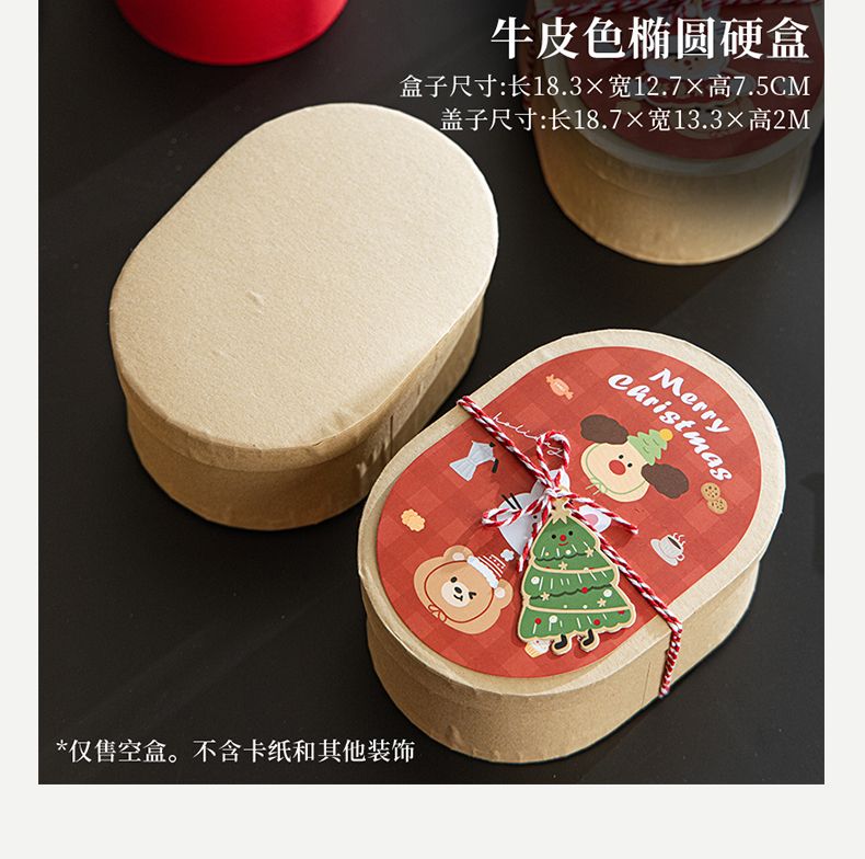 圣诞节包装盒糯米船饼干糖果牛皮纸盒子太妃牛轧糖烘焙礼盒椭圆小