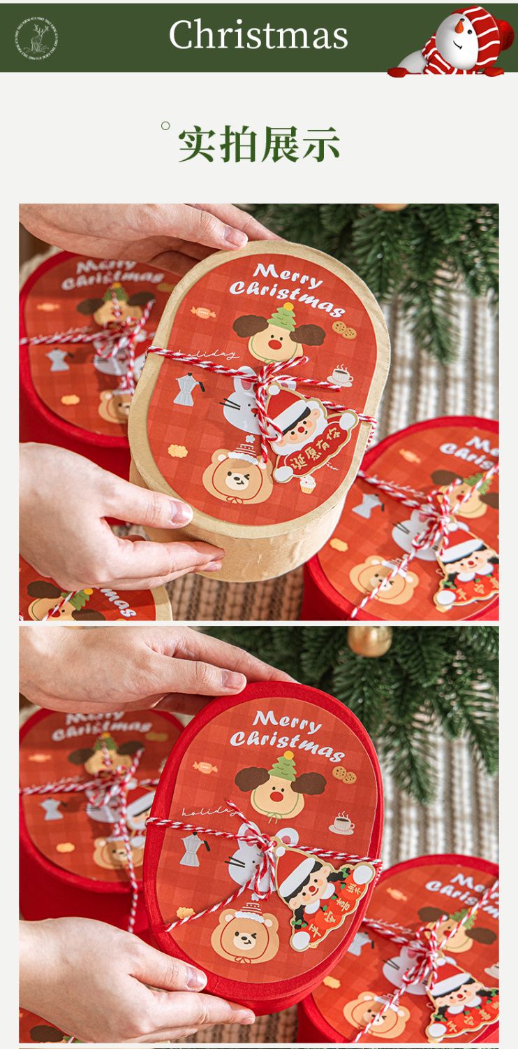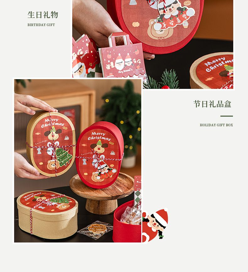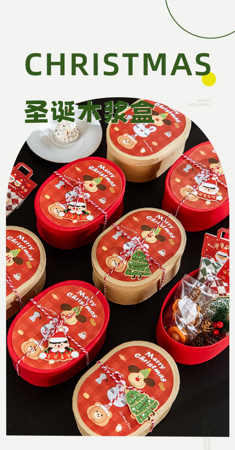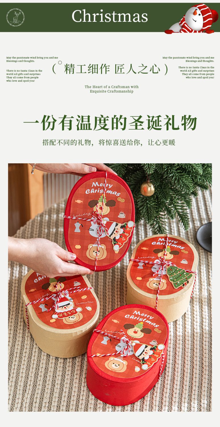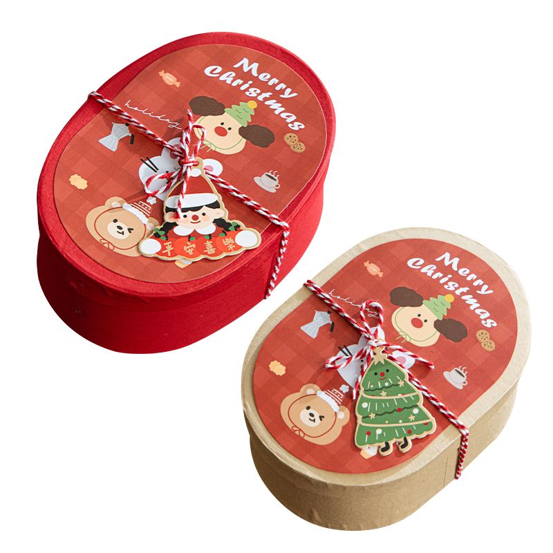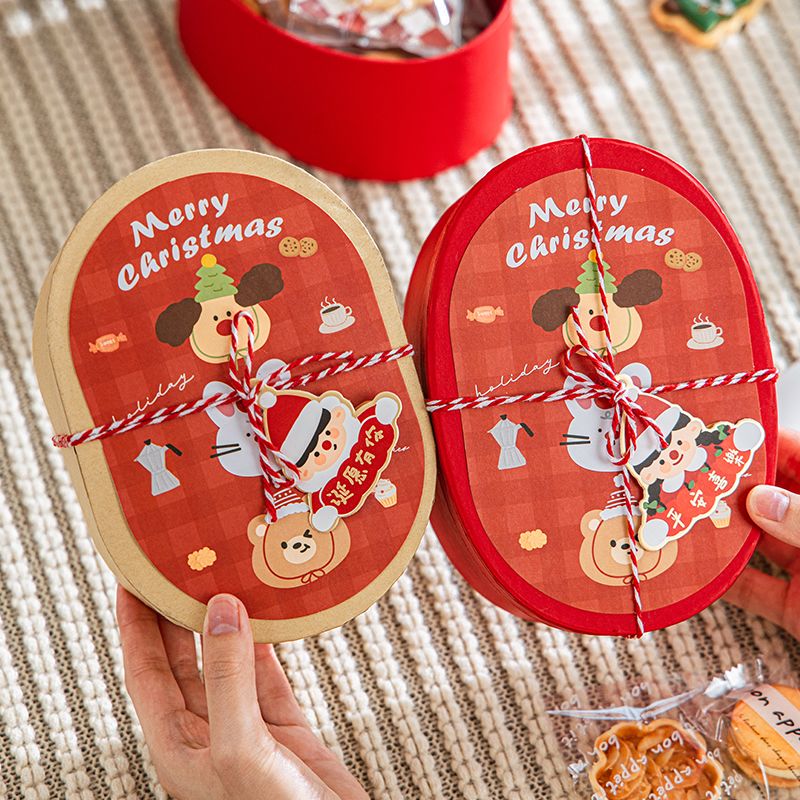 圣诞节包装盒糯米船饼干糖果牛皮纸盒子太妃牛轧糖烘焙礼盒椭圆小