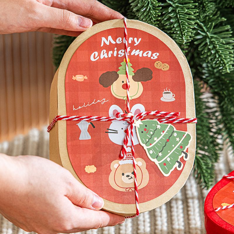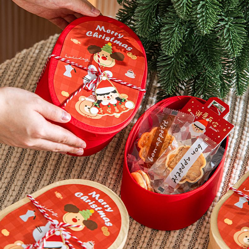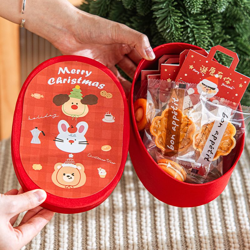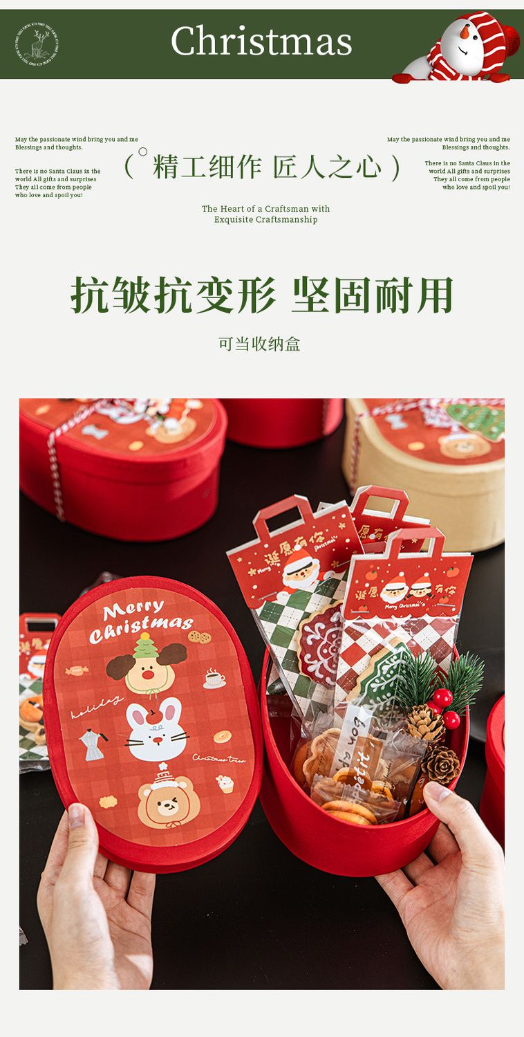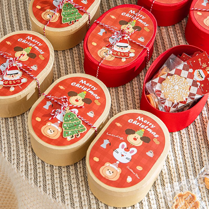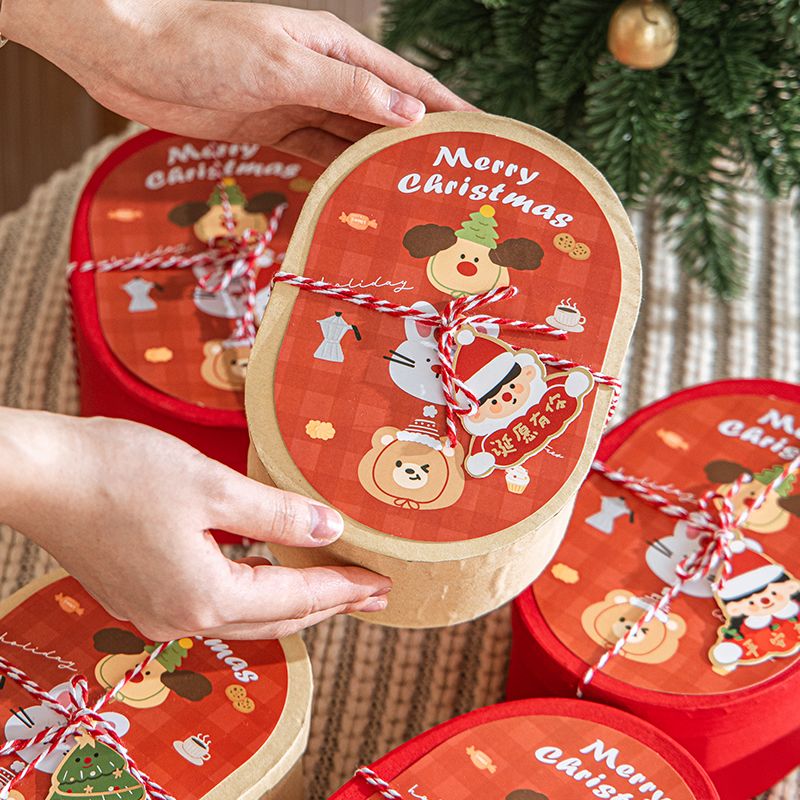 圣诞节包装盒糯米船饼干糖果牛皮纸盒子太妃牛轧糖烘焙礼盒椭圆小