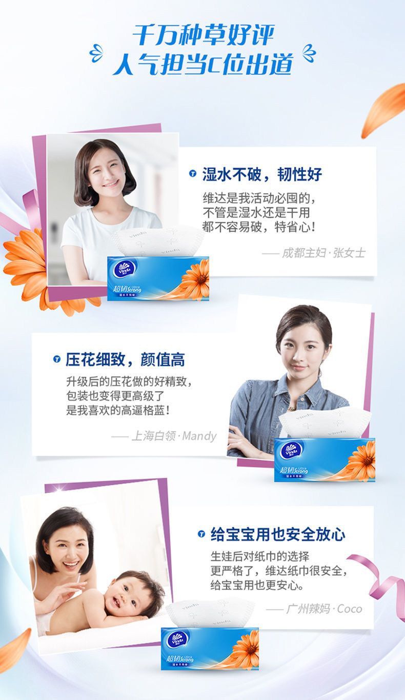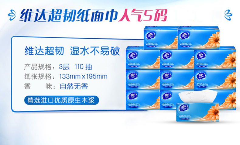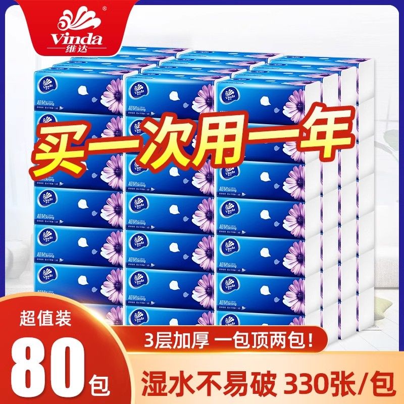 维达抽纸家用实惠装纸巾抽纸整箱批超韧抽纸面巾纸餐巾纸卫生纸抽