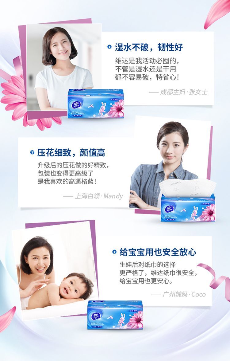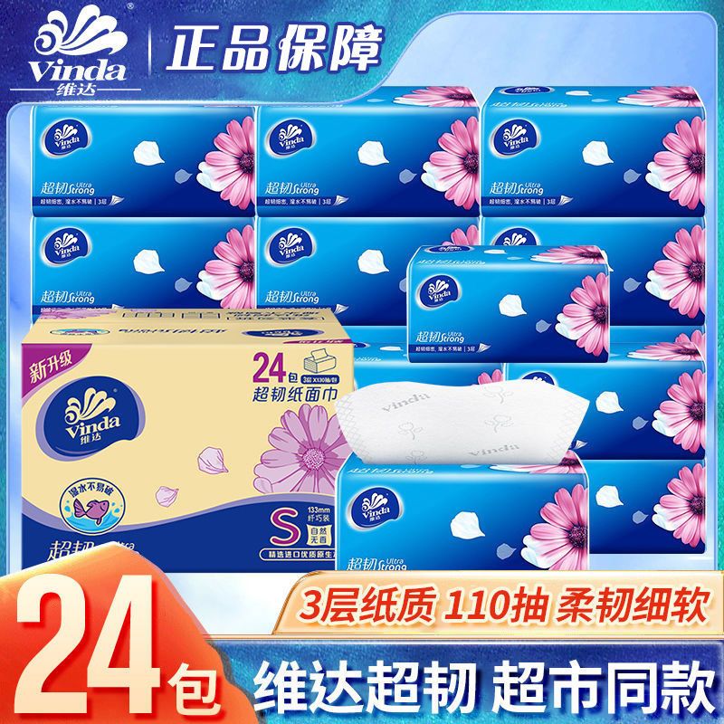 维达抽纸超韧3层纸巾大包可湿水面巾纸巾卫生纸家庭装整箱家用批