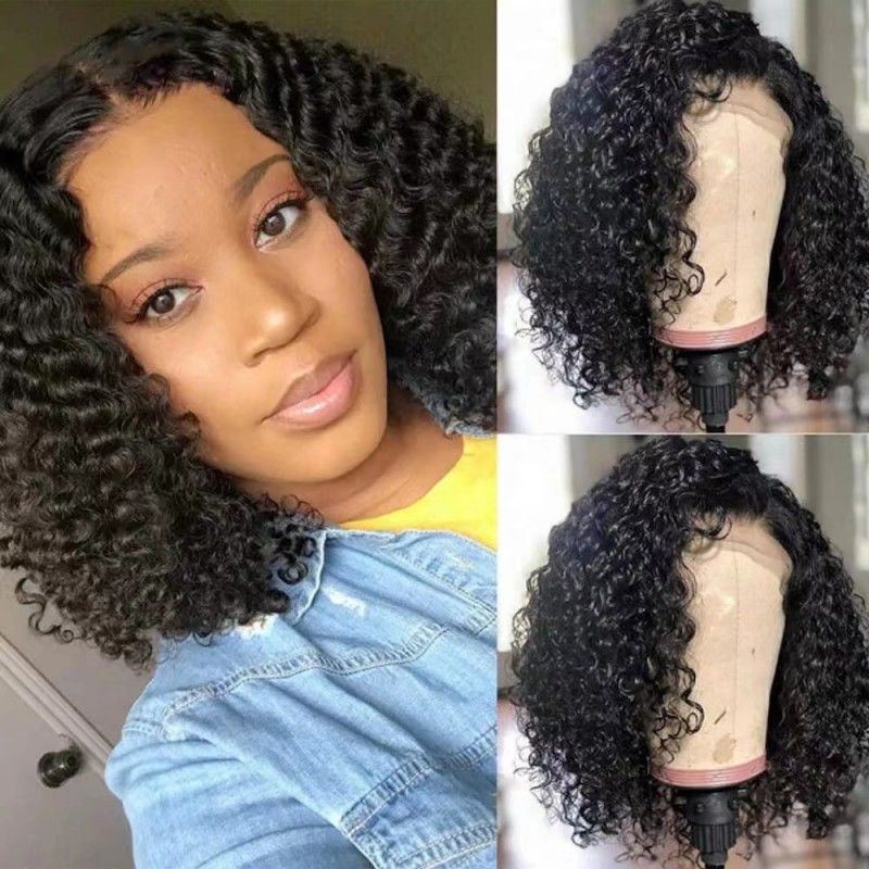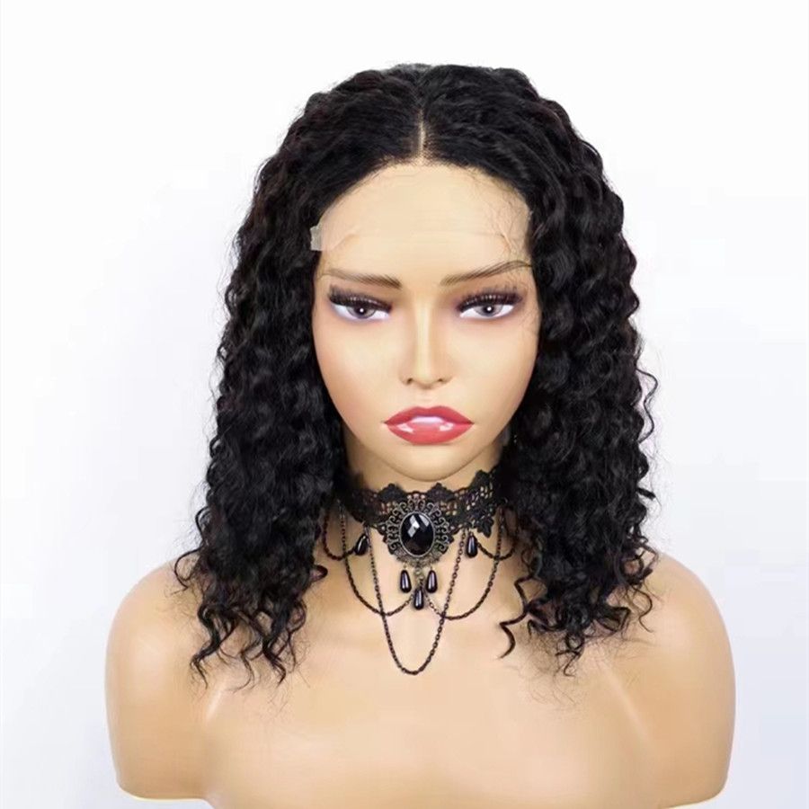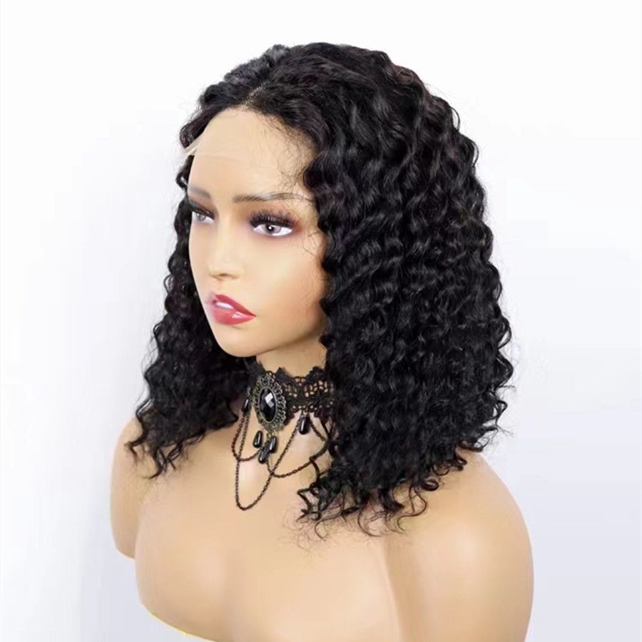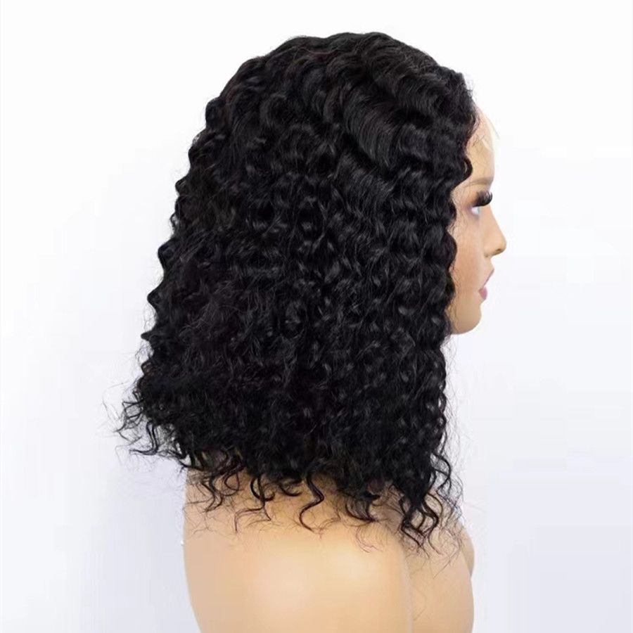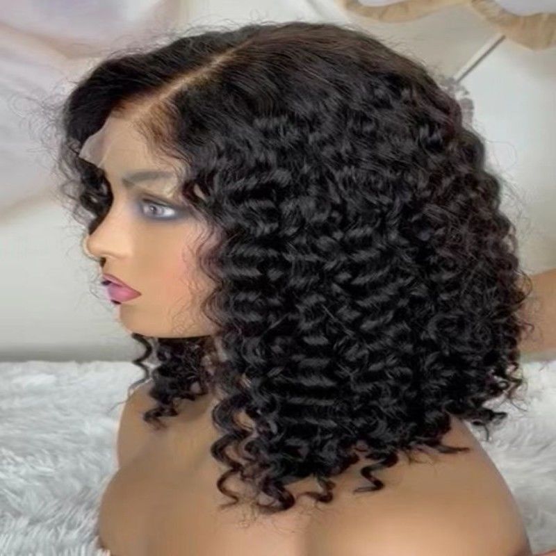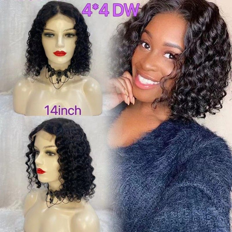 12A Deep Wave Curly Bob Wig With 4*4 Lace Closure Human Hair