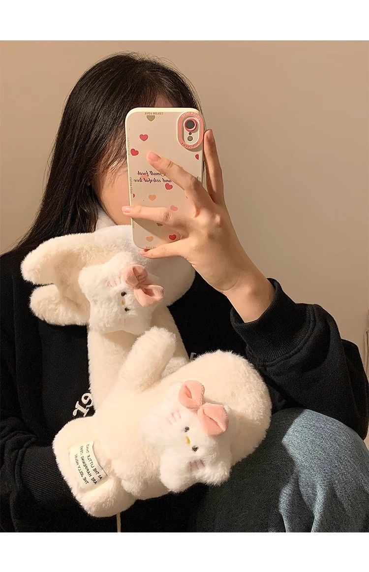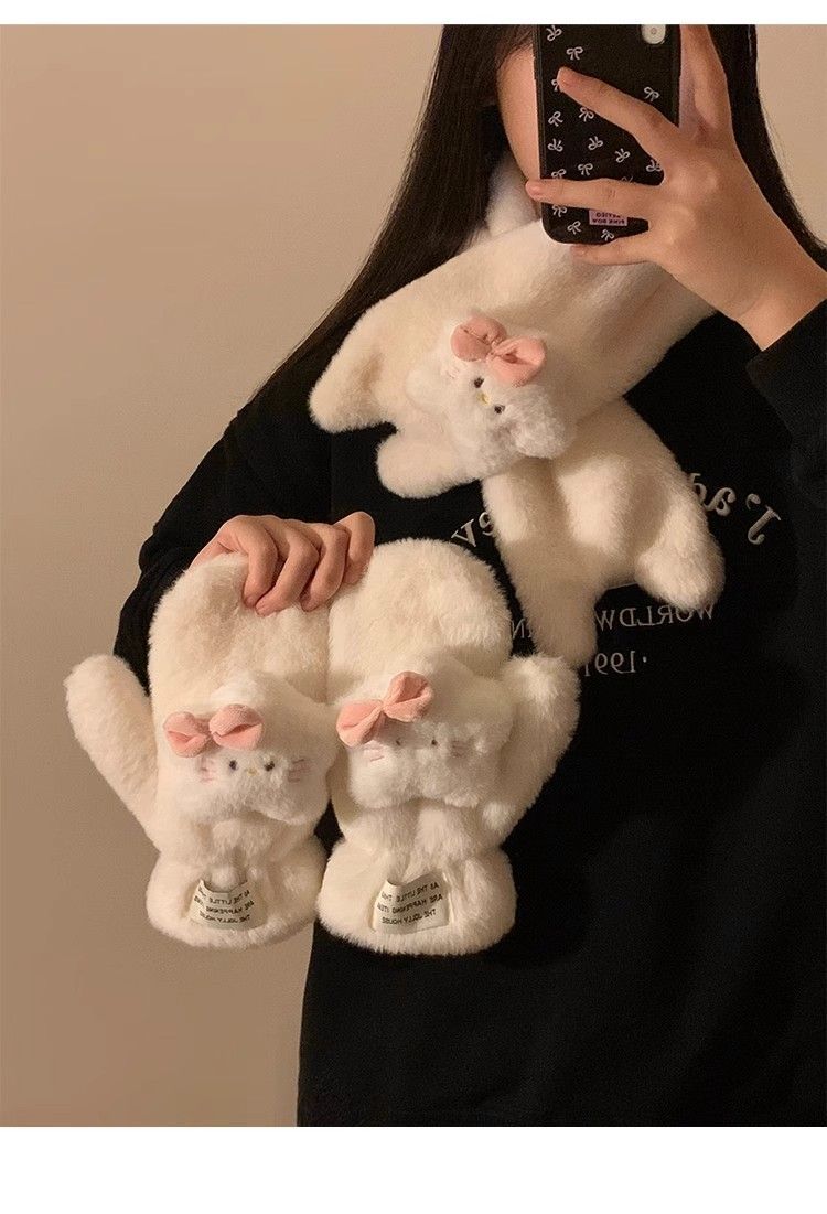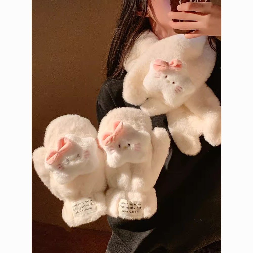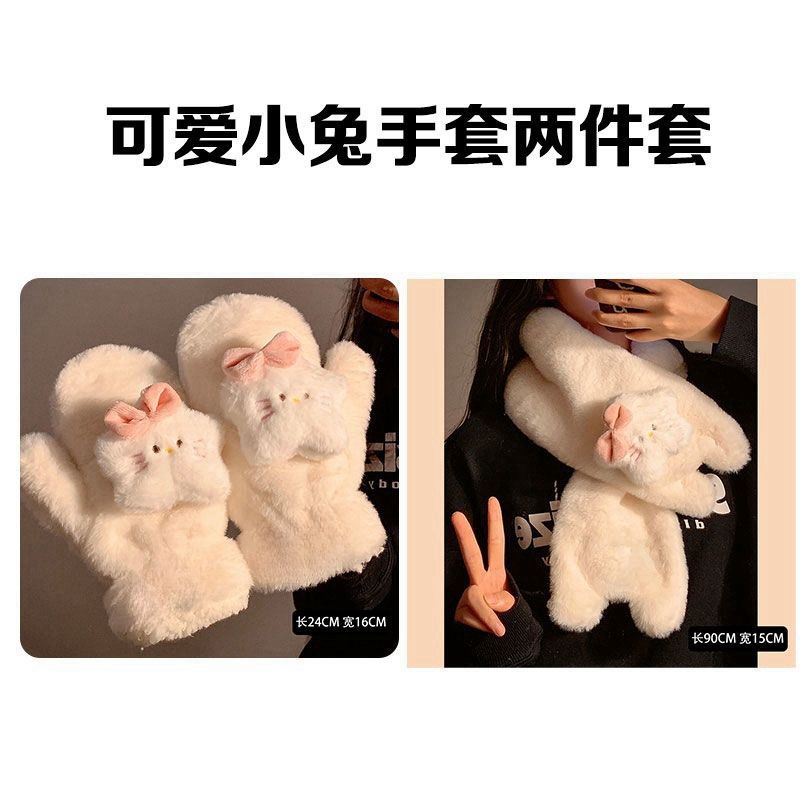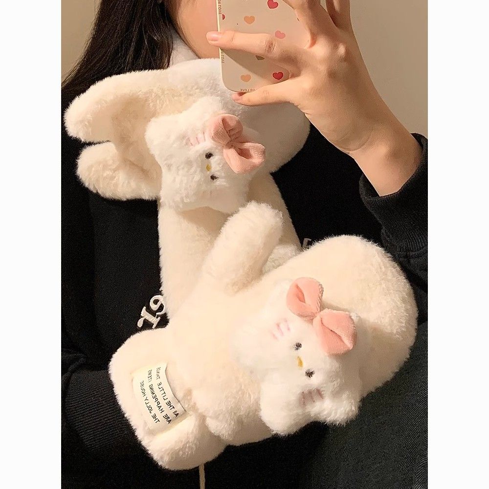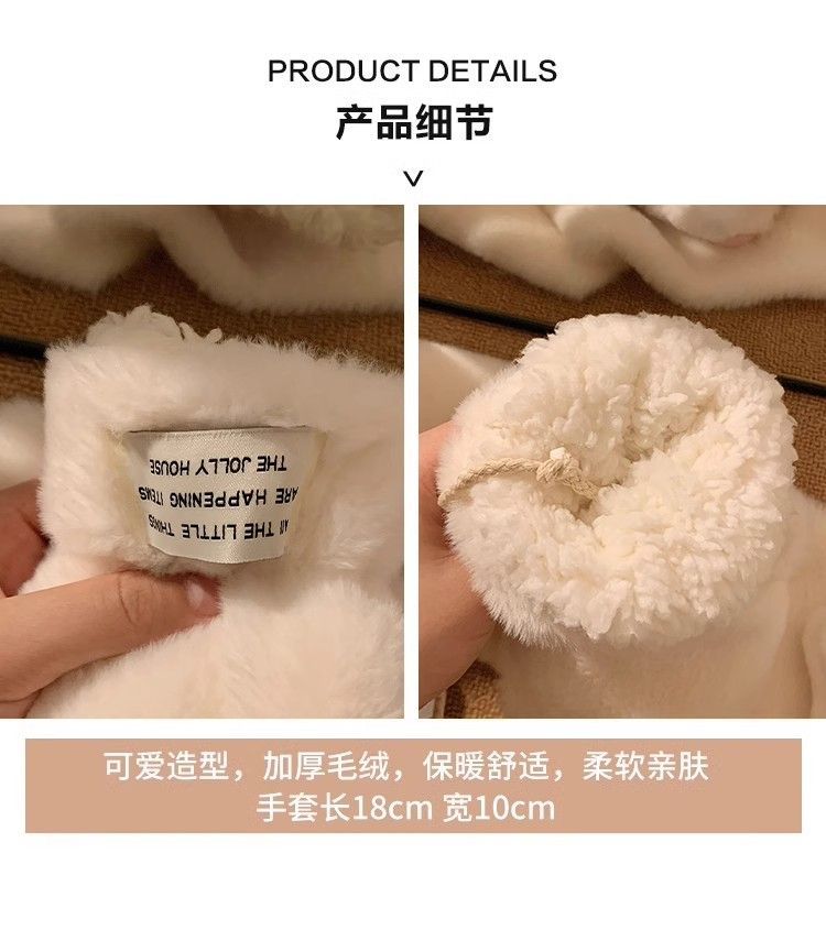 可爱五角星猫咪毛绒手套女冬季保暖挂脖加厚学生全包连指防寒骑车