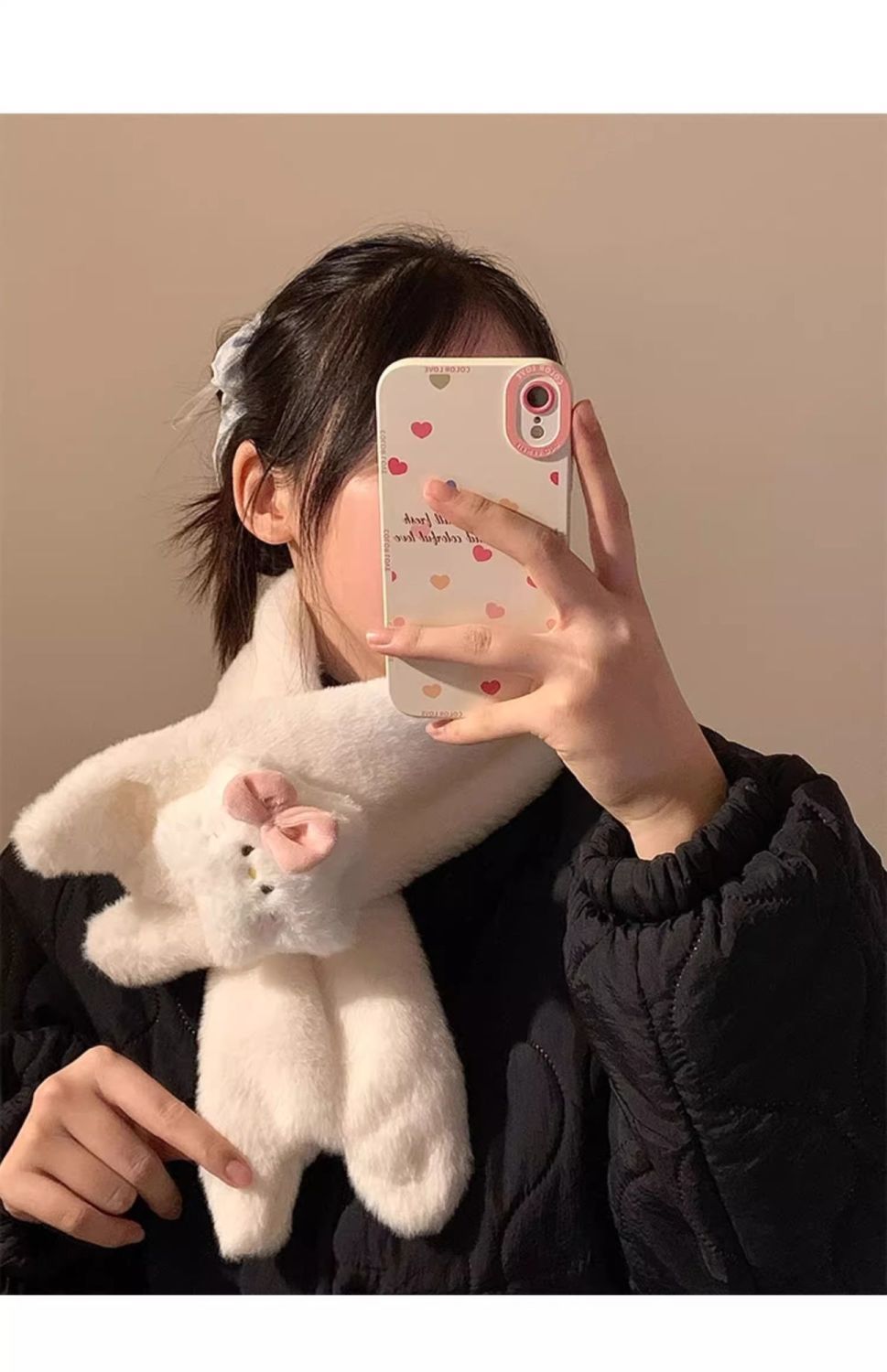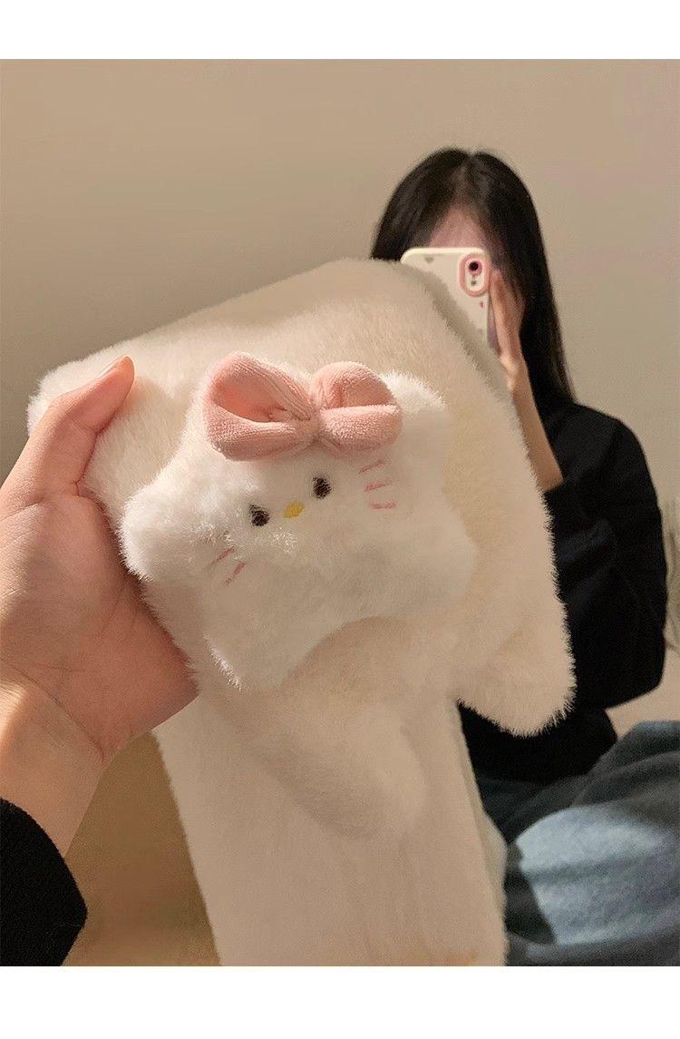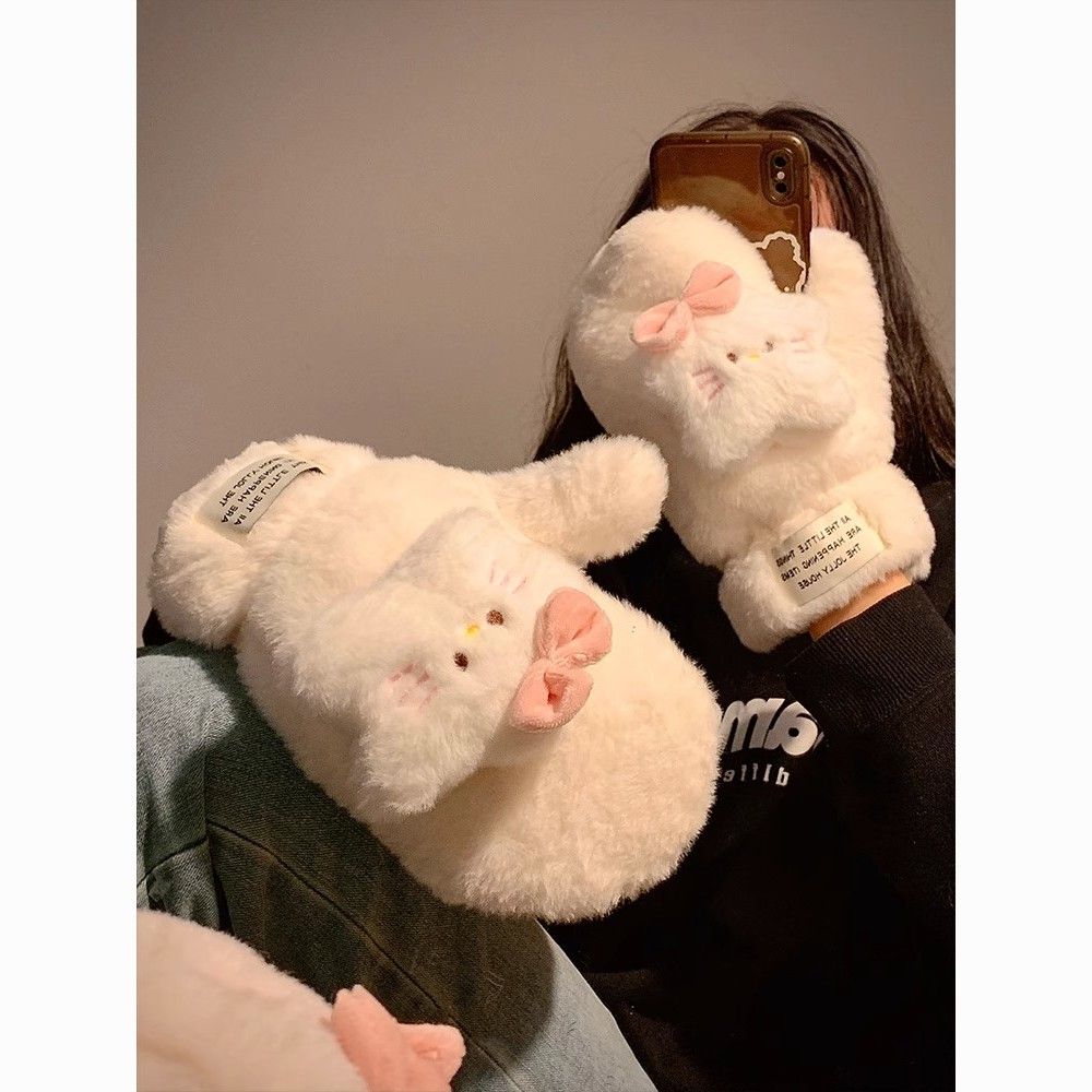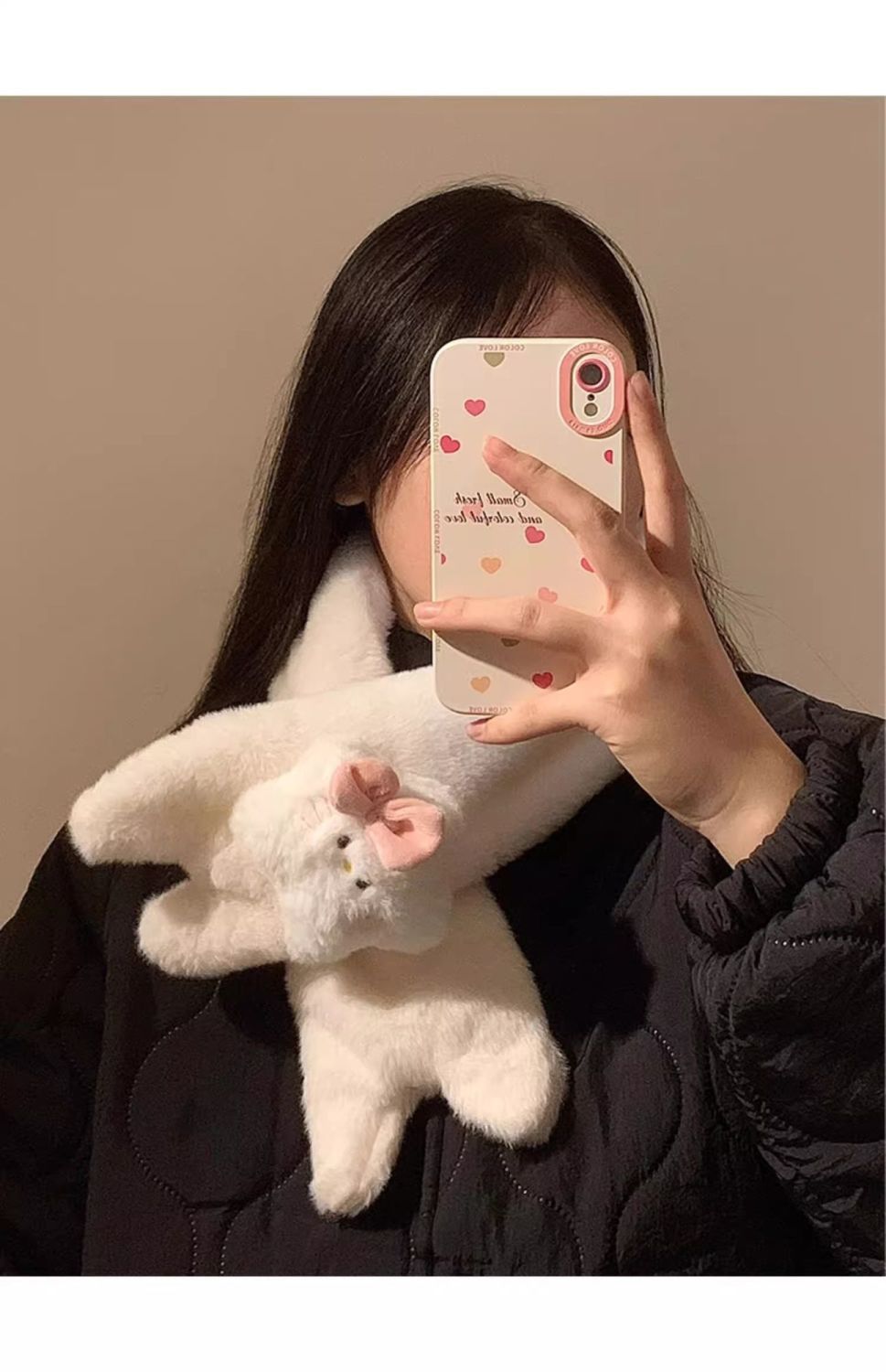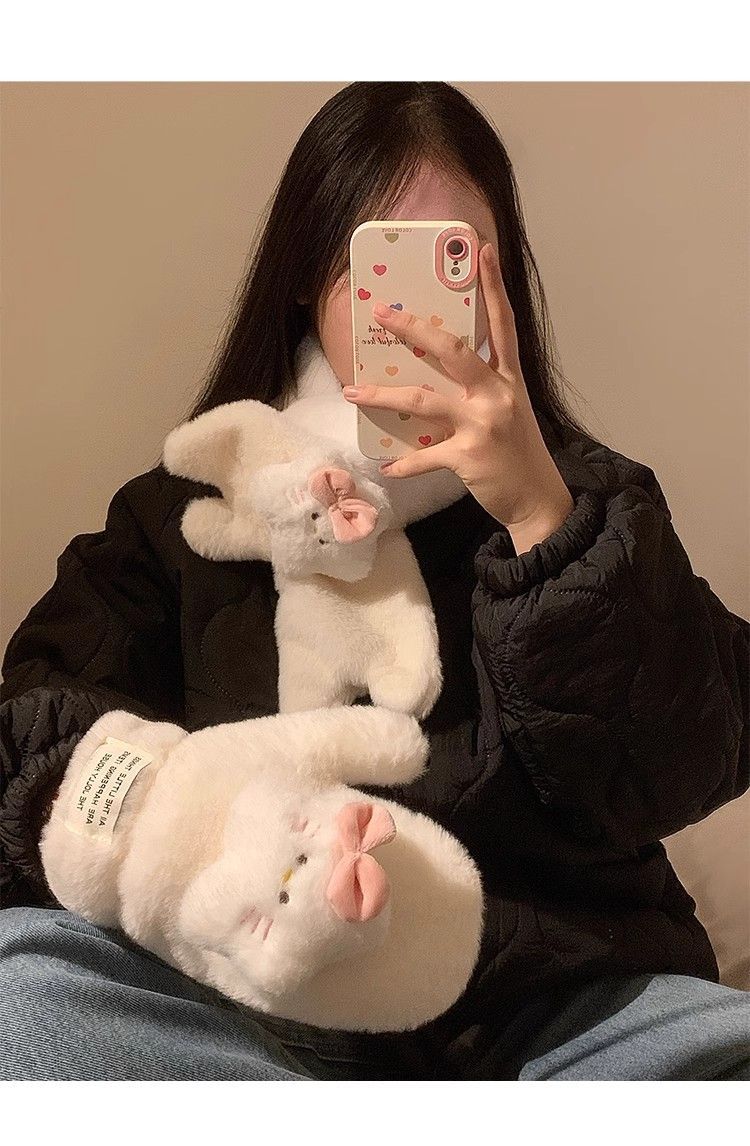 可爱五角星猫咪毛绒手套女冬季保暖挂脖加厚学生全包连指防寒骑车