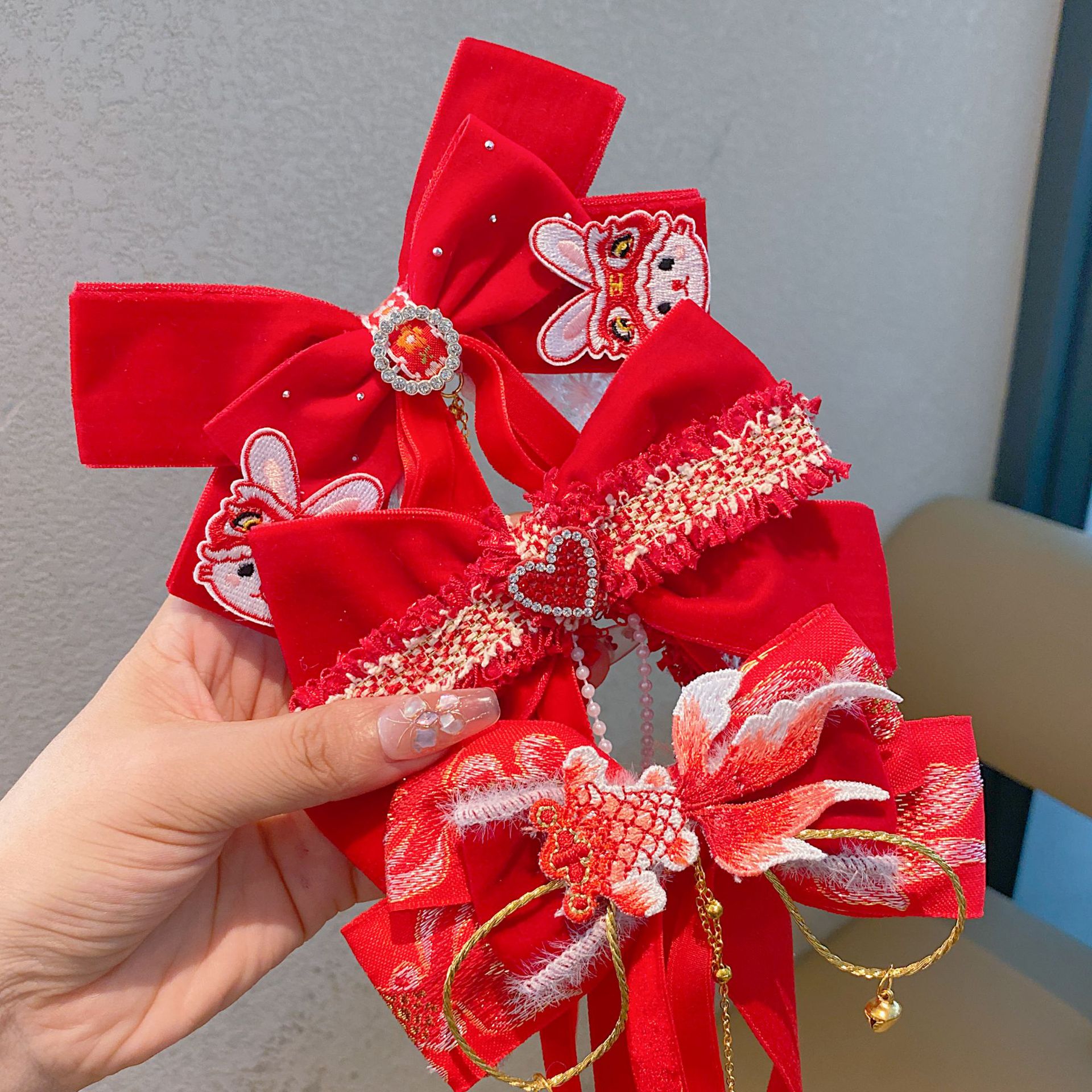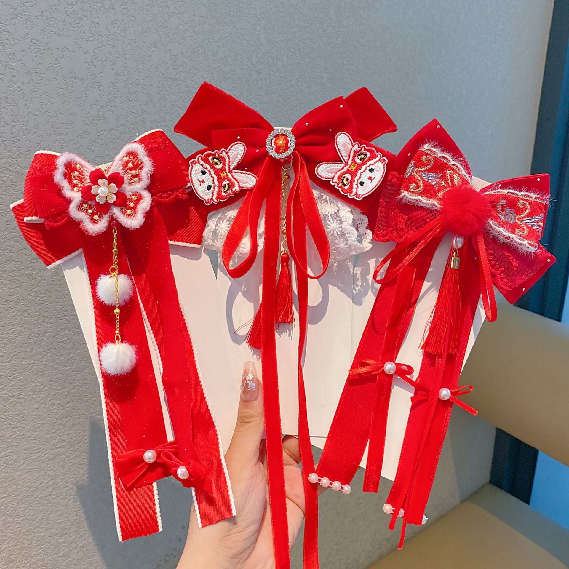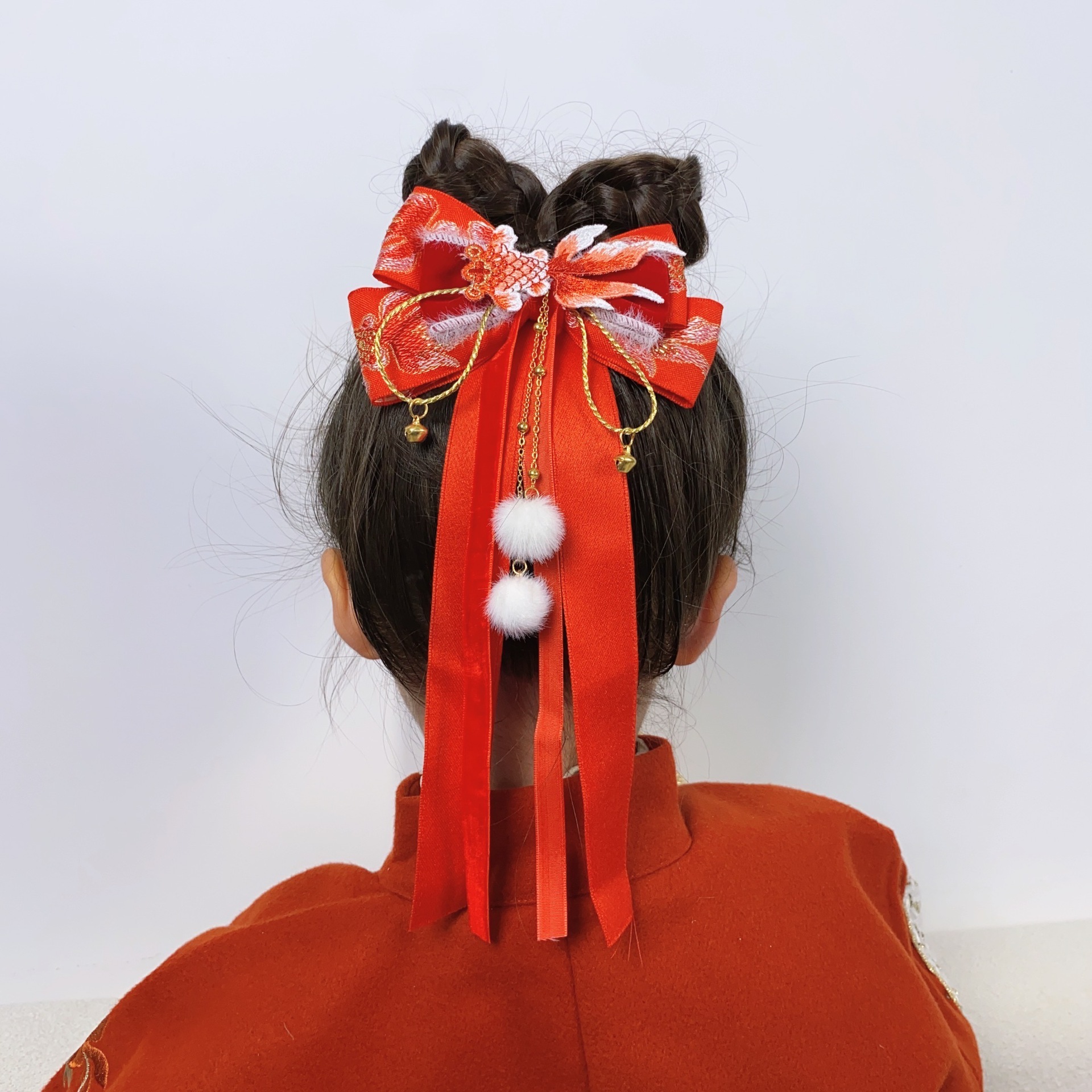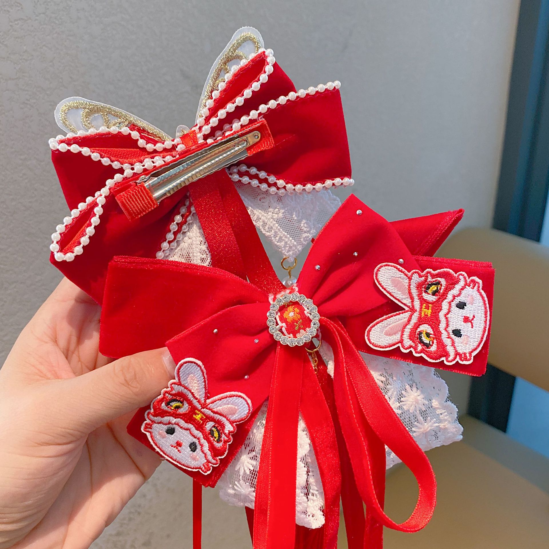 新年头饰儿童蝴蝶结发卡2024过年发饰女孩中国风公主喜庆拜年发夹