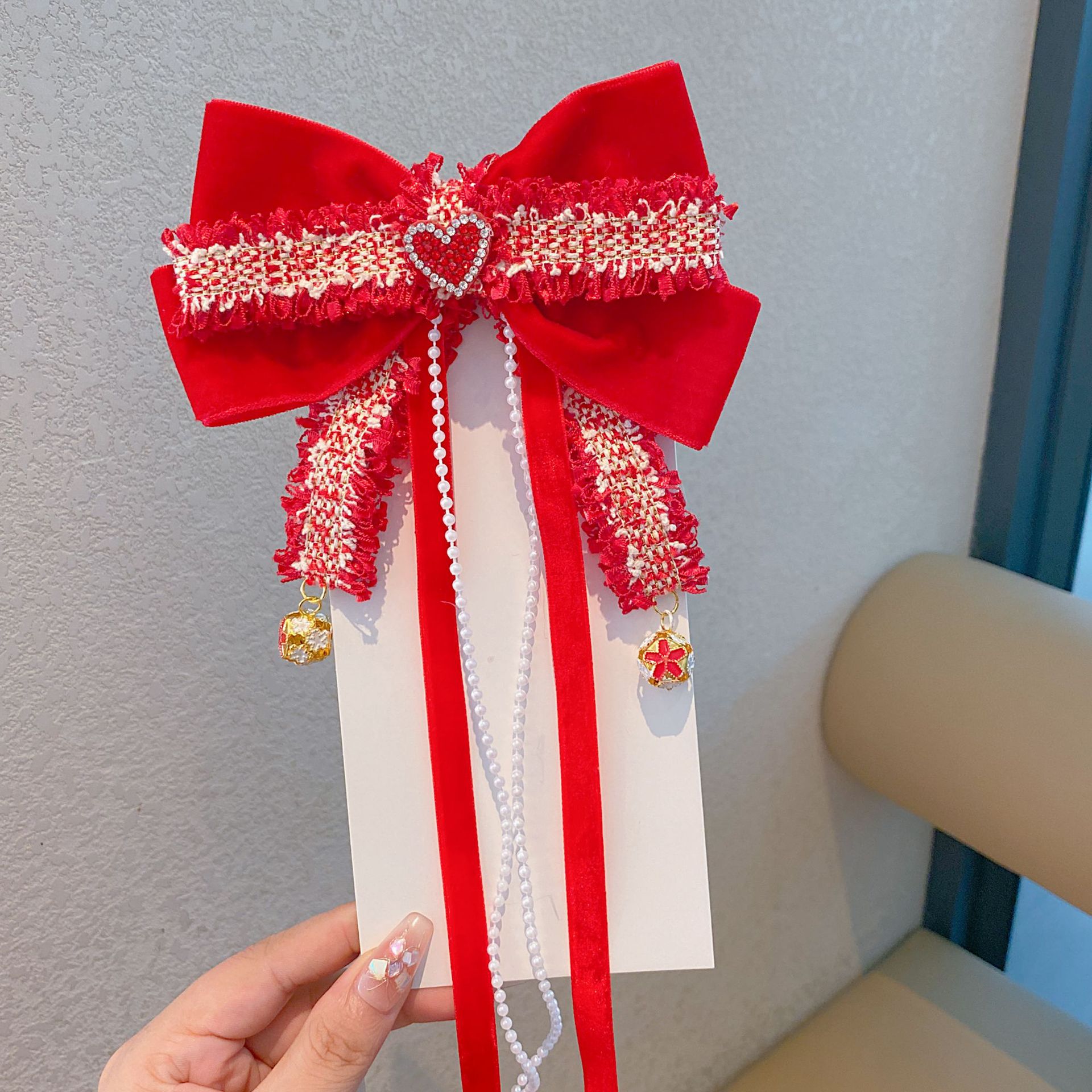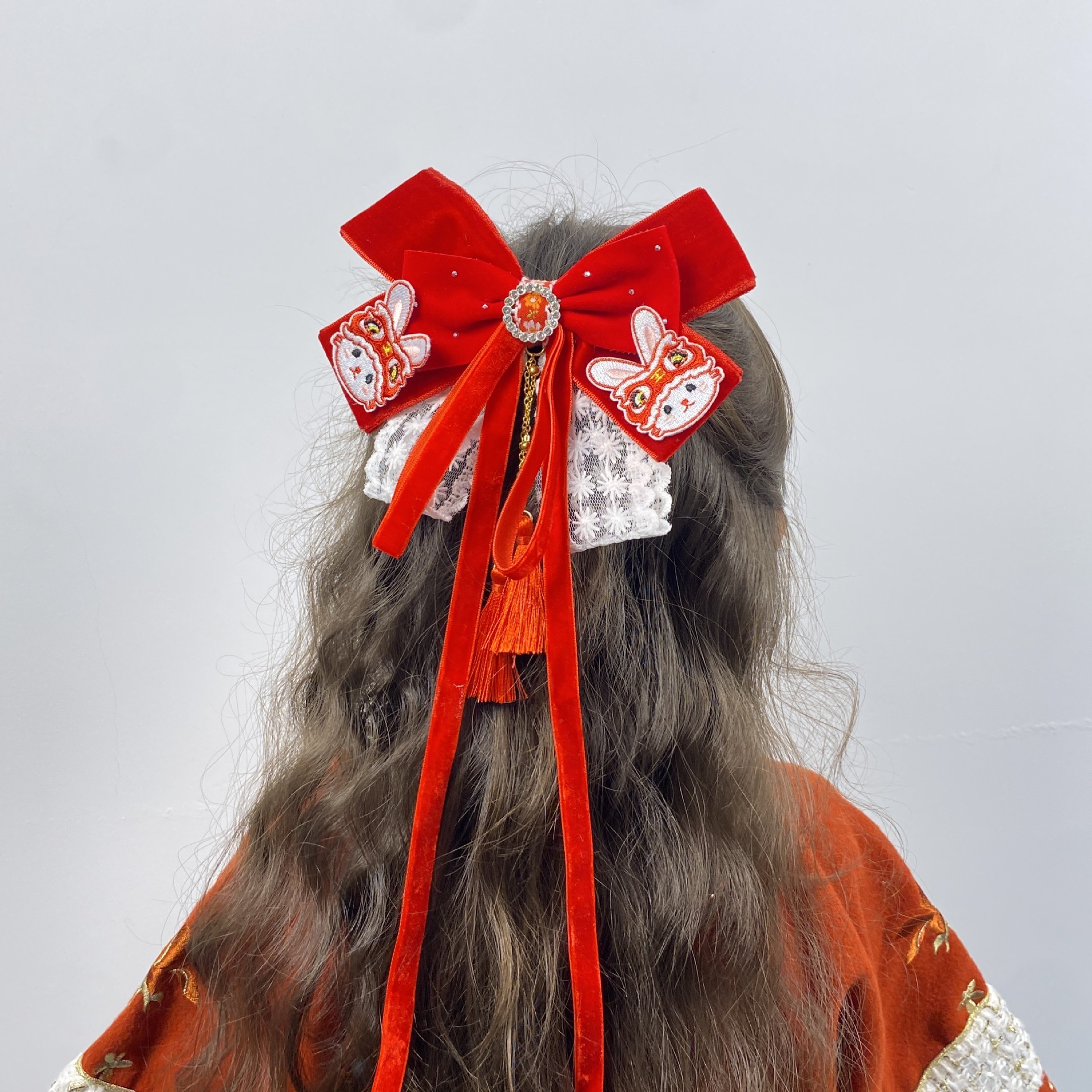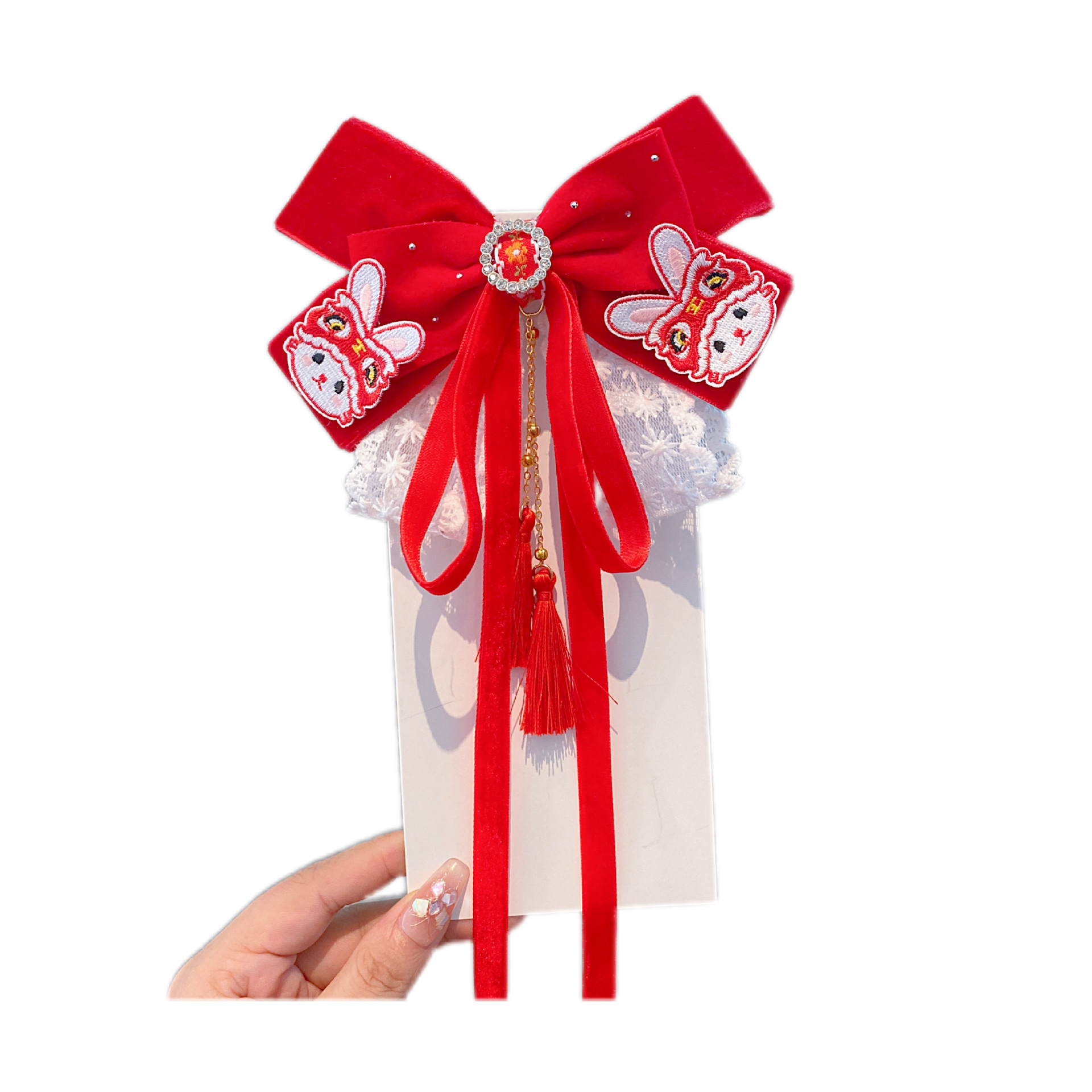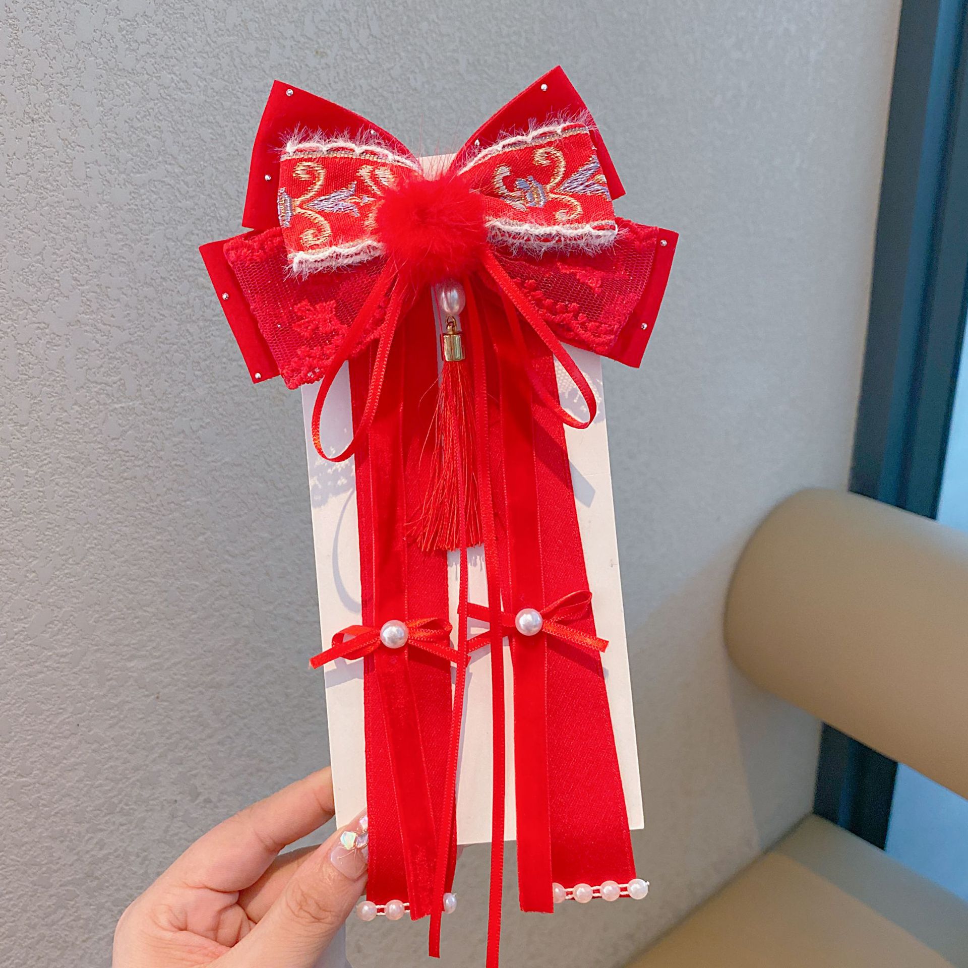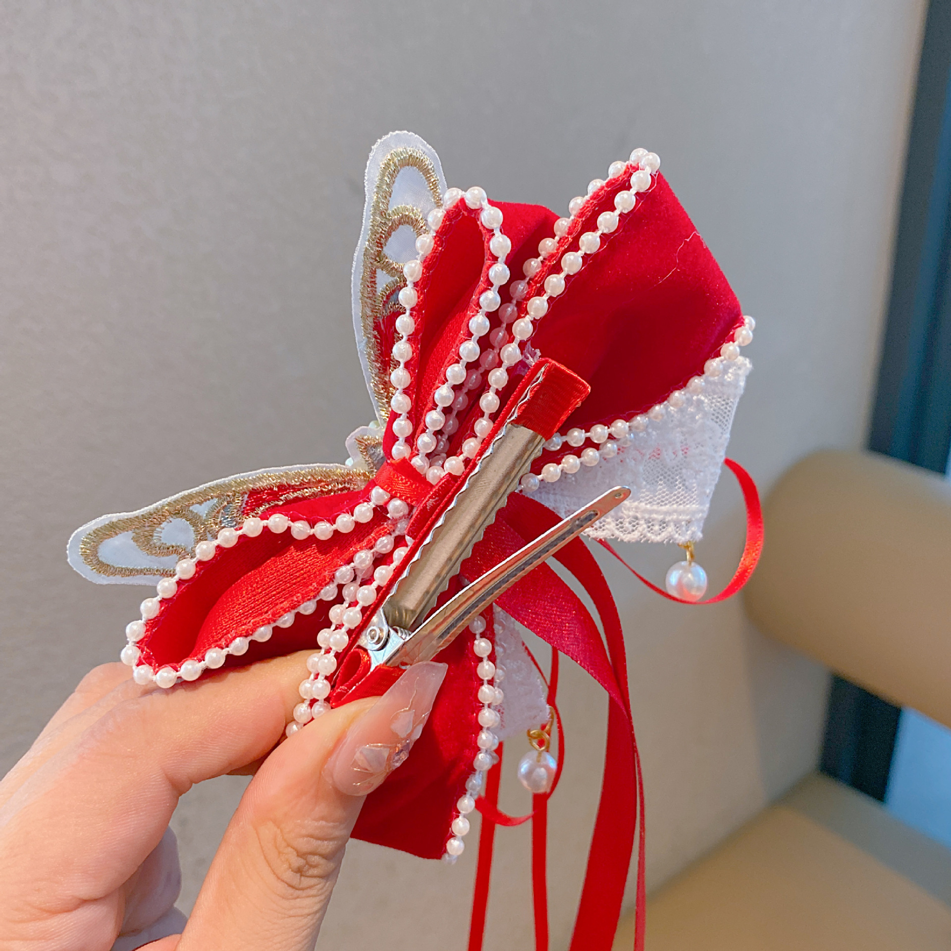 新年头饰儿童蝴蝶结发卡2024过年发饰女孩中国风公主喜庆拜年发夹