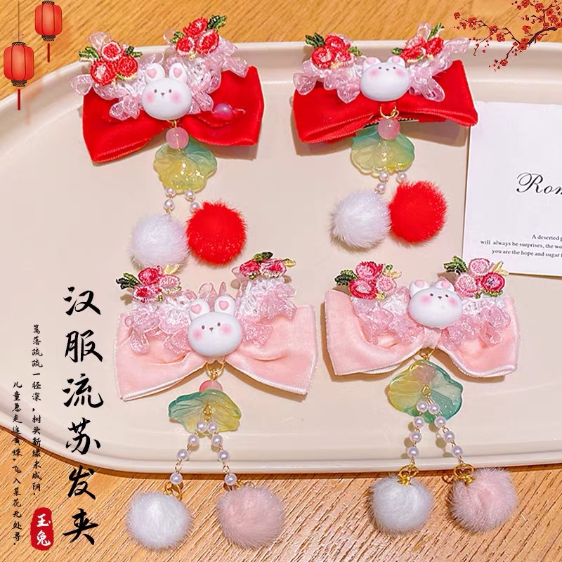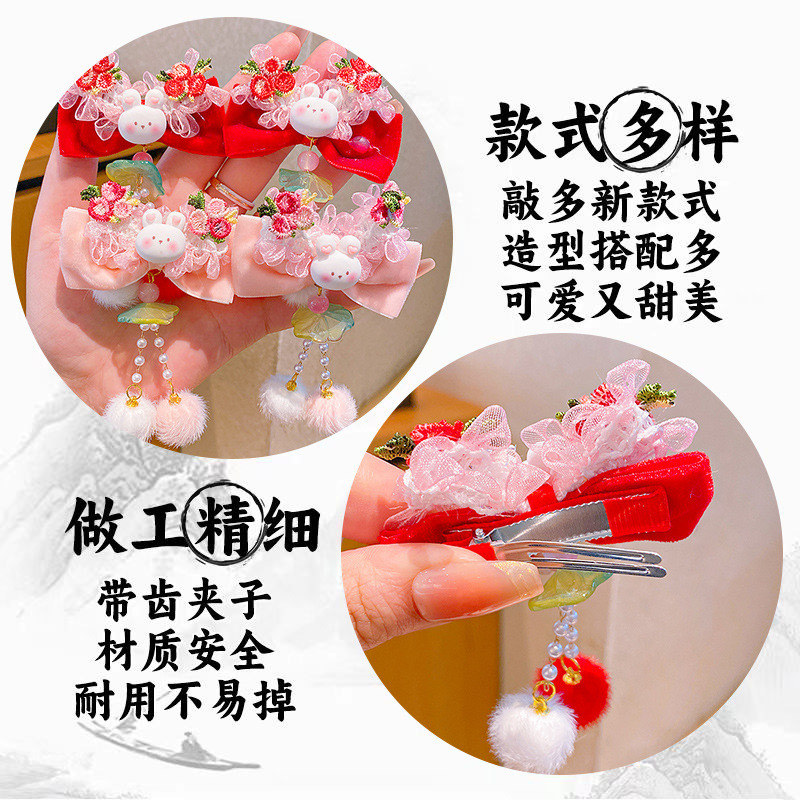 2024新款儿童发夹女童新年拜年发饰红色铃铛宝宝过年年服配饰发卡