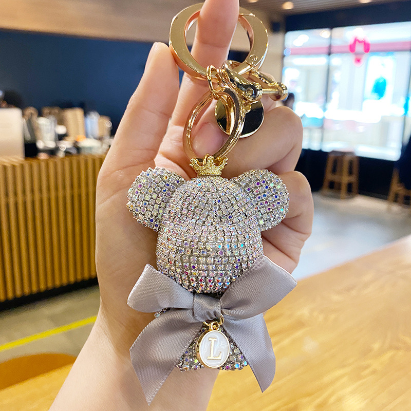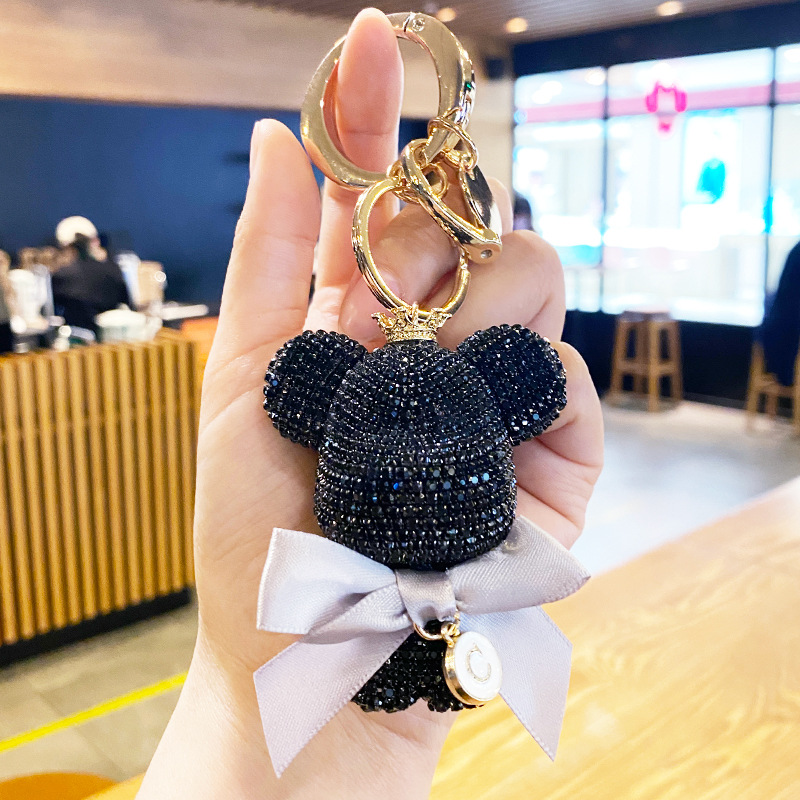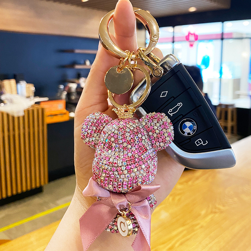 高档镶钻小熊防丢汽车钥匙扣精致可爱男女钥匙链卡通公仔礼品批发