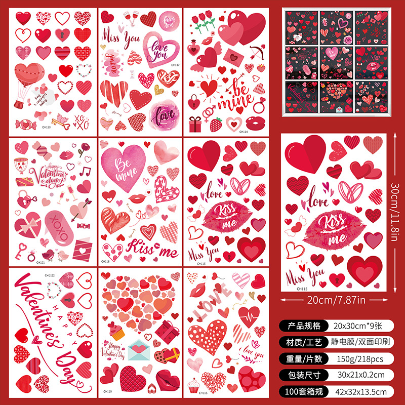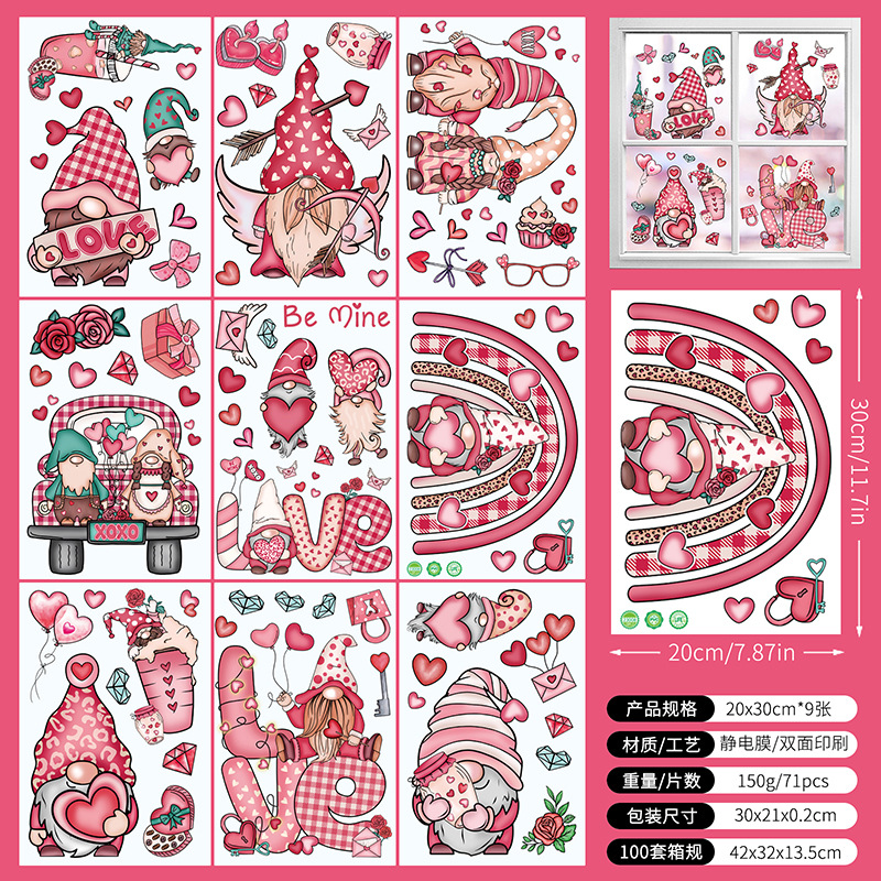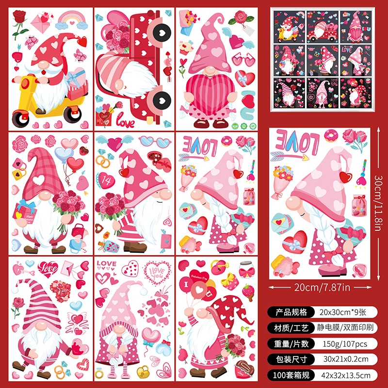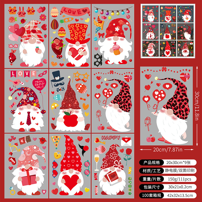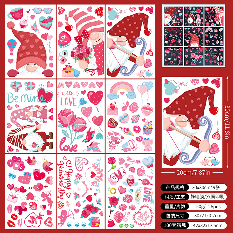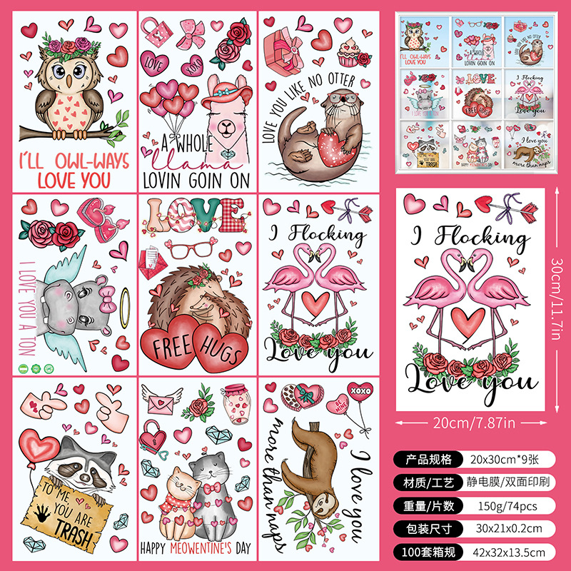 2025跨境情人节静电窗贴卡通小熊爱心橱窗玻璃贴画pvc门窗美化贴