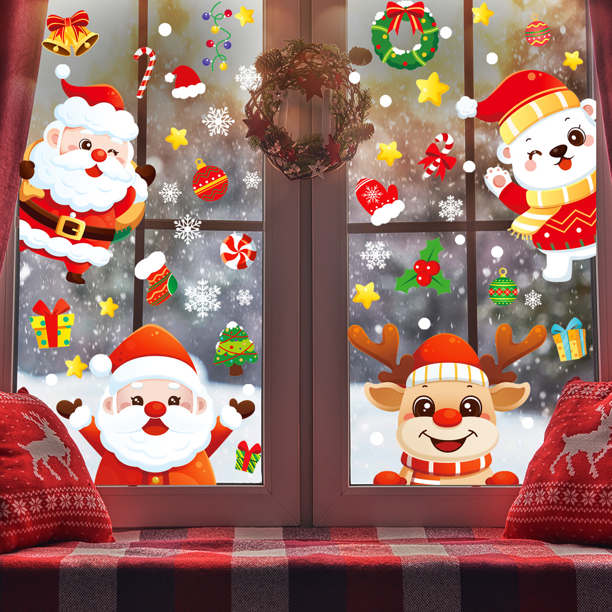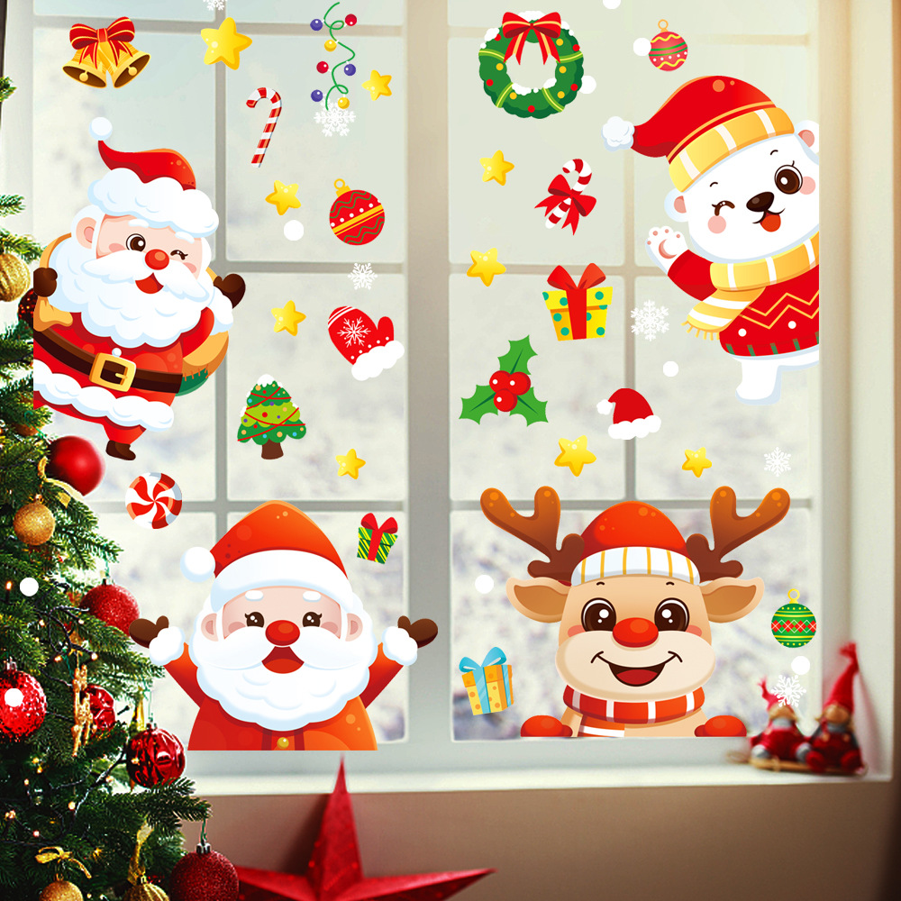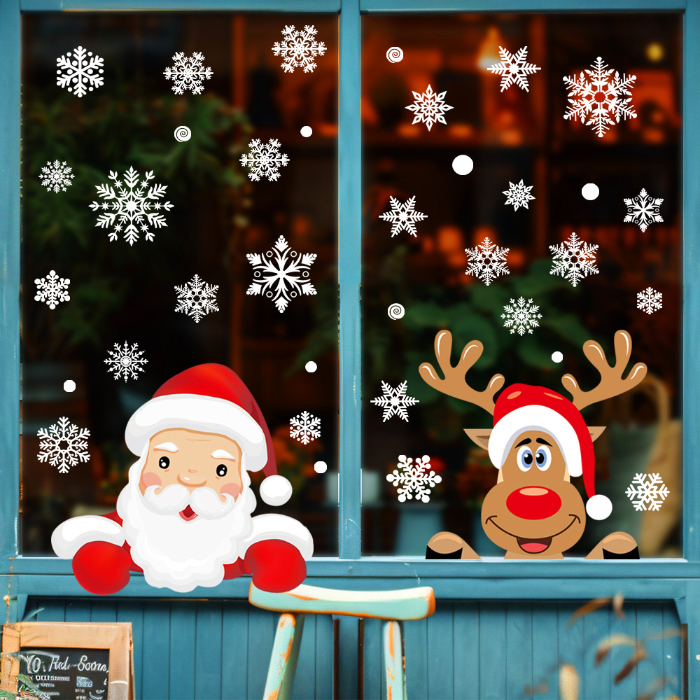2025新款亚马逊热销圣诞节窗贴temu希音玻璃门窗静电双面墙贴纸