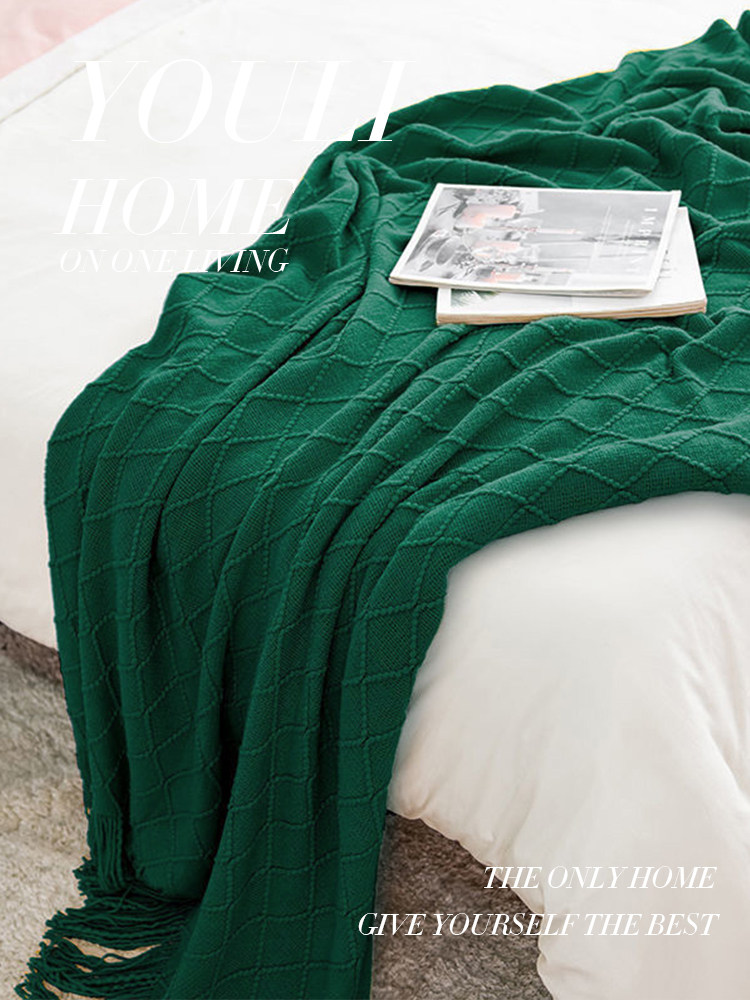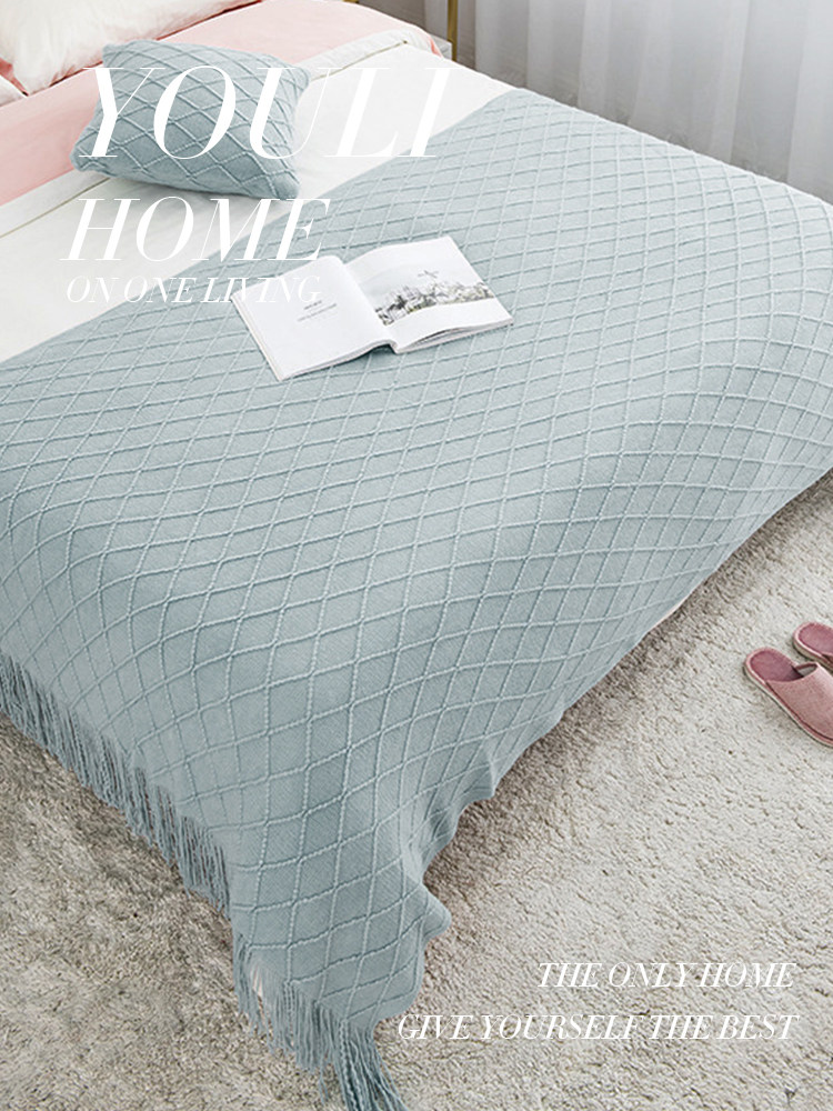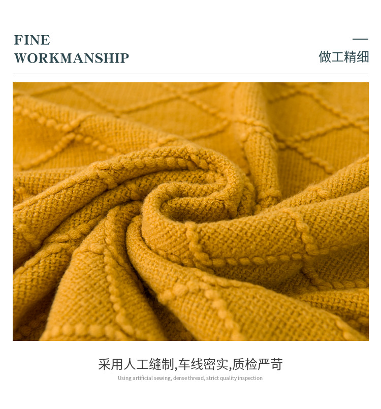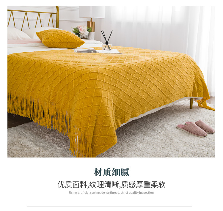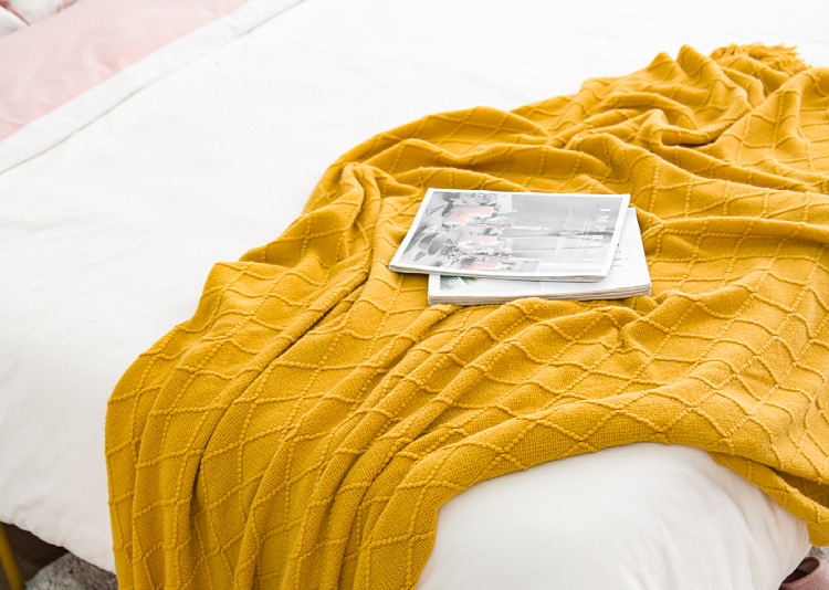 北欧复古菱格毛线毯子黄色针织毯床尾毯床搭沙发毯搭巾床尾巾盖毯