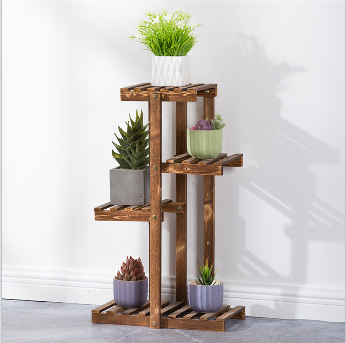多功能家用实用花架子杨桃室内置物架落地式实木碳化色花架
