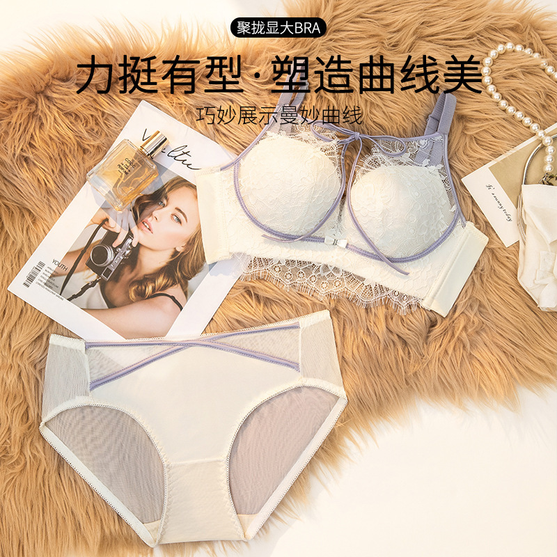 新娘结婚文胸套装小胸聚拢加厚圣诞新年本命年大红色法式蕾丝内衣