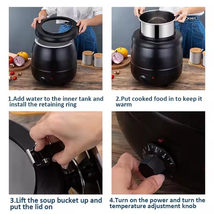 自助餐电子暖汤煲10L13L商用不锈钢保温锅粥桶酒店汤锅电加热汤炉
