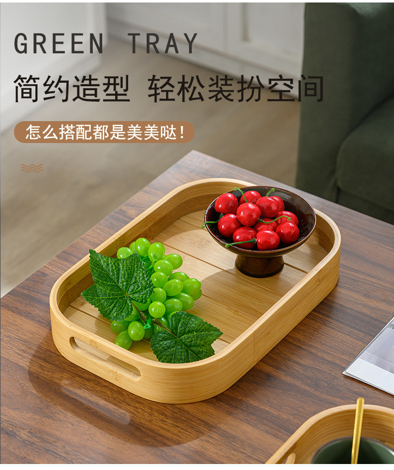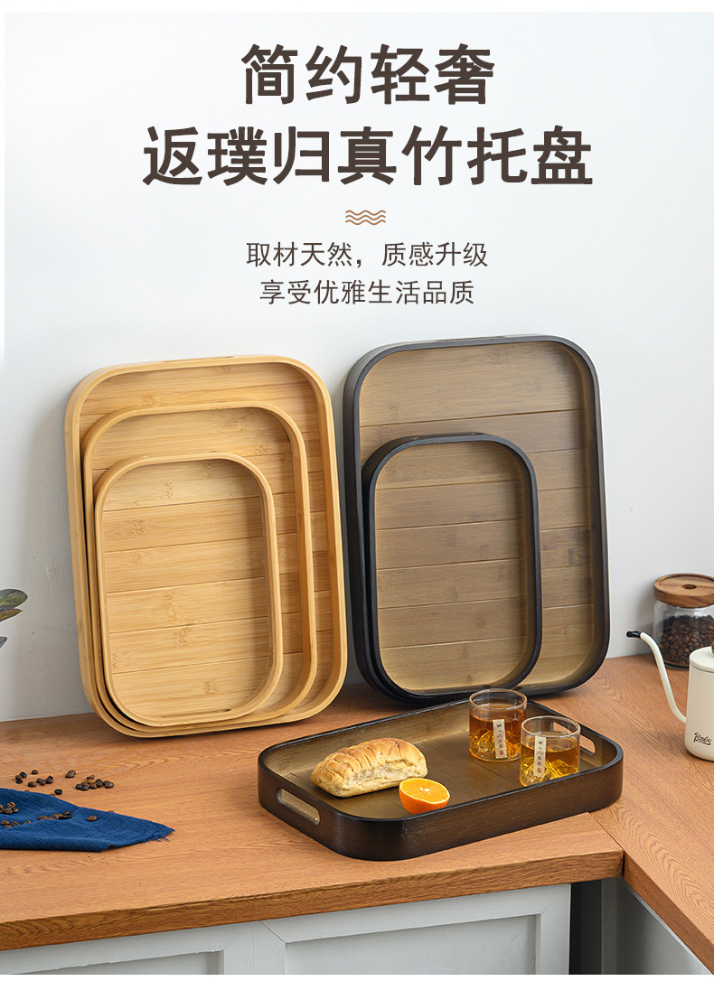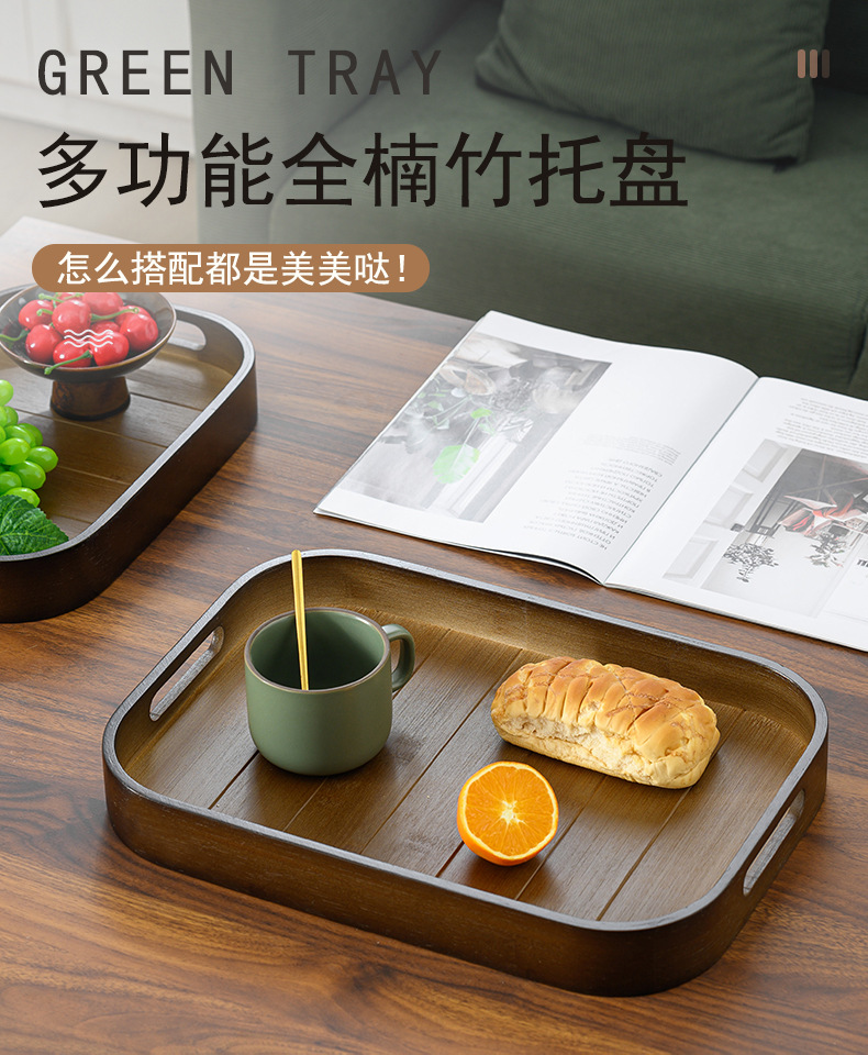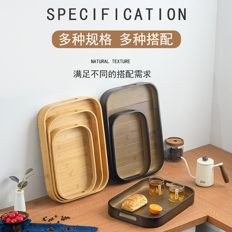 竹制托盘水果茶具收纳盘酒店茶楼民宿家用长方形茶盘客厅水果盘子