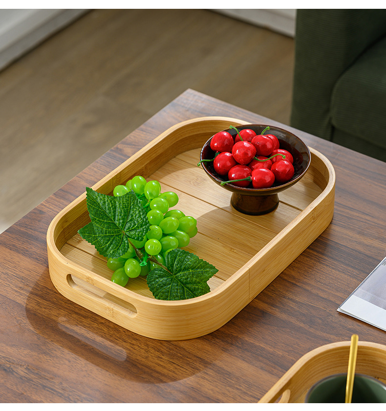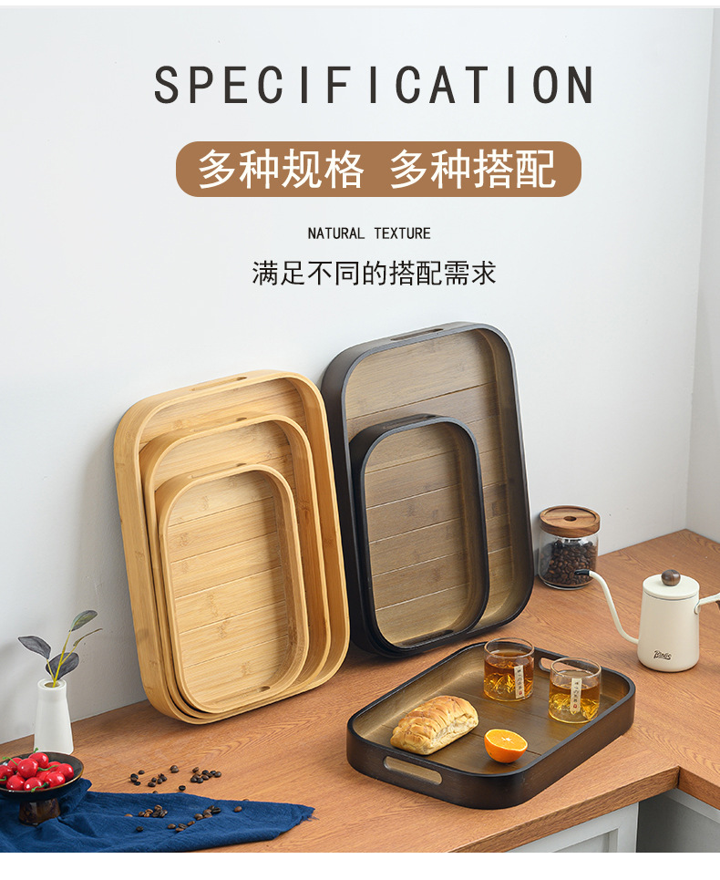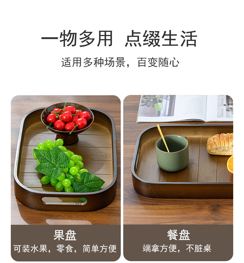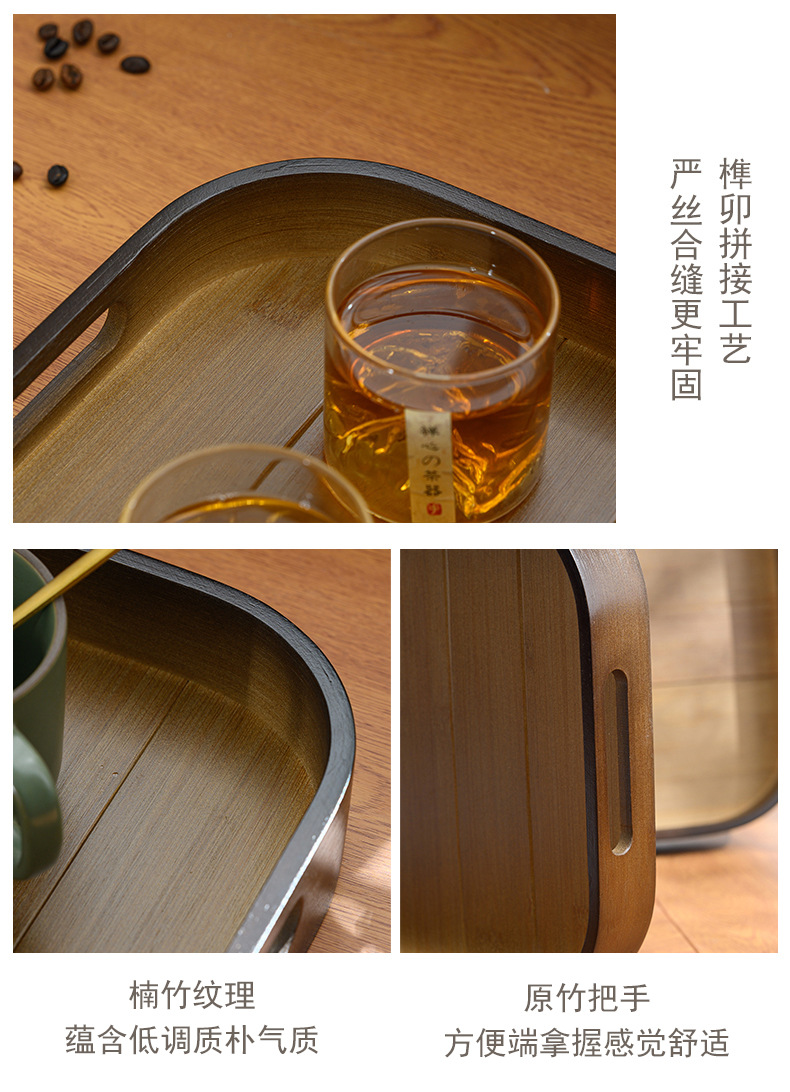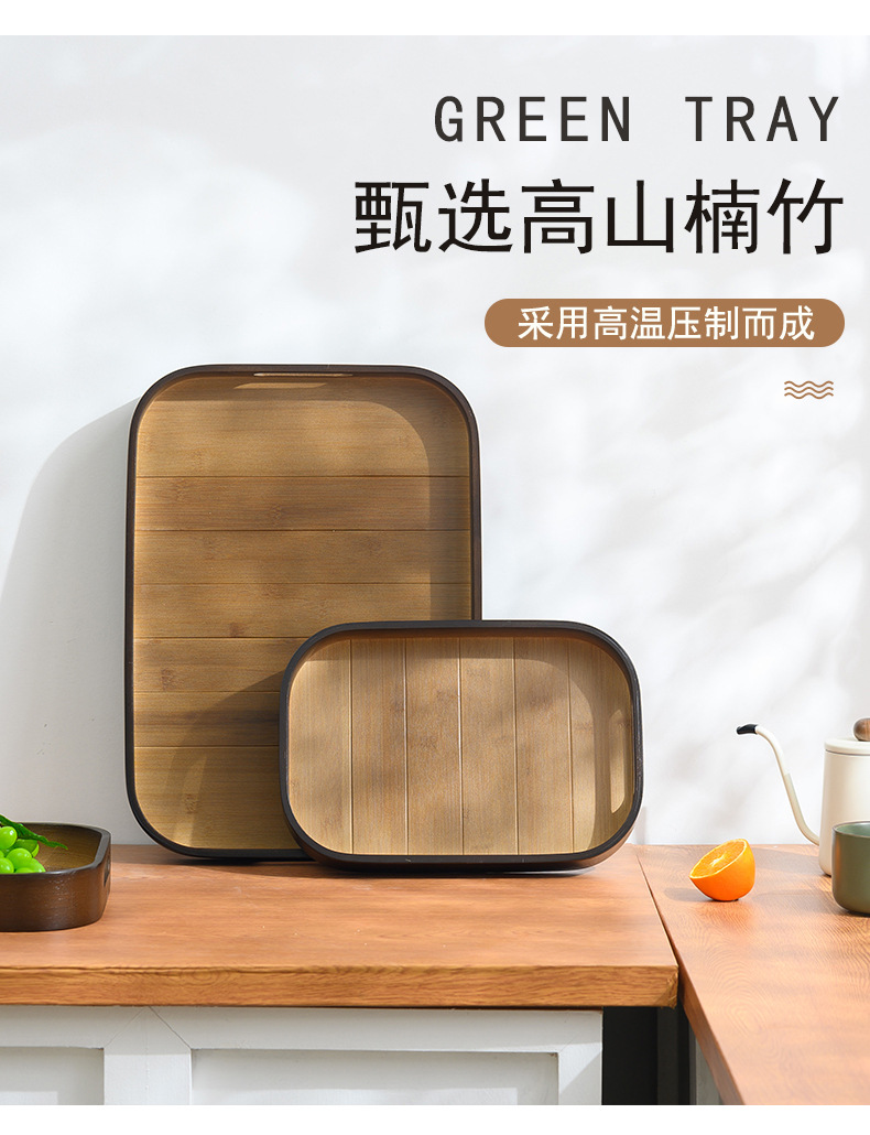 竹制托盘水果茶具收纳盘酒店茶楼民宿家用长方形茶盘客厅水果盘子