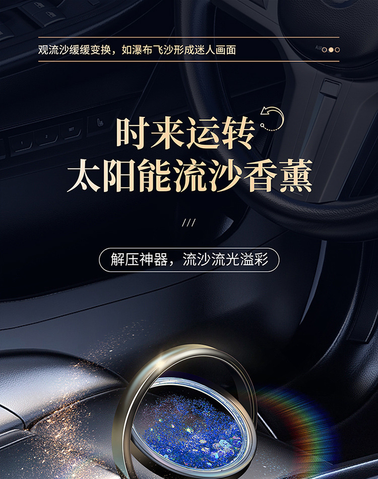 车载太阳能流沙摆件太阳能二合一解压太阳能香薰摆件车内清香氛