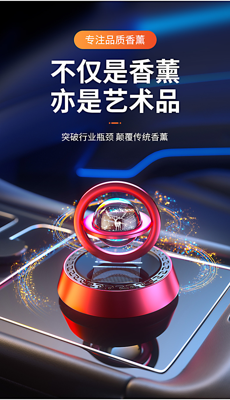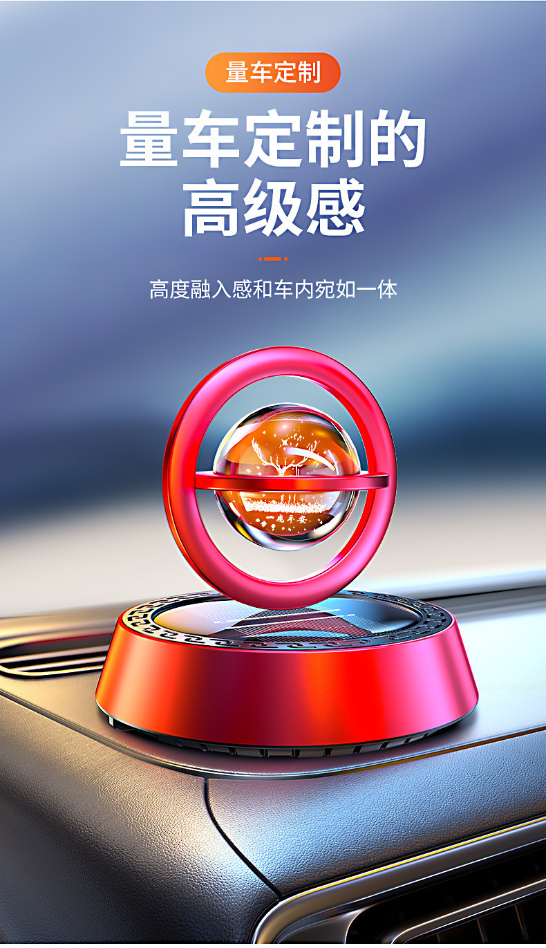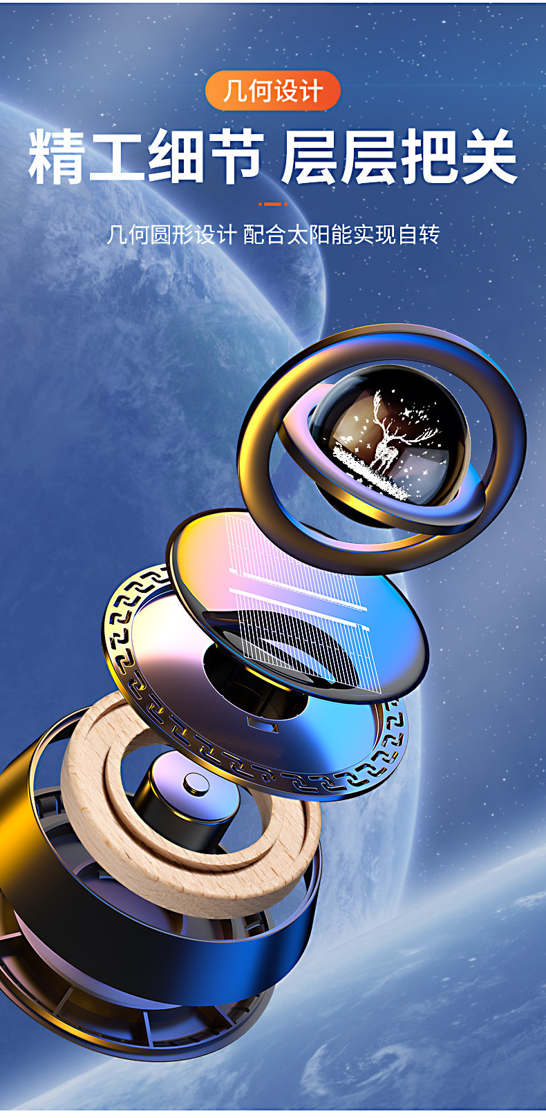 跨境太阳能旋转车载香水铝合金星际悬浮汽车香水摆件车载香薰