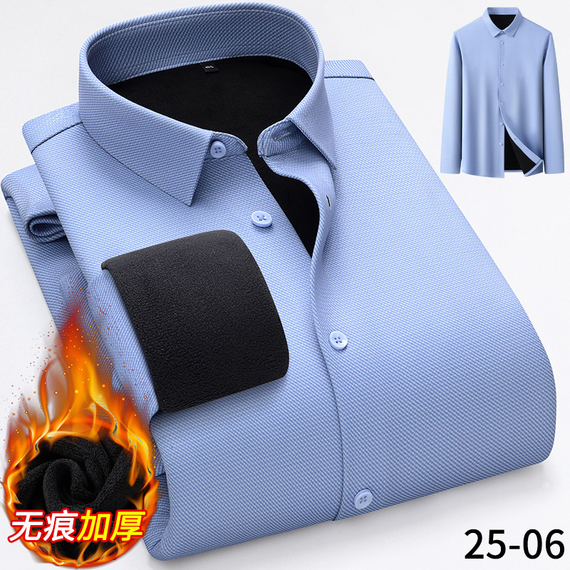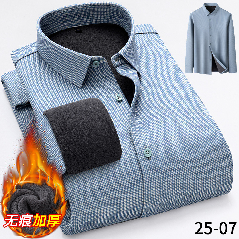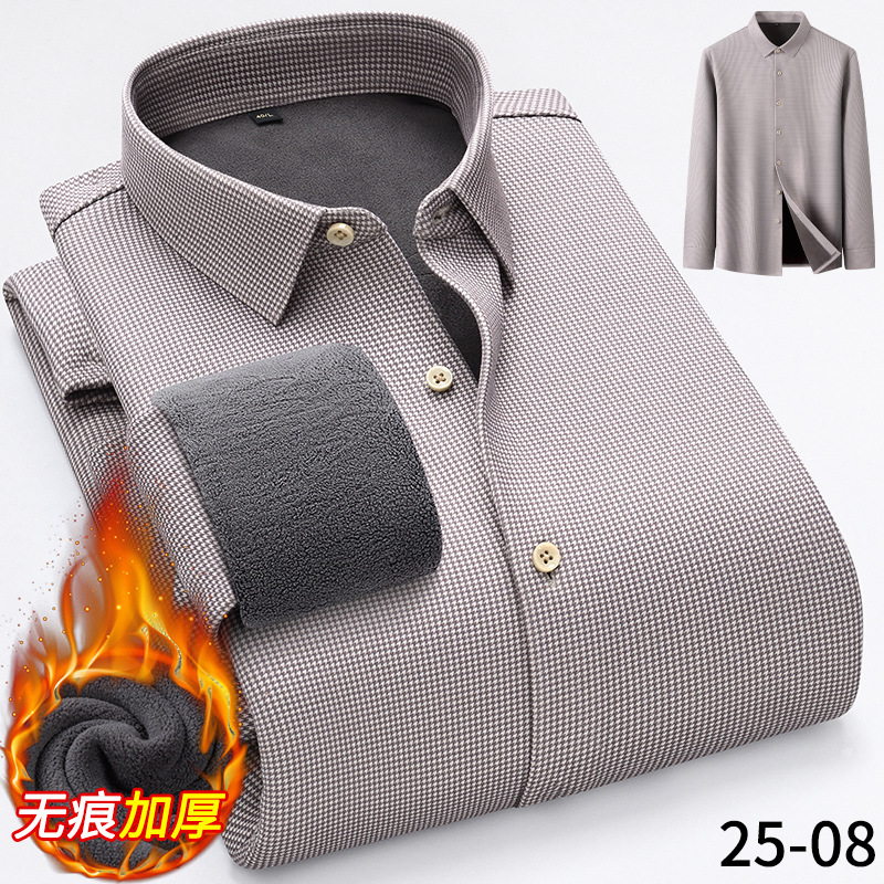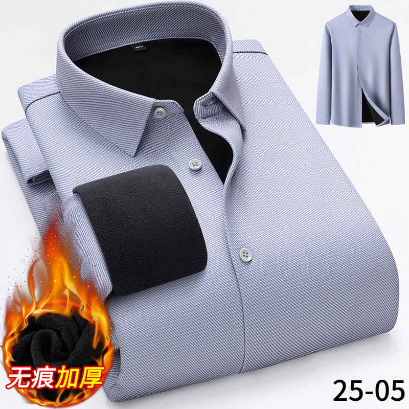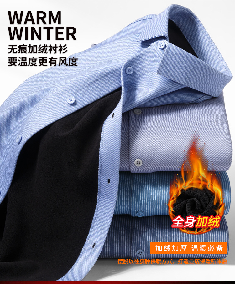 冬季无痕保暖衬衫复合一体绒双层加厚防寒单衬衣商务休闲爸爸装潮