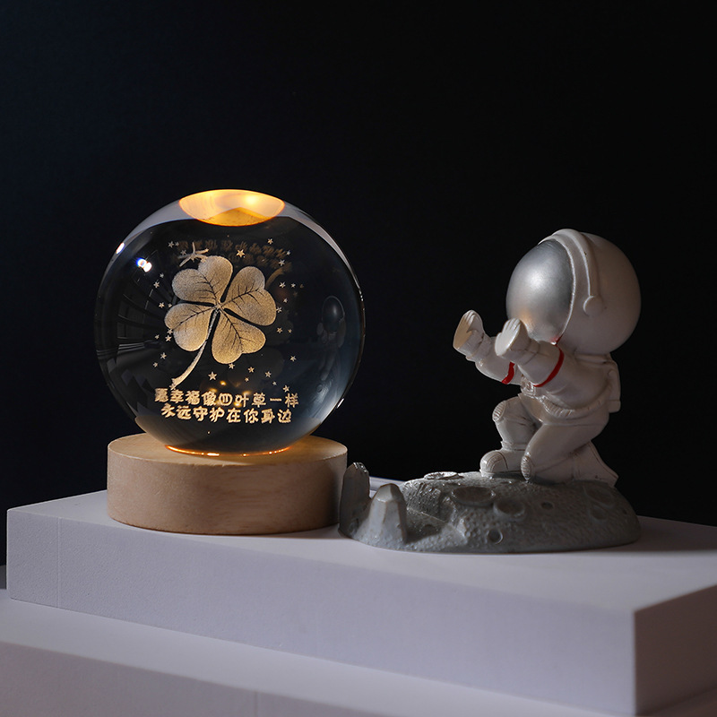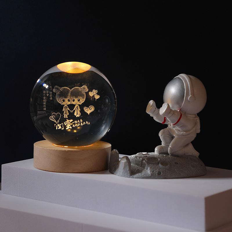 水晶球小夜灯内雕发光创意桌面摆件木底座礼物伴手礼