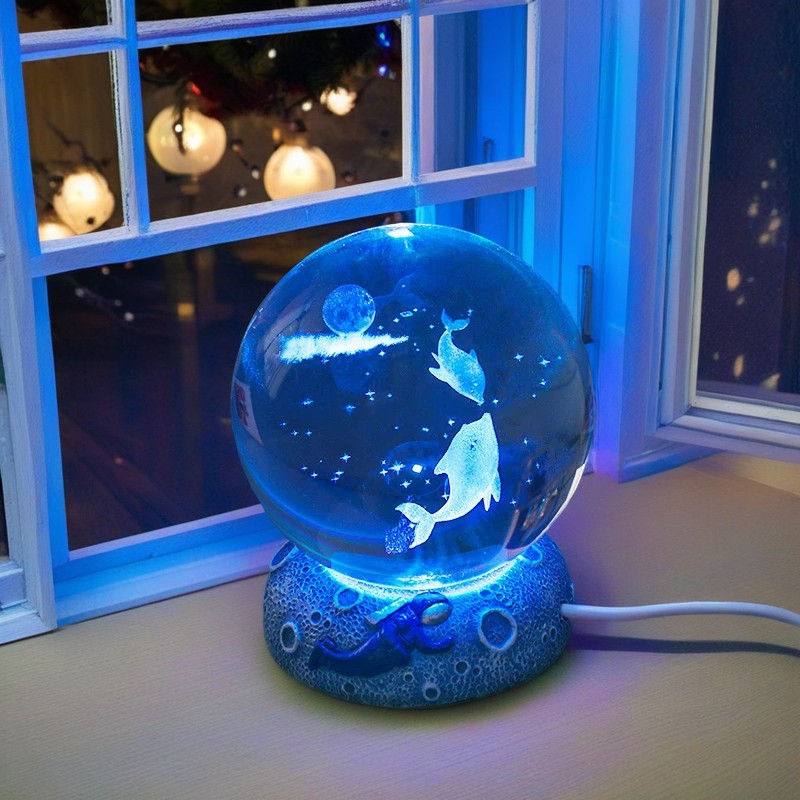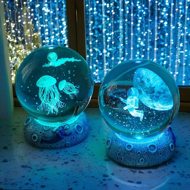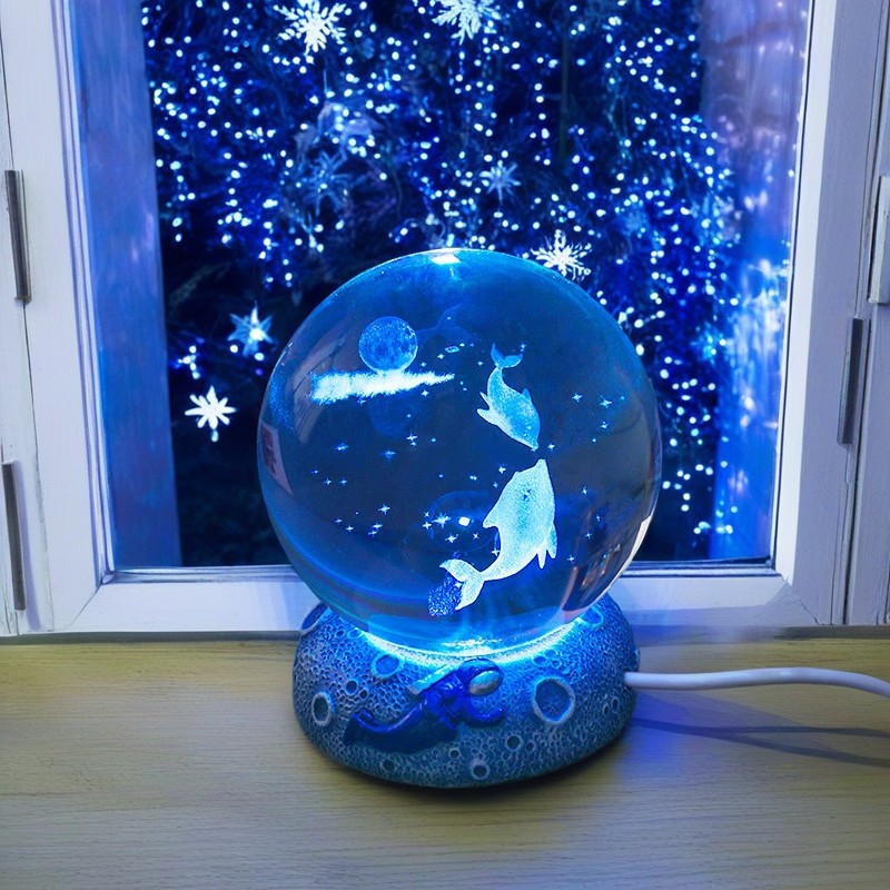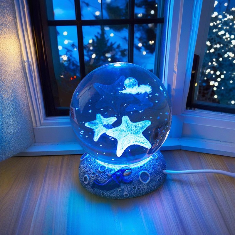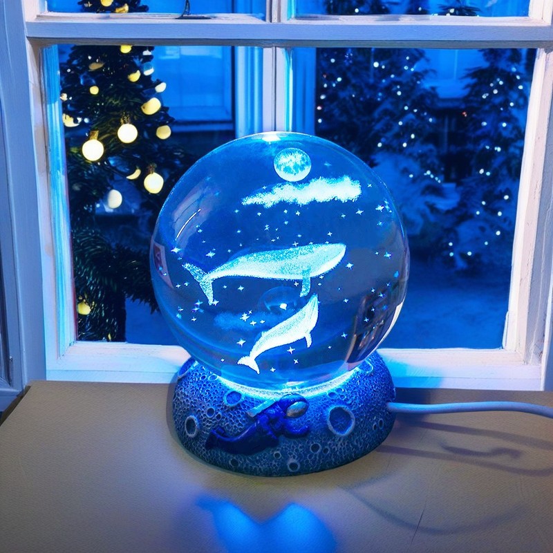 跨境海洋创意3d水晶球发光小夜灯桌面装饰摆件礼品礼物生日教师节