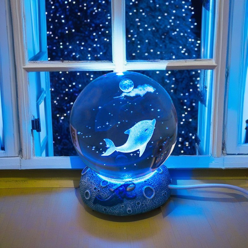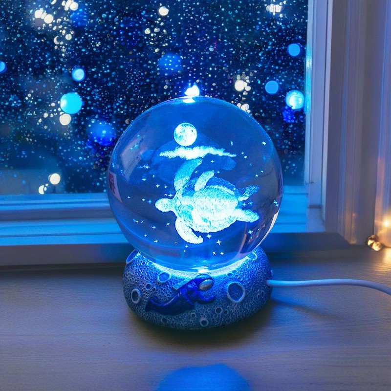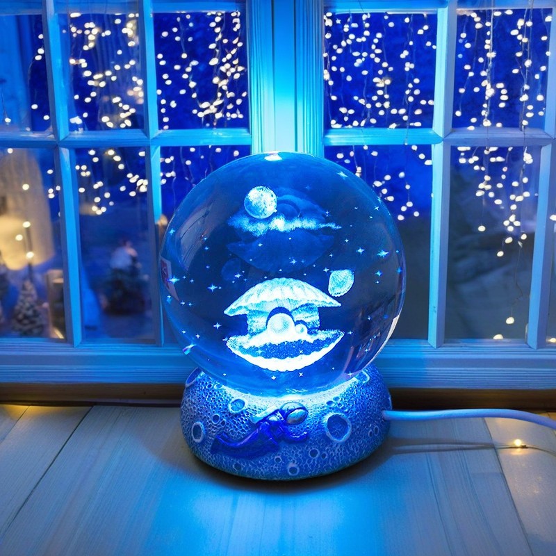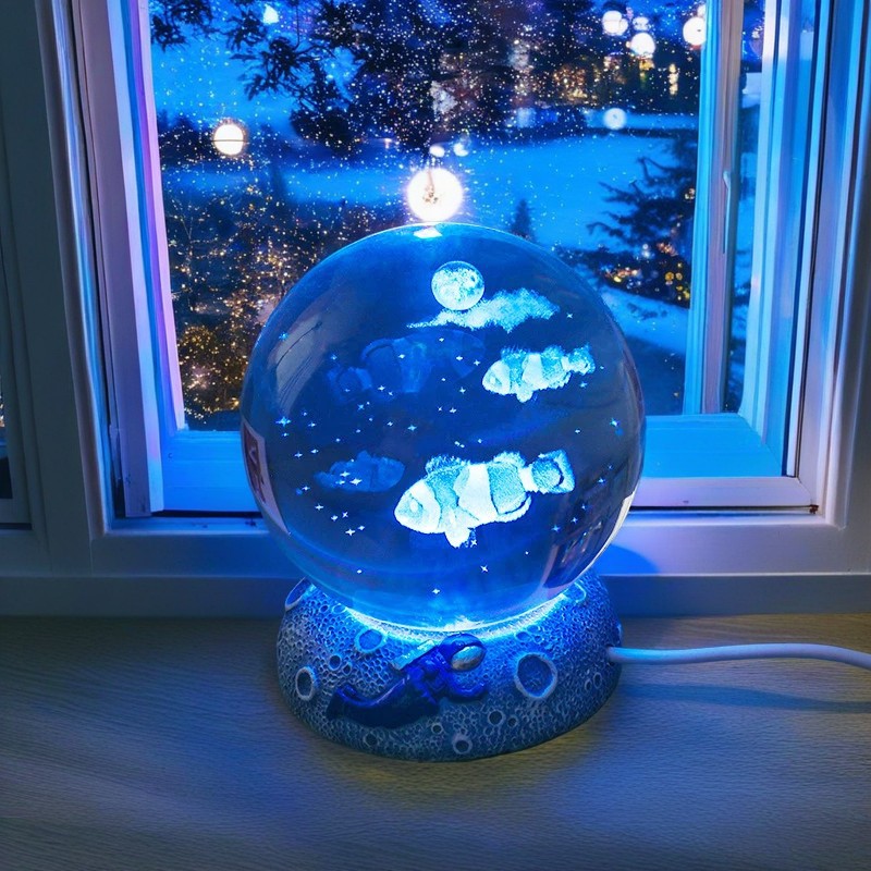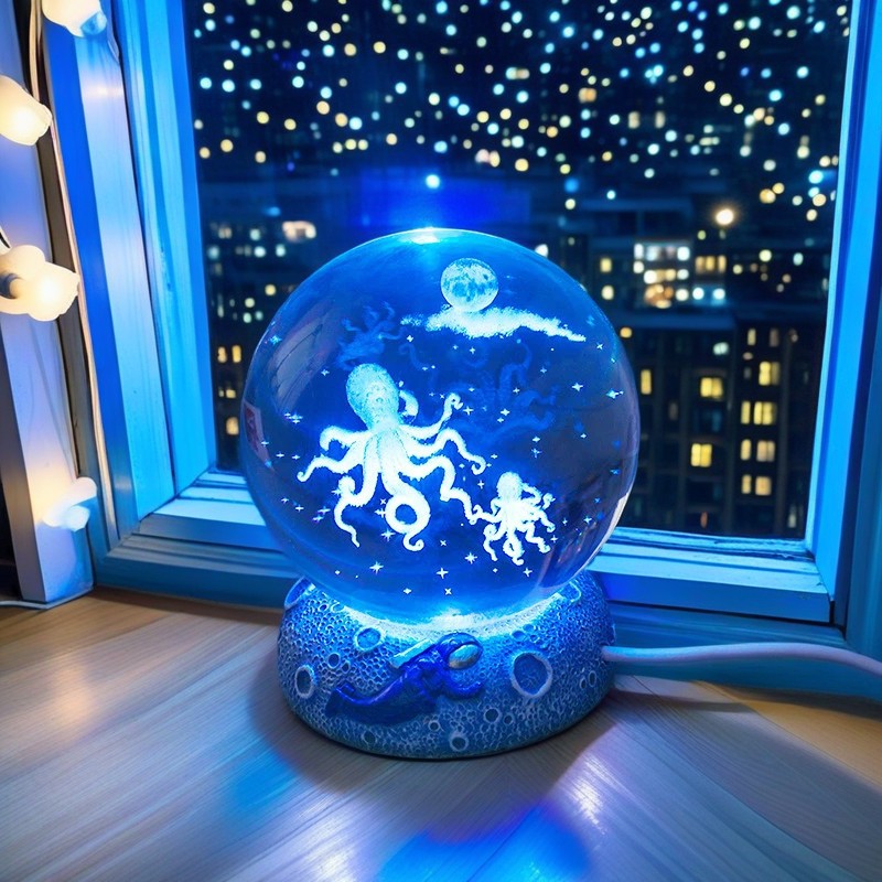 跨境海洋创意3d水晶球发光小夜灯桌面装饰摆件礼品礼物生日教师节