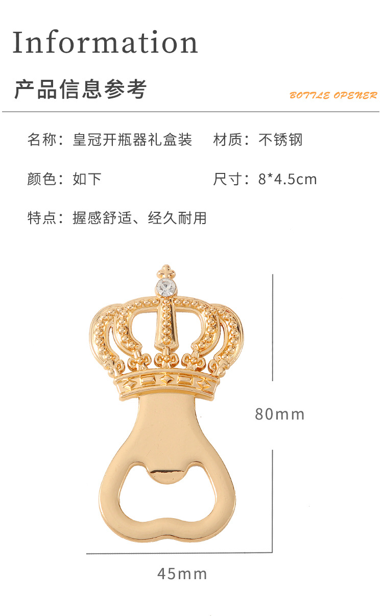 跨境创意皇冠开瓶器欧美婚庆派对小礼品锌合金啤酒开瓶器瓶起子
