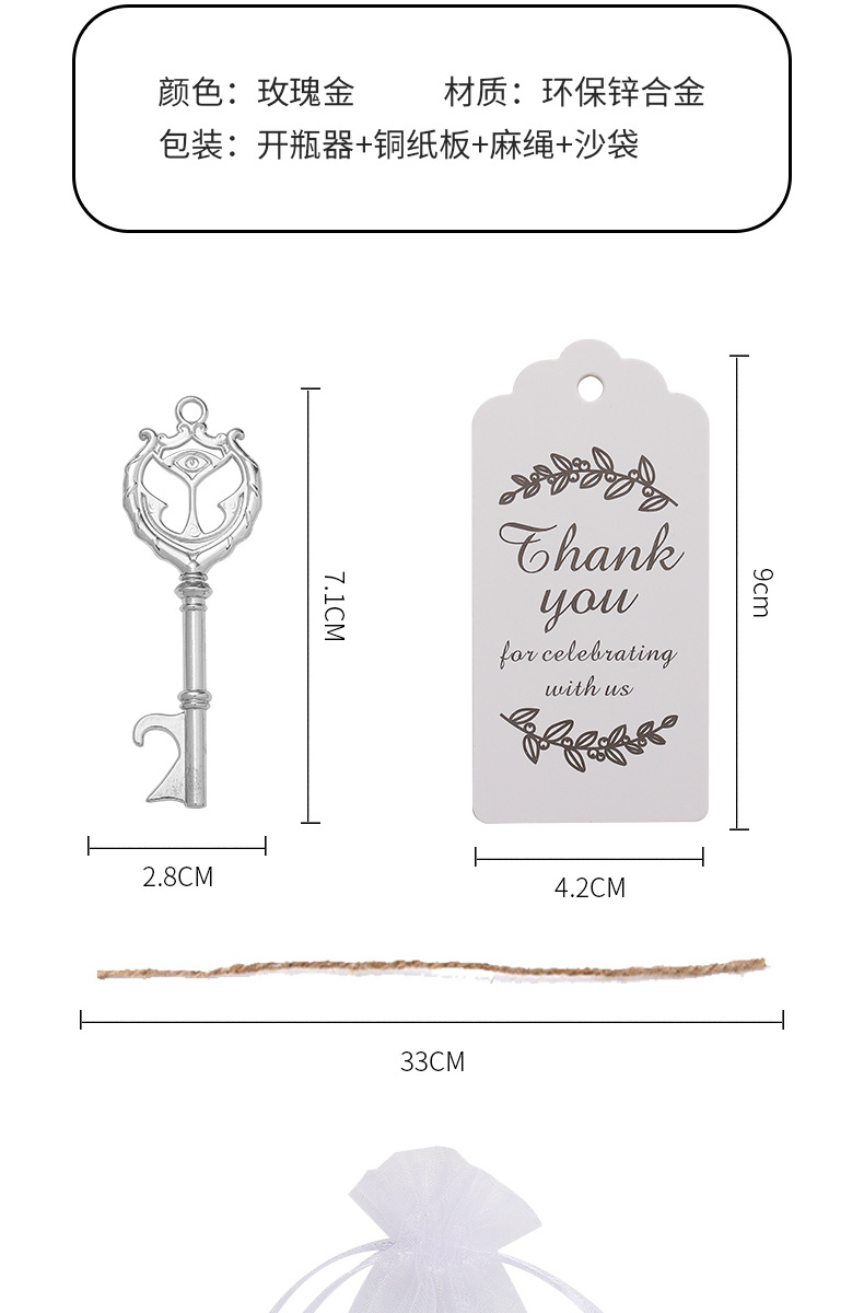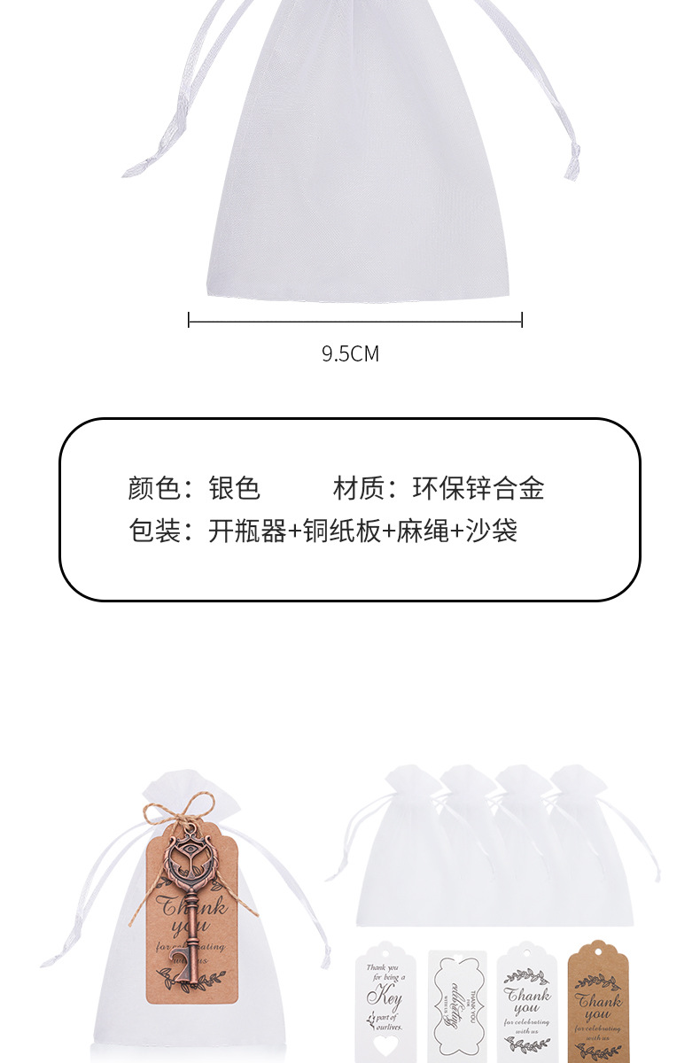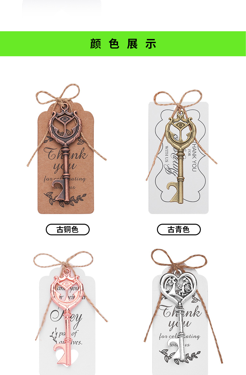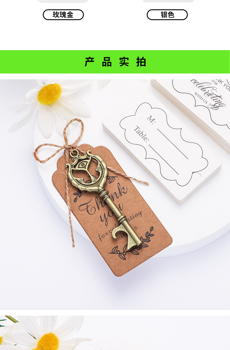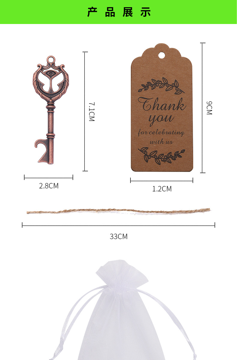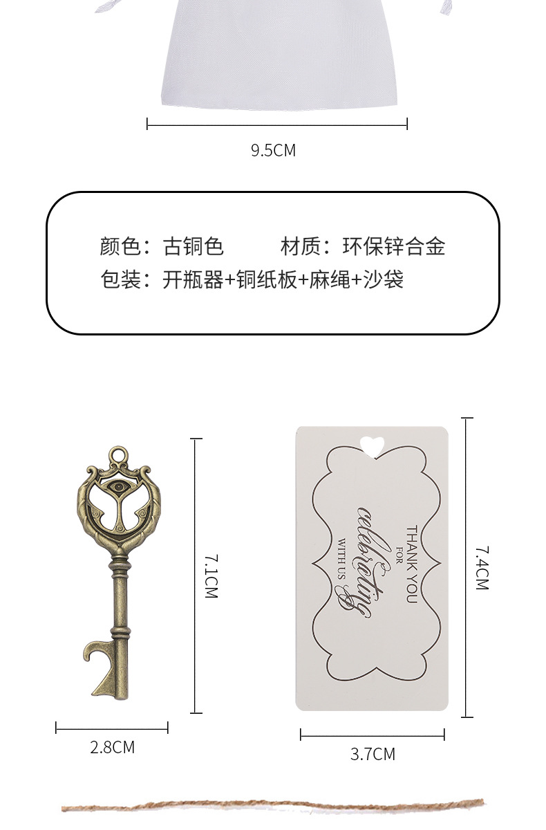 品名:婚庆创意回礼礼品复古钥匙开瓶器配麻绳卡片