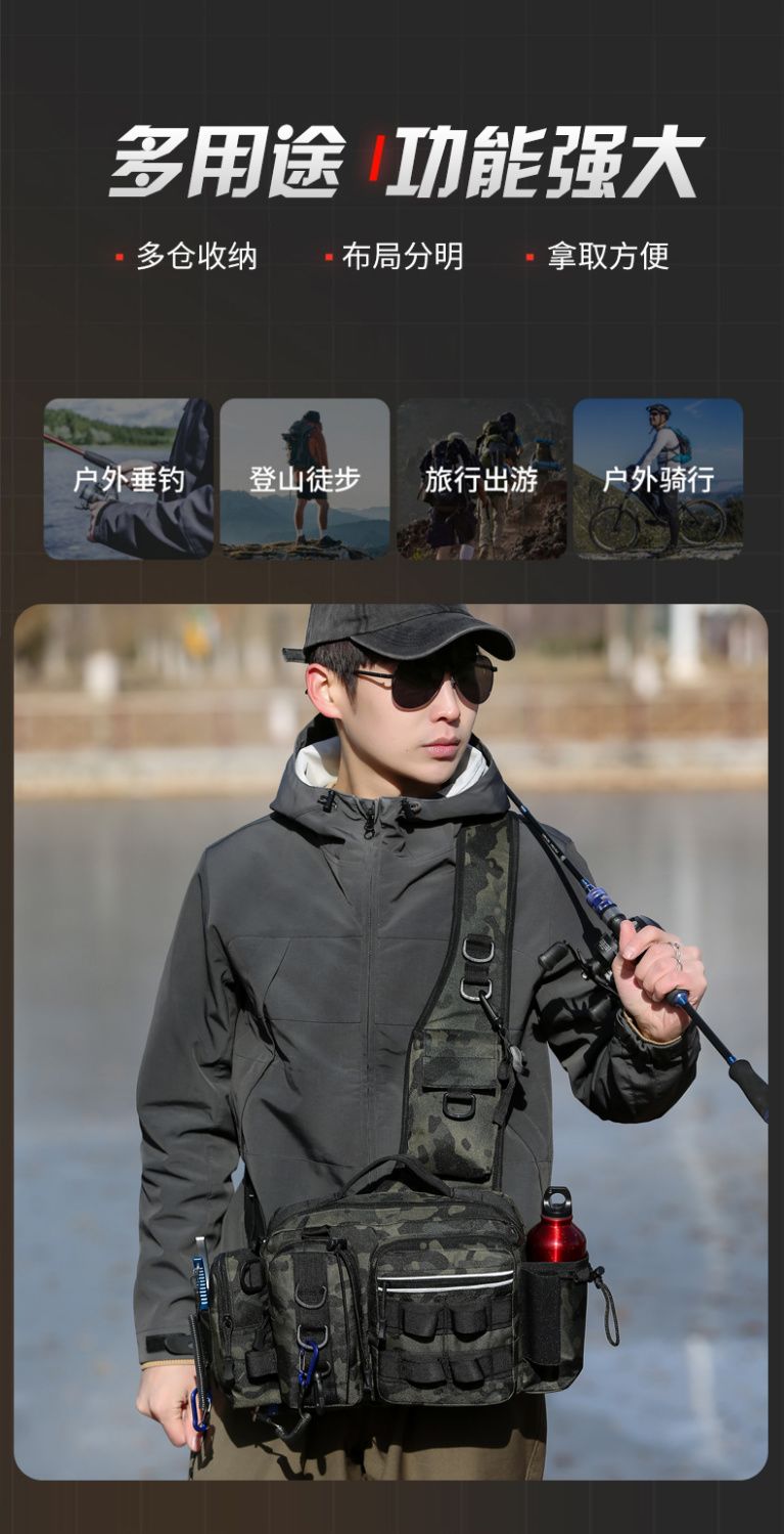 旅行大师多功能路亚胸包大腰包战术斜挎钓鱼垂钓包插杆包户外背包
