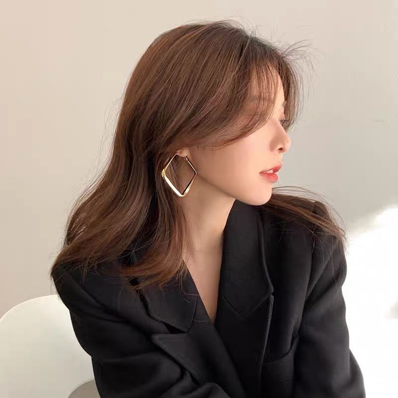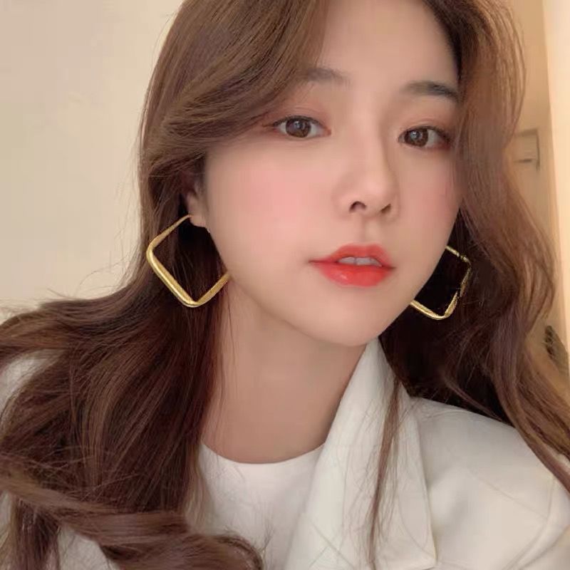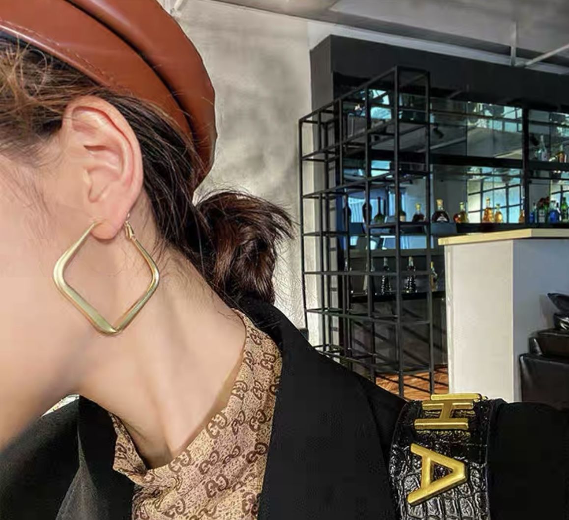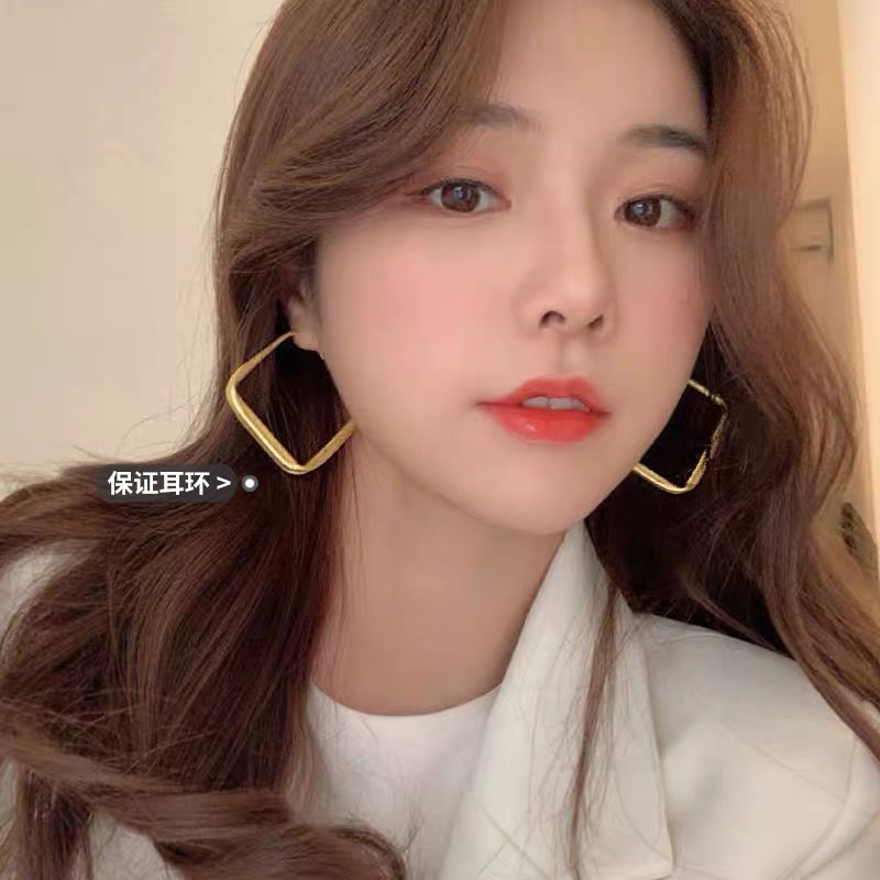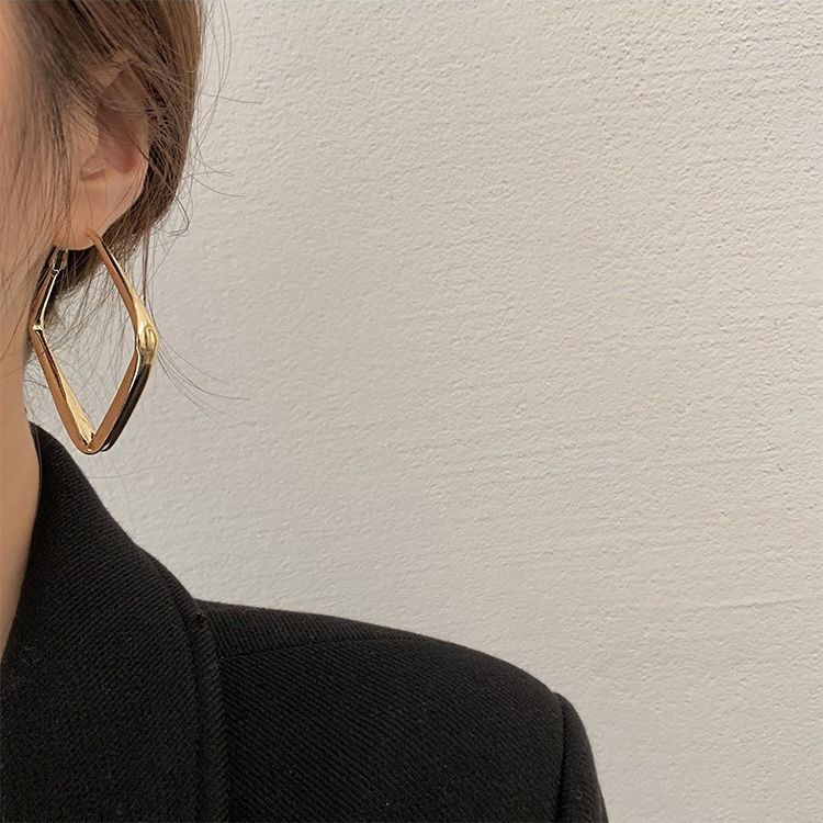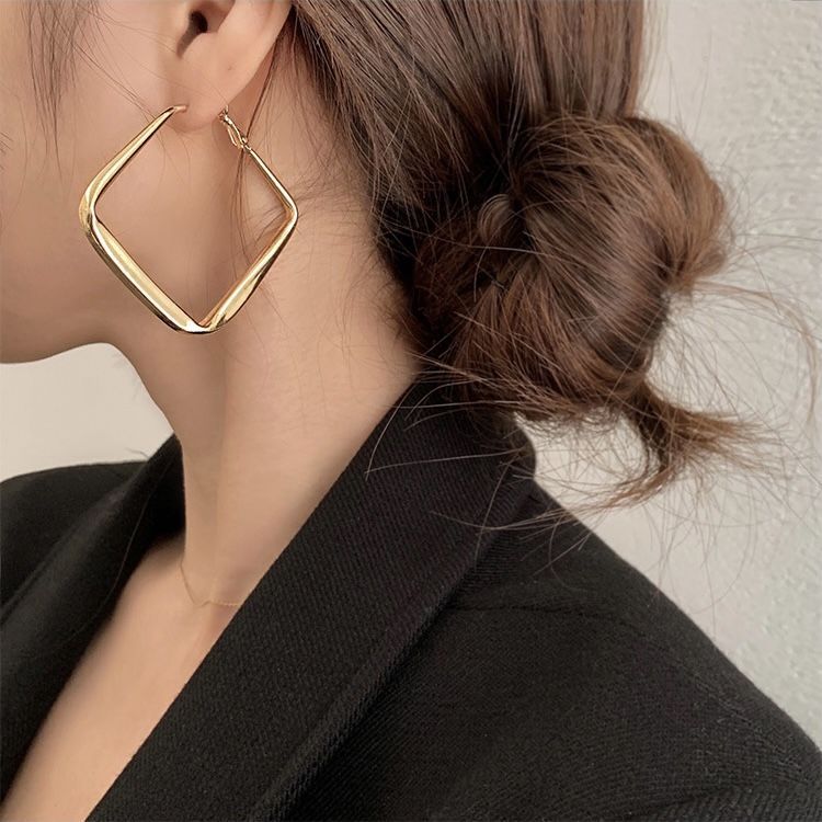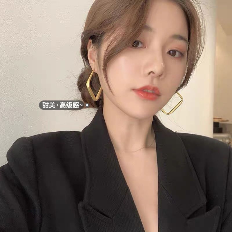 时尚金色菱形耳环气质高级感个性百搭耳饰女网红小众设计大耳圈