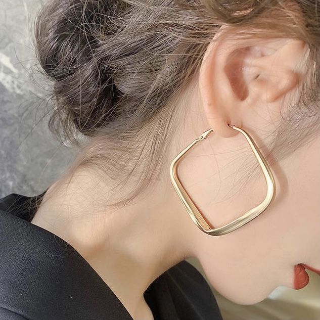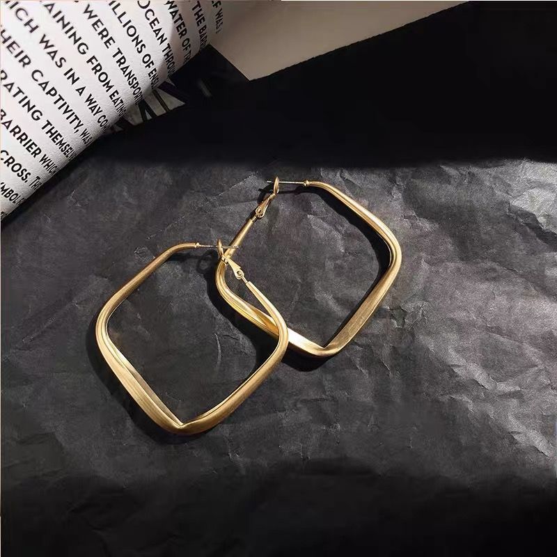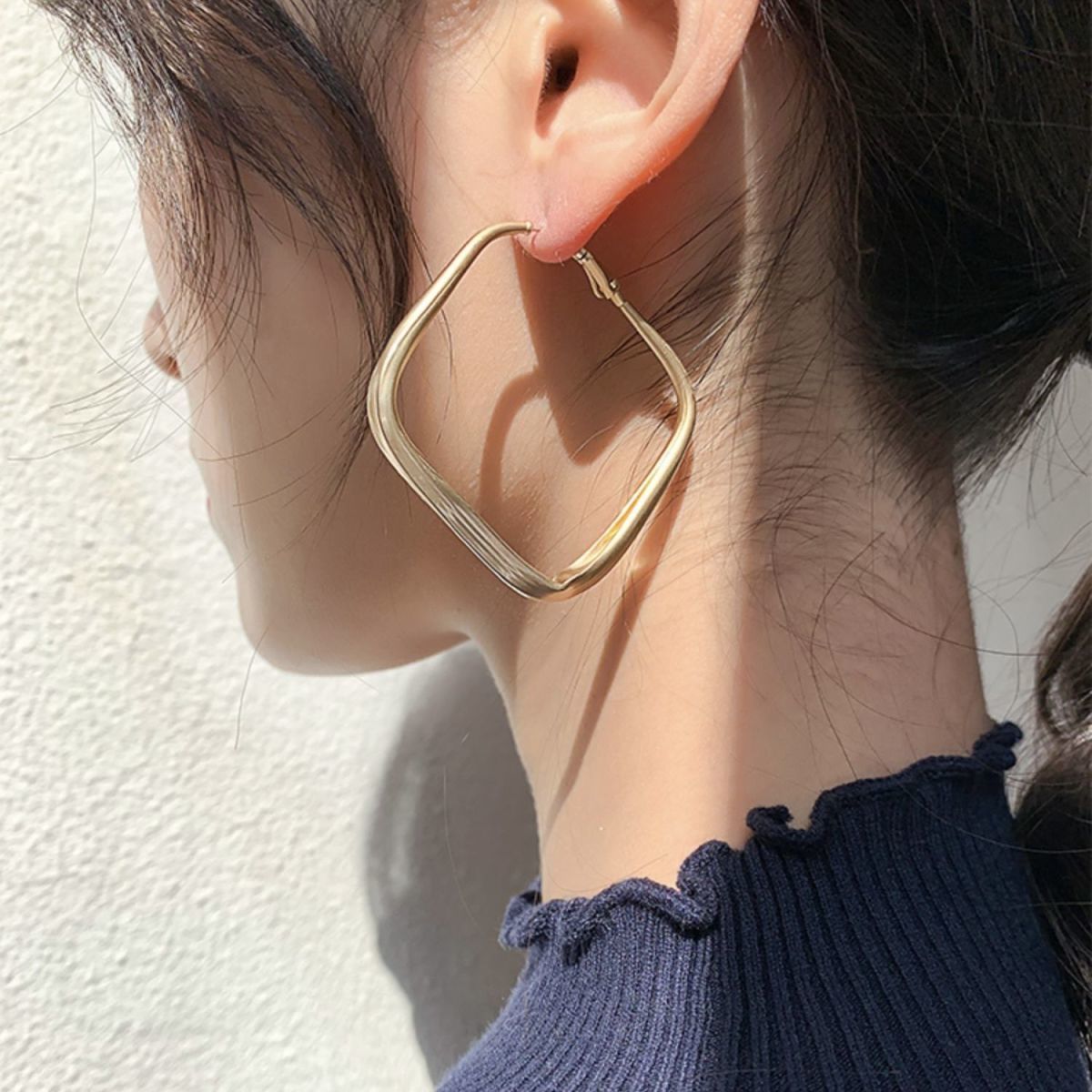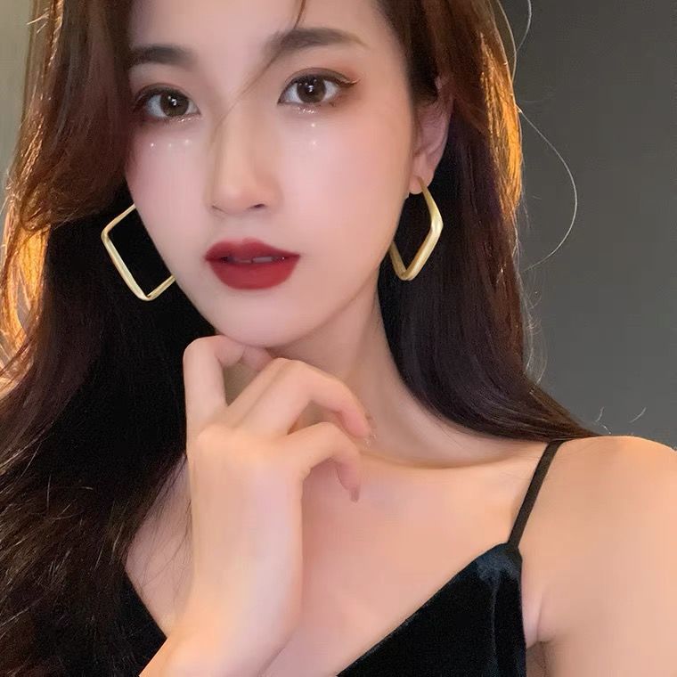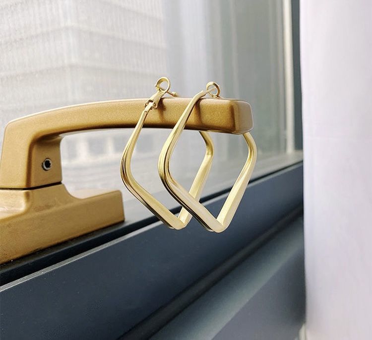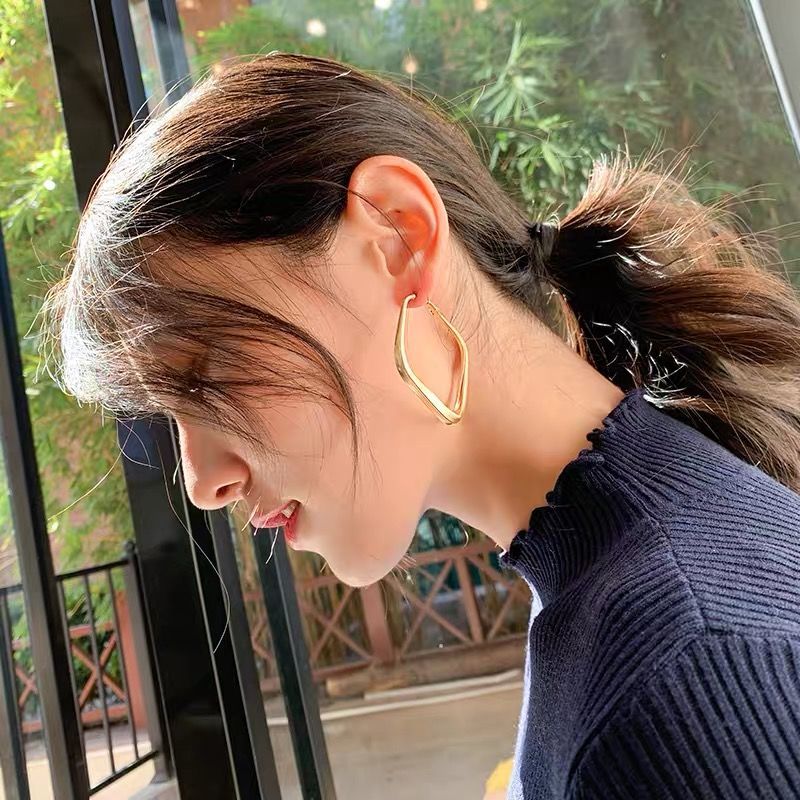 时尚金色菱形耳环气质高级感个性百搭耳饰女网红小众设计大耳圈