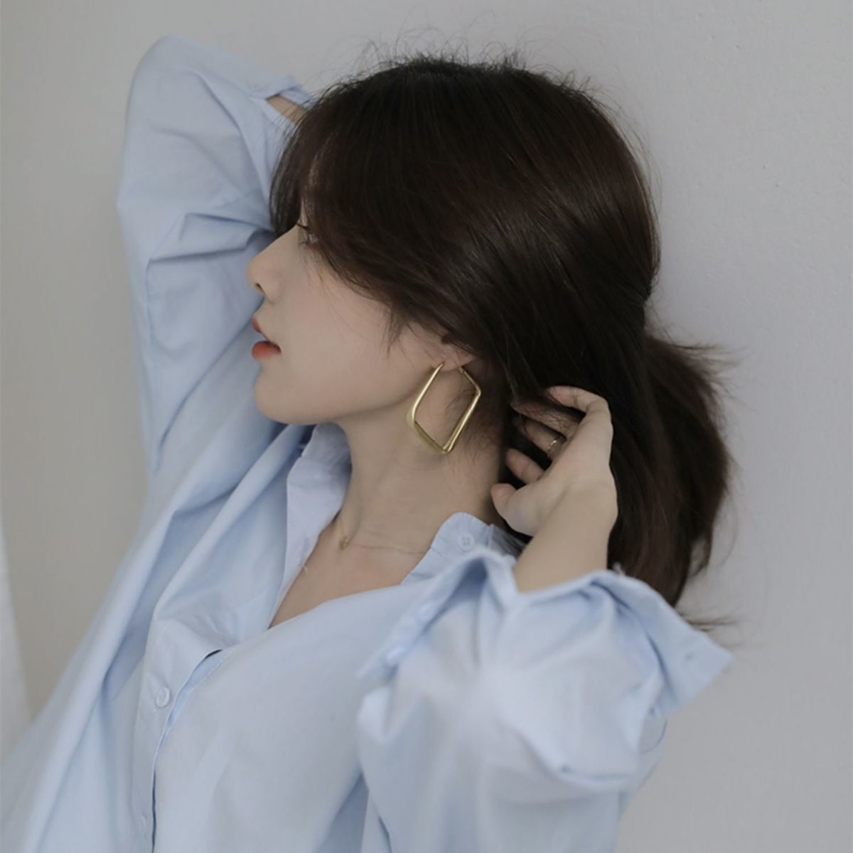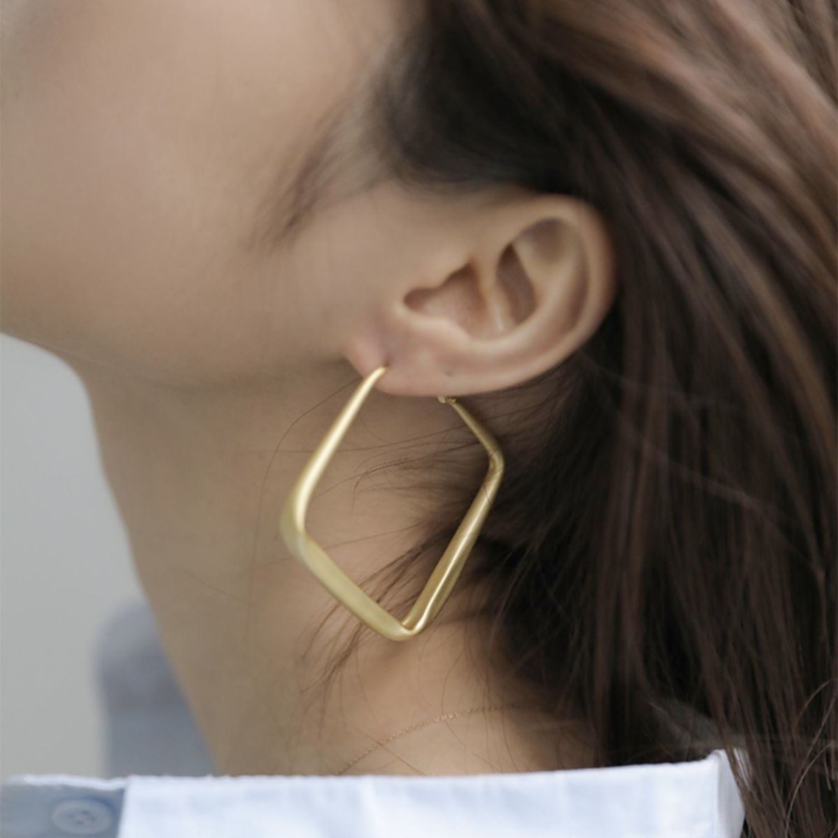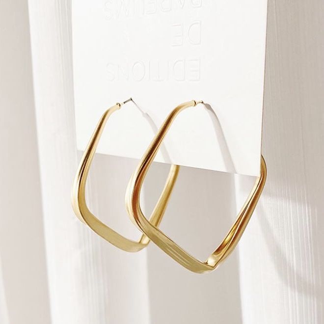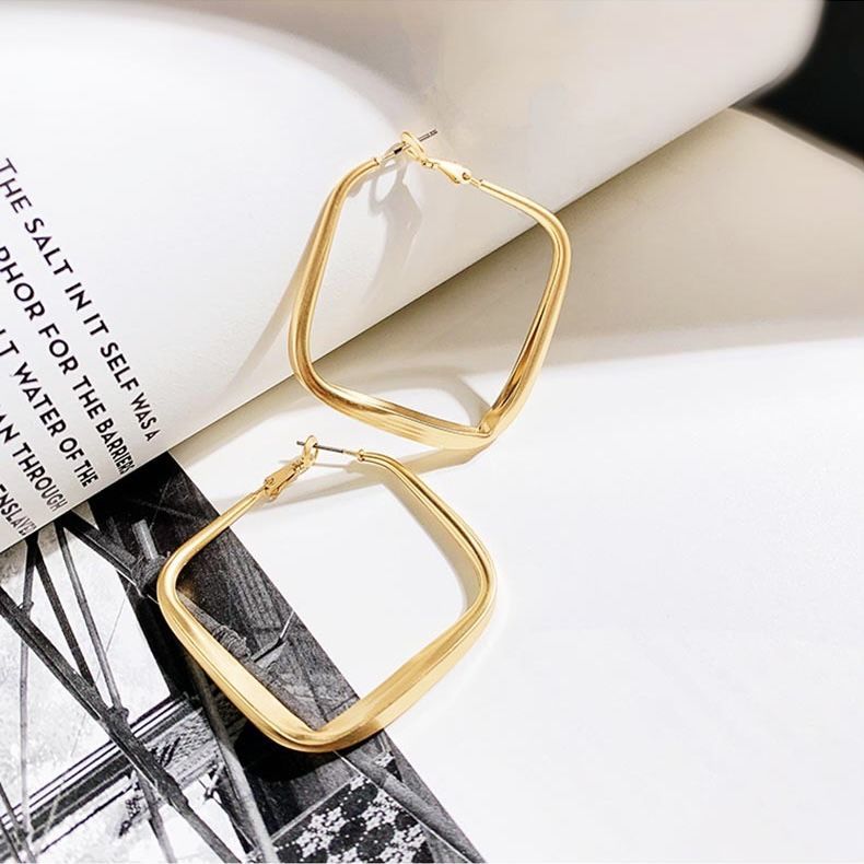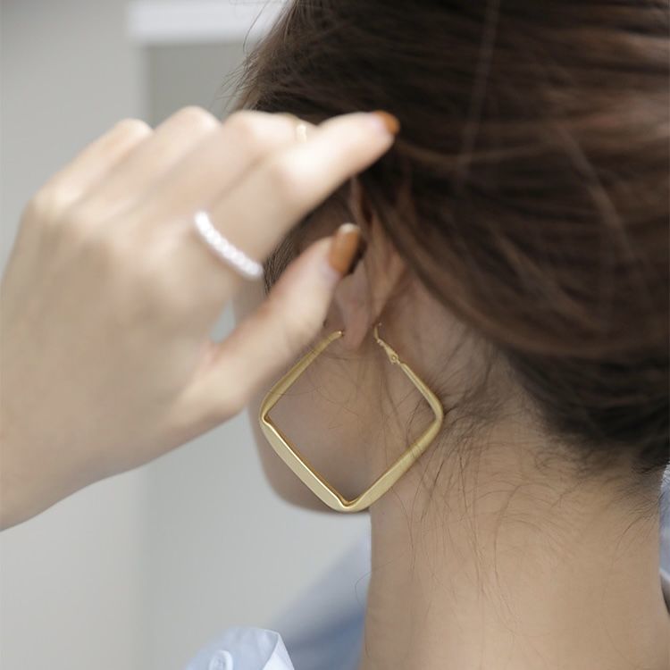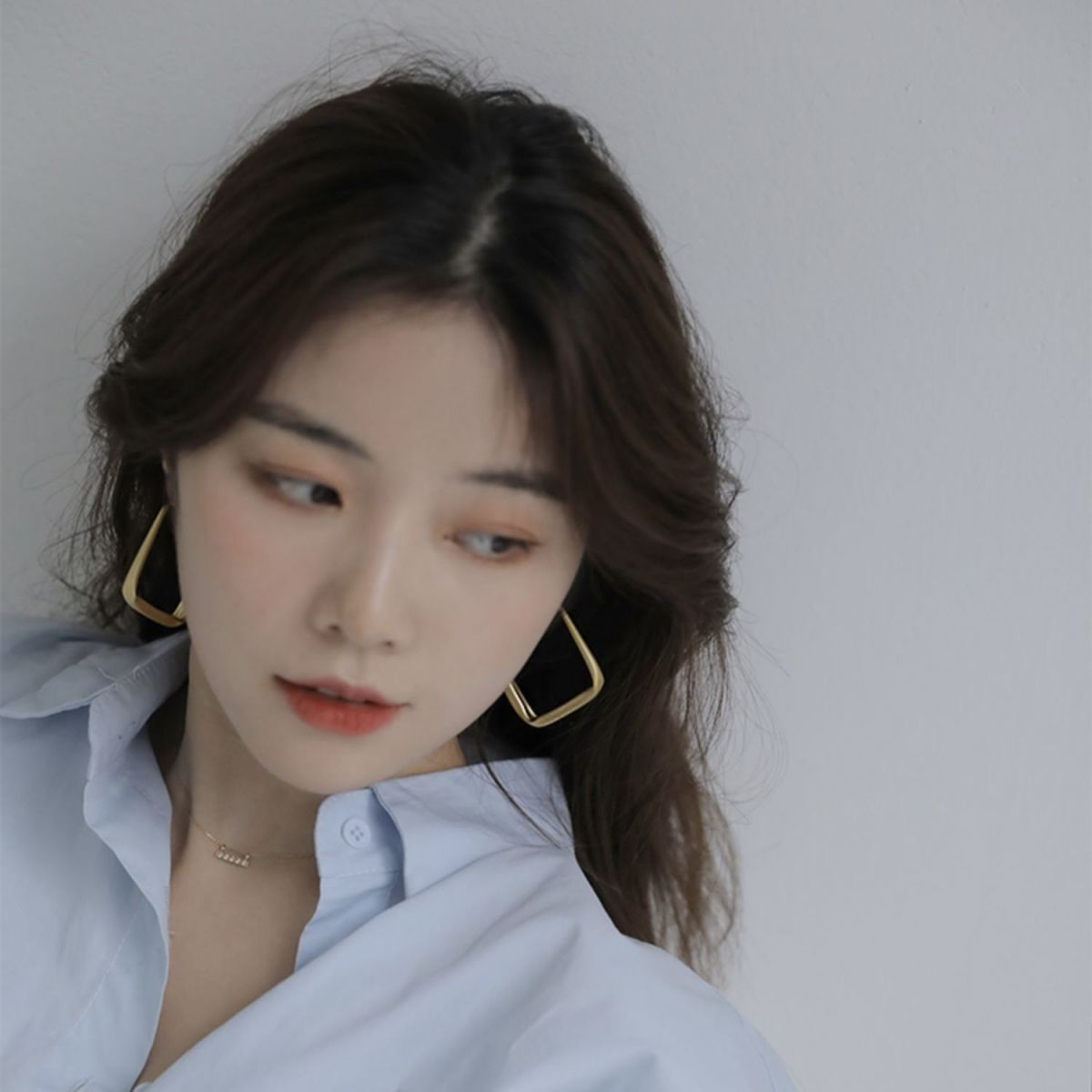 时尚金色菱形耳环气质高级感个性百搭耳饰女网红小众设计大耳圈