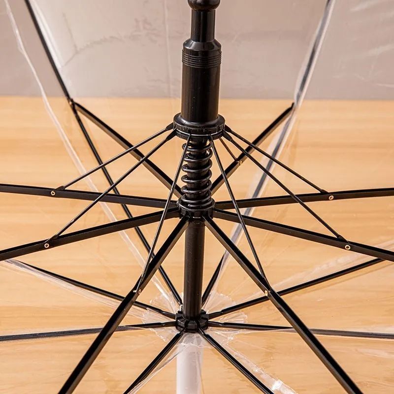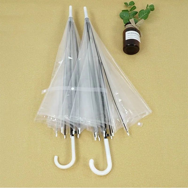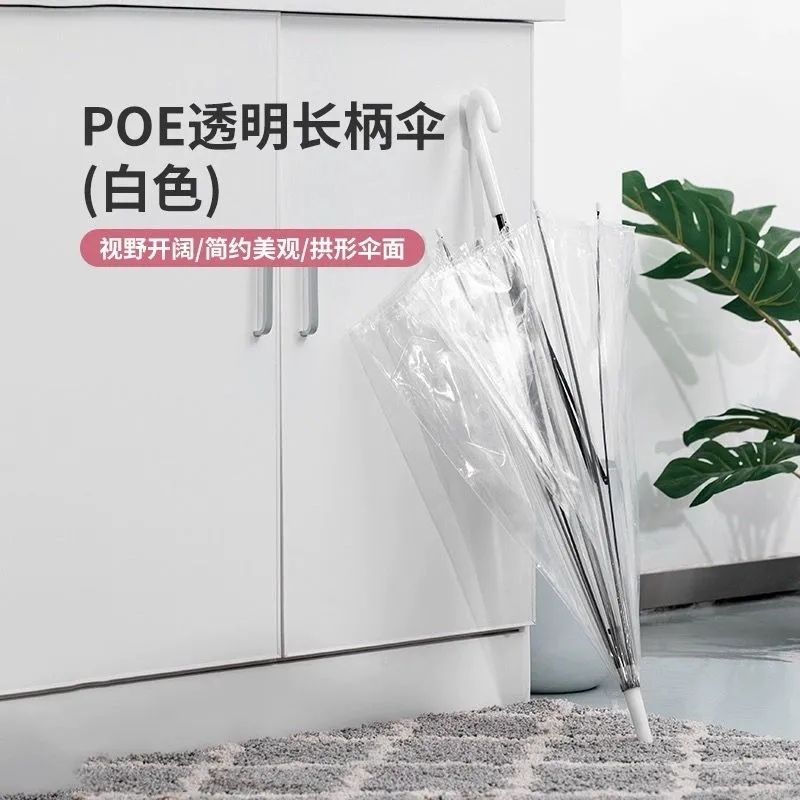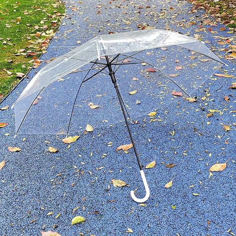 透明雨伞学生拍照简约绘画半自动雨伞长柄儿童清新一次性透明伞