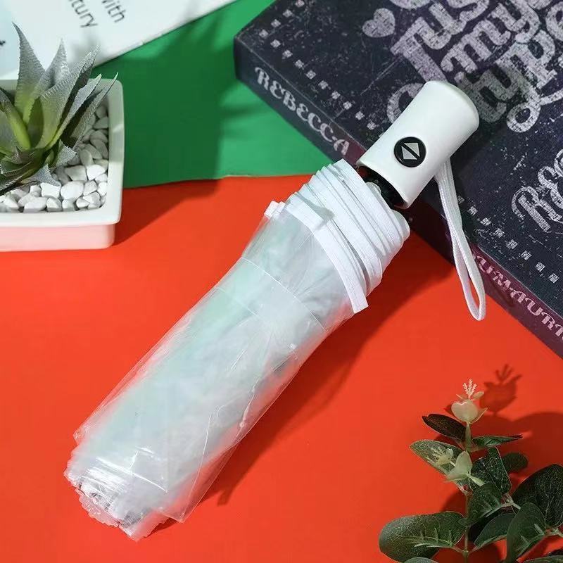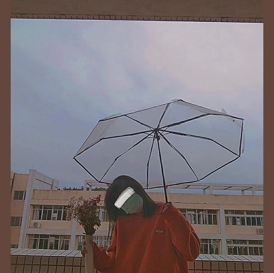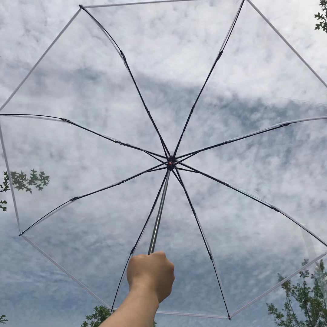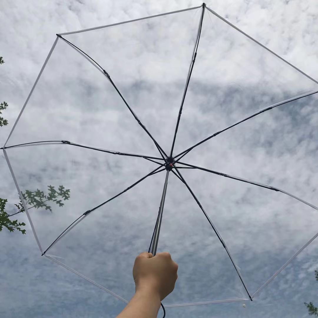 韩系透明雨伞折叠伞全自动ins系列男女款三折伞小清新加厚加固