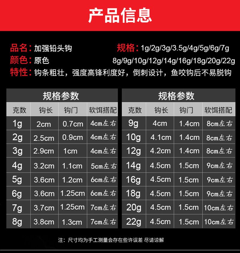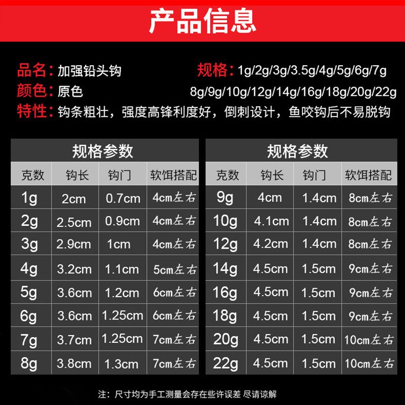 【50个装】加强铅头钩软虫钩鲈鱼桂鱼翘嘴路亚软虫专用路亚软饵钩