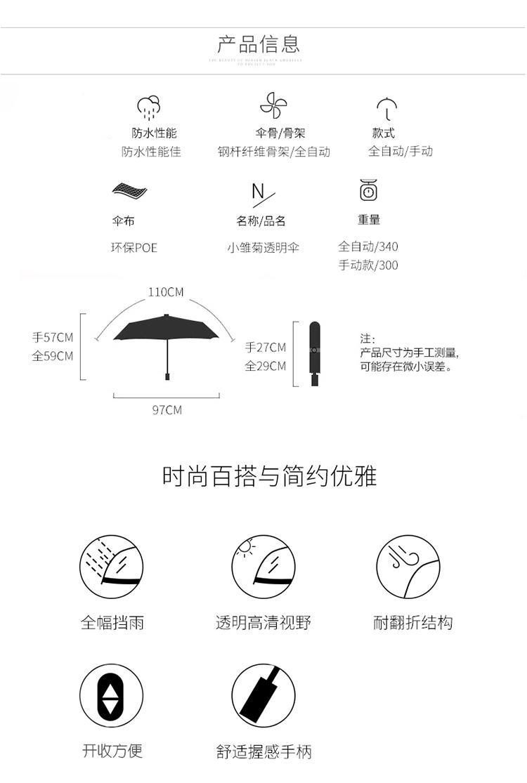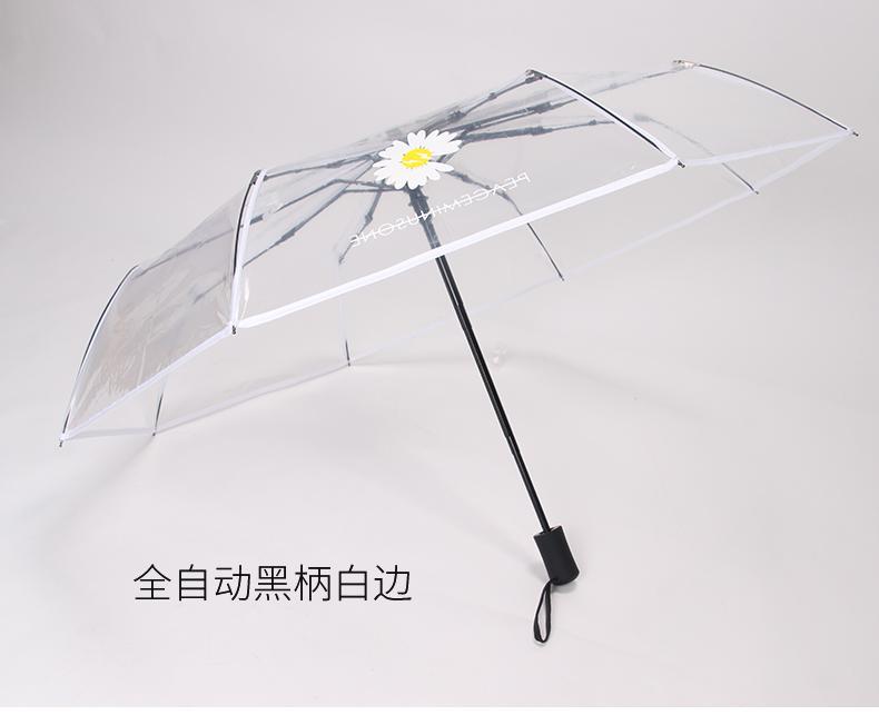 | fully automatic little daisy transparent umbrella black handle(全自动小雏菊透明白伞黑柄) | USD $5.16 | 99999 piece available |