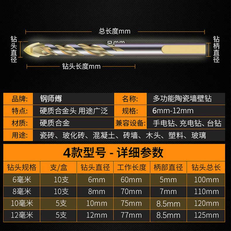 瓷砖转头玻璃钻混凝土水泥墙壁开孔器陶瓷三角钻头多功能玻璃打孔