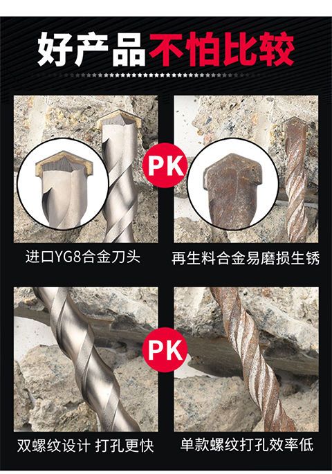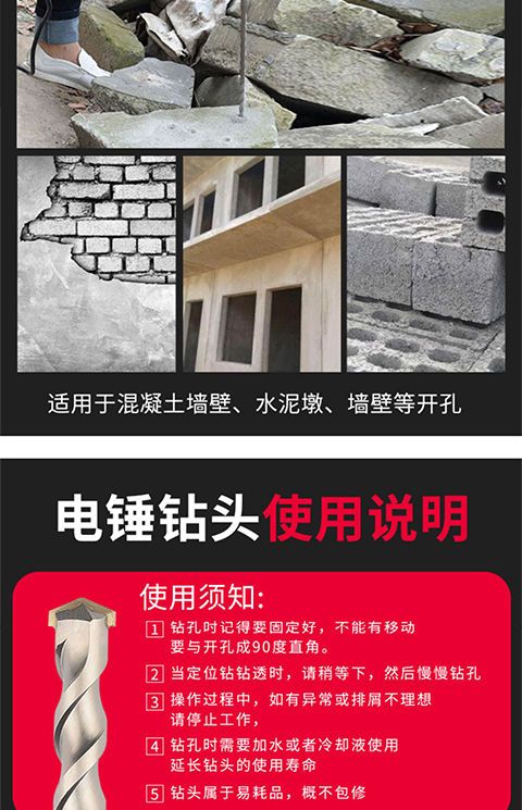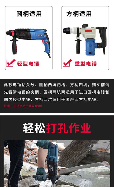 电锤冲击钻头方柄圆柄四坑加长混凝土石材水泥红砖墙打孔电锤转头