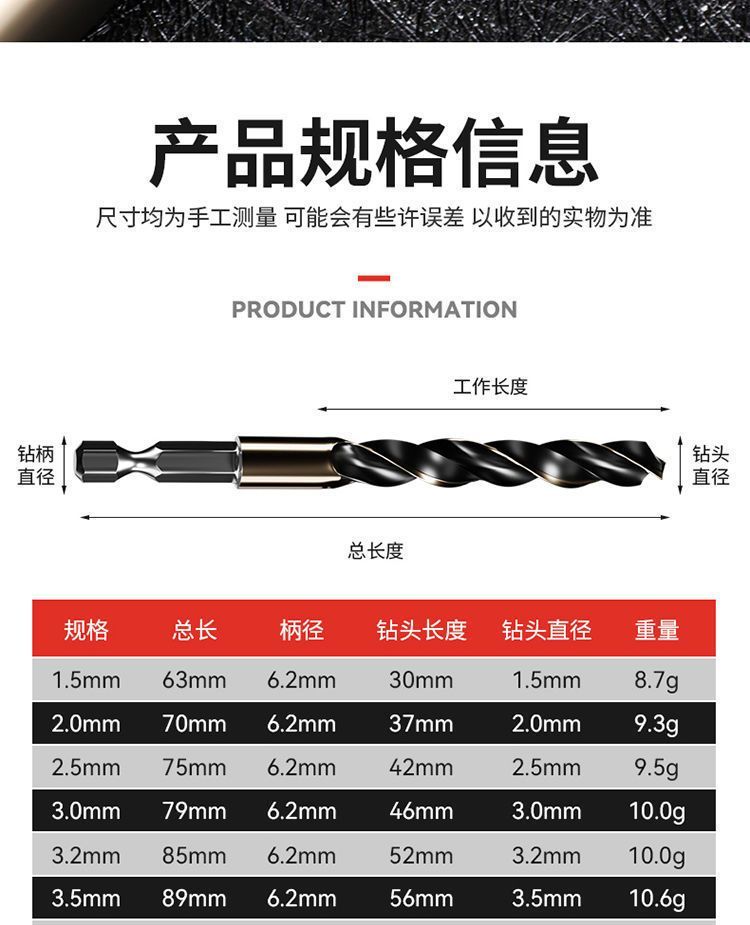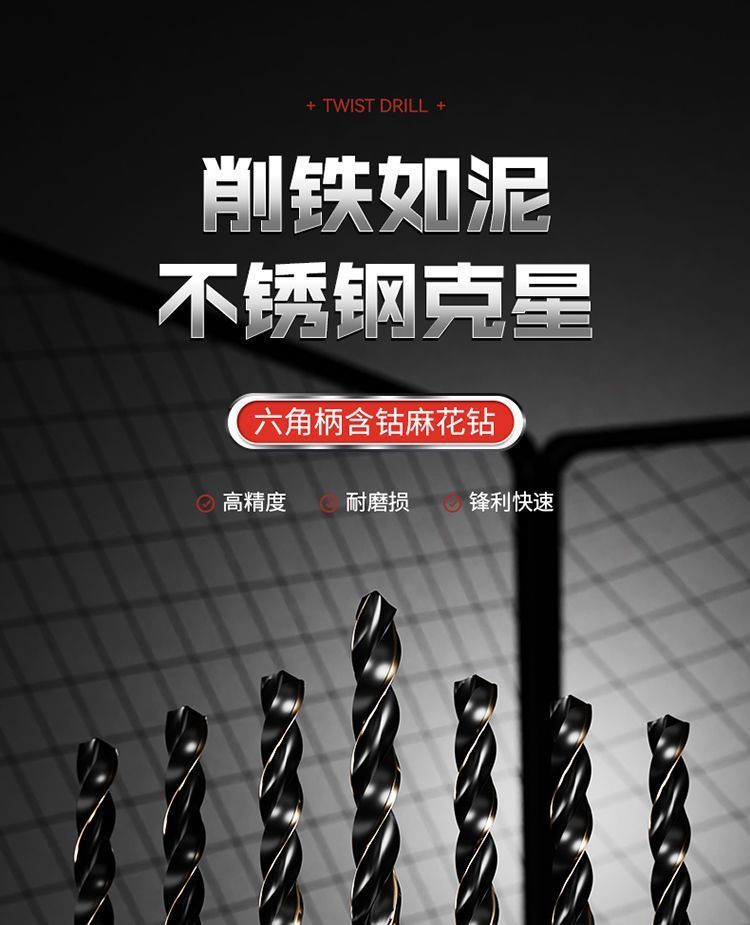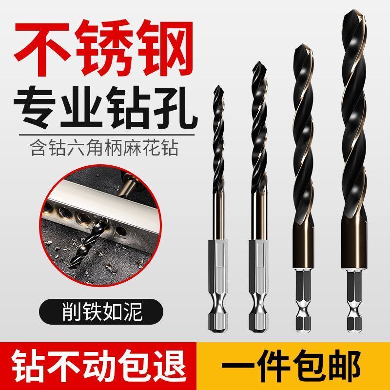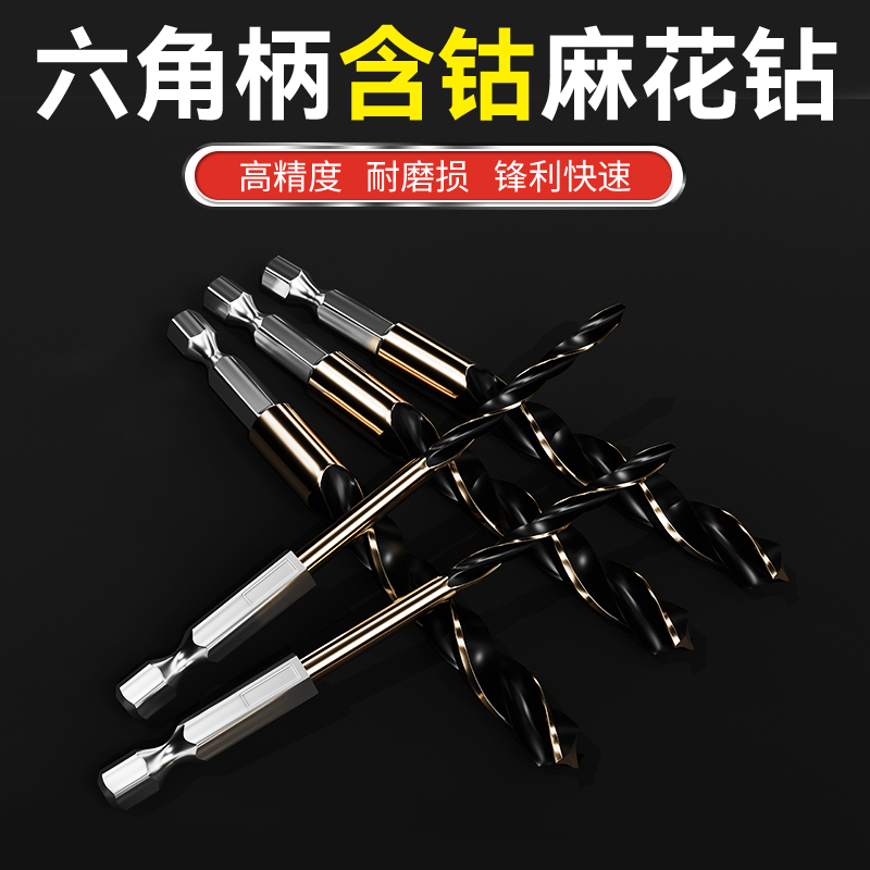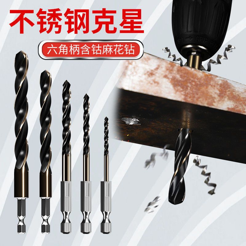六角柄麻花钻头含钴套装六角钻头高速钢全磨制不锈钢金属器开孔器