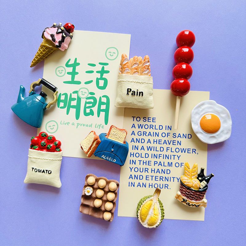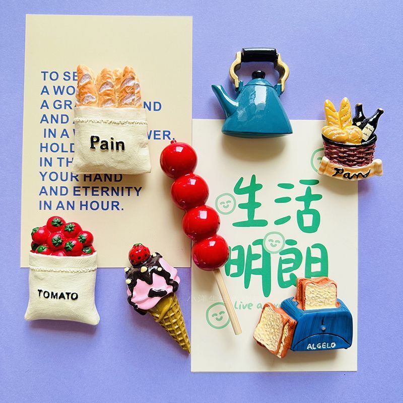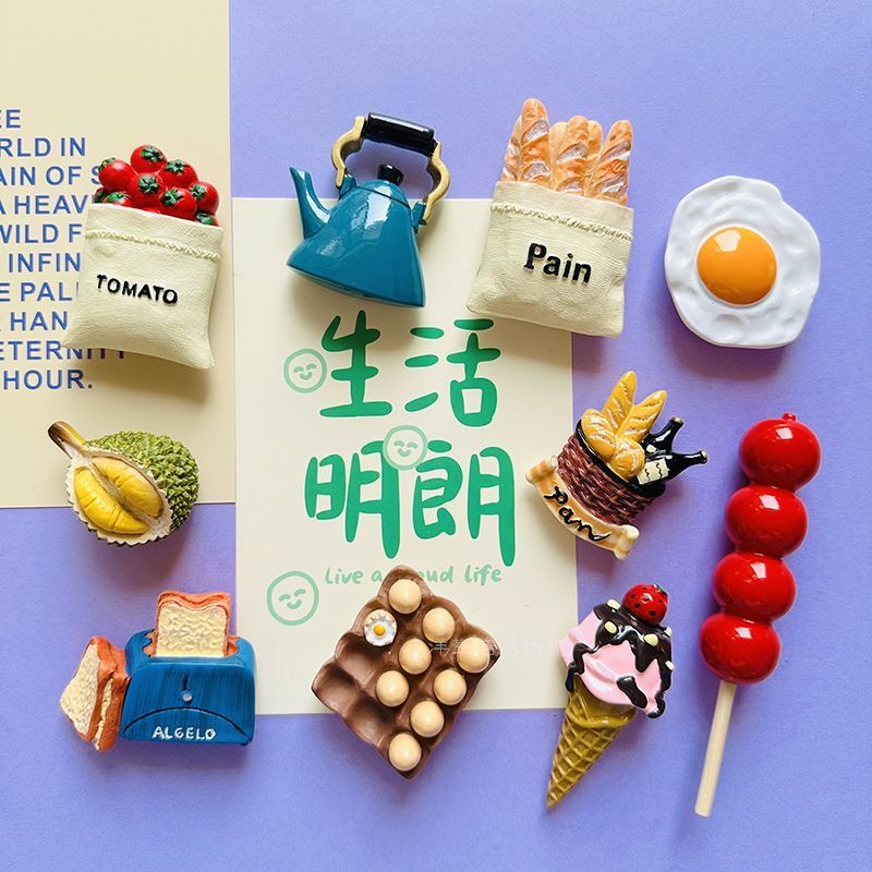 冰箱贴磁铁可爱ins食物磁性贴3D立体鸡蛋面包食玩装饰创意磁力贴