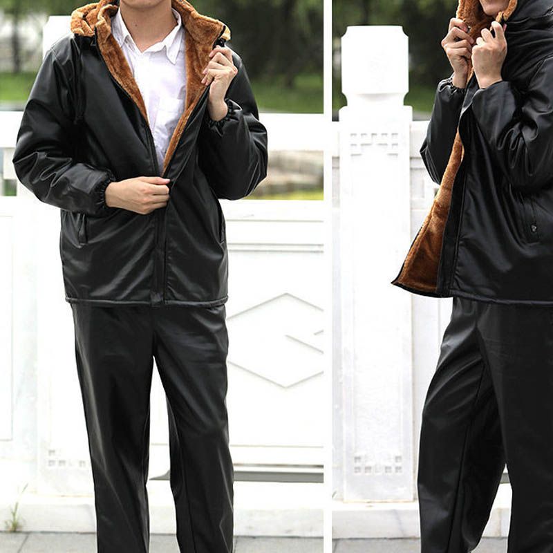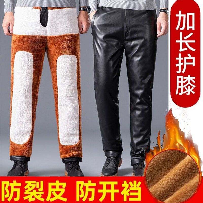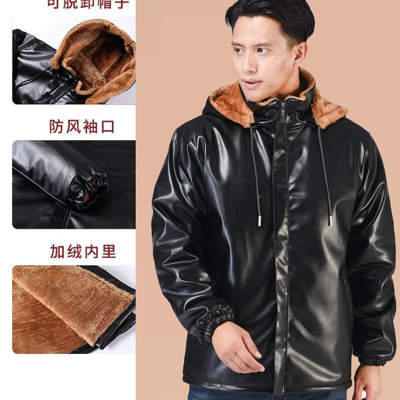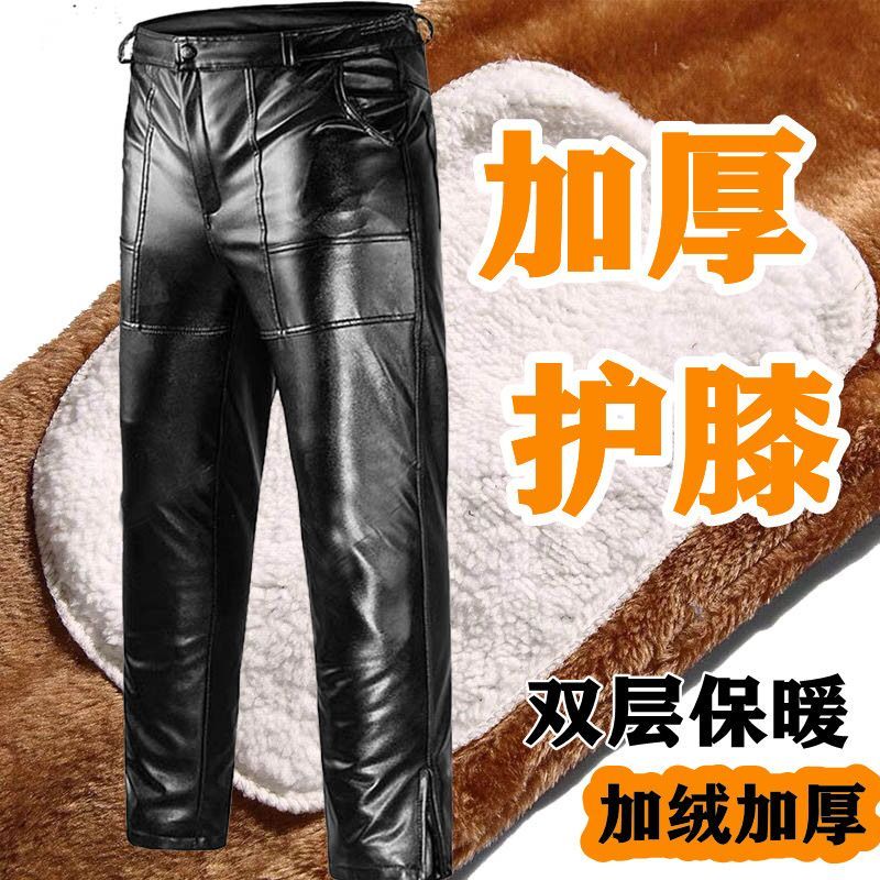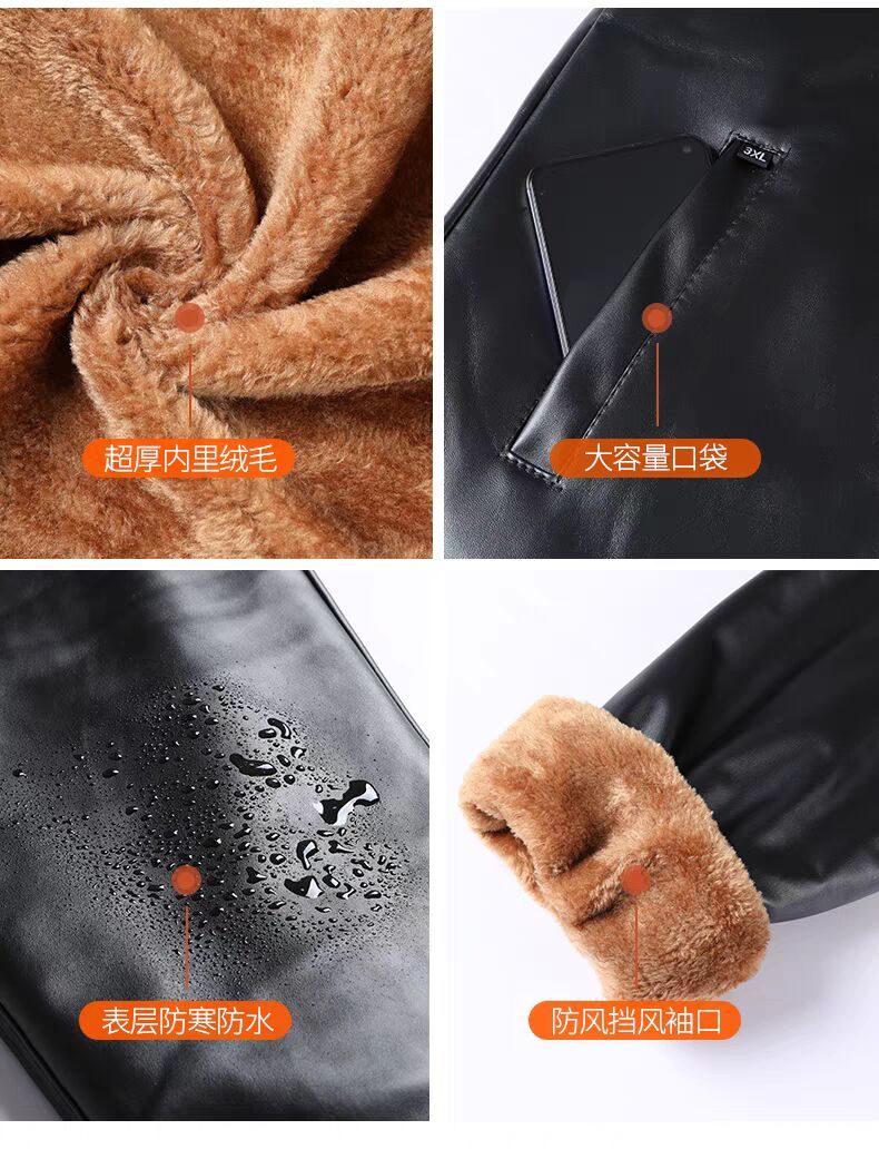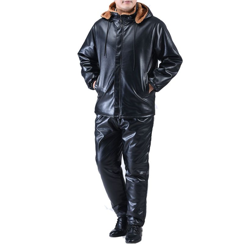 男士皮衣皮裤套装加绒加厚爸爸装防风防油外卖骑手代驾抗寒皮棉衣