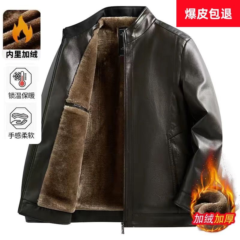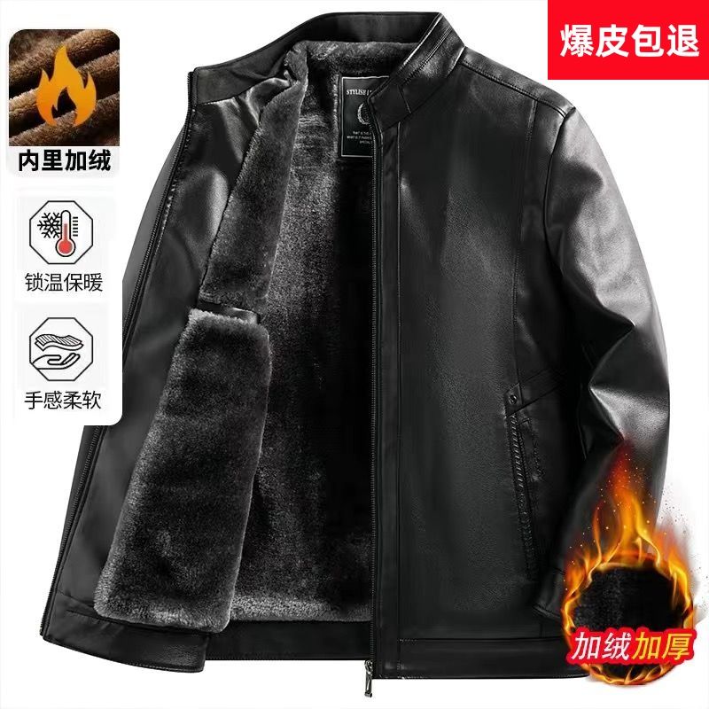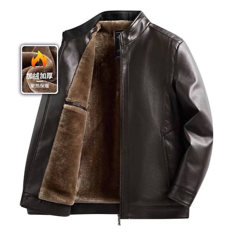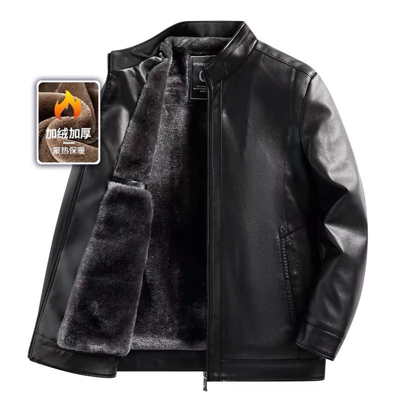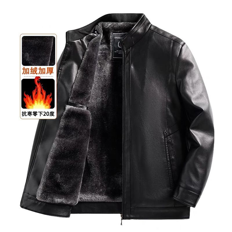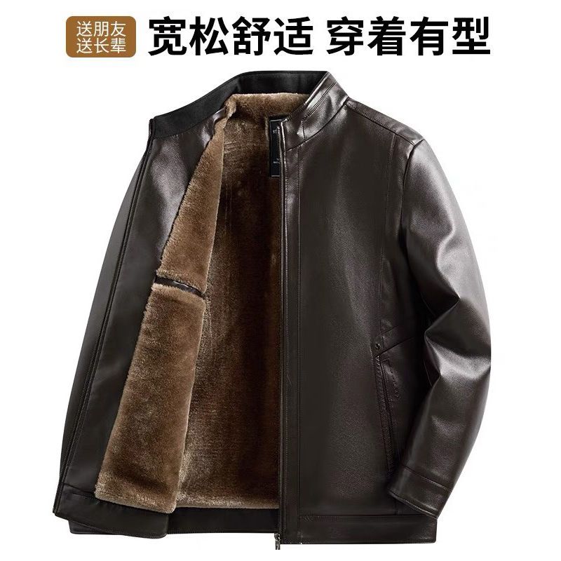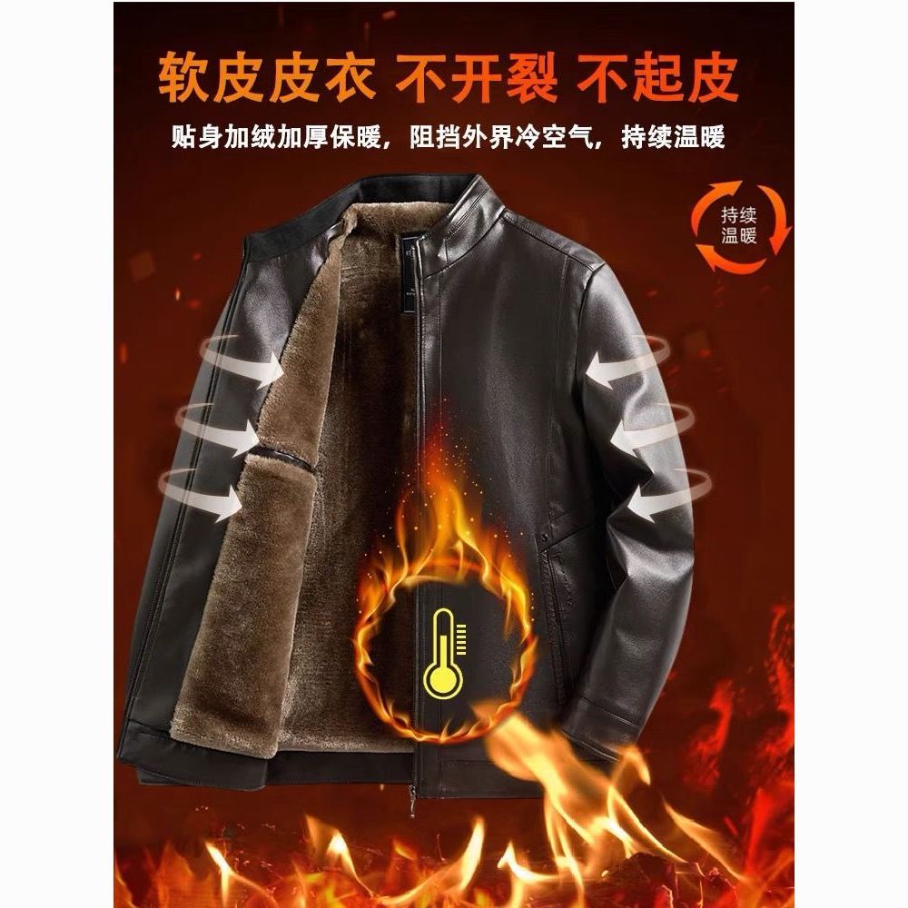 新款男士皮衣冬季加绒休闲加厚爸爸外套立领中老年宽松保暖上衣